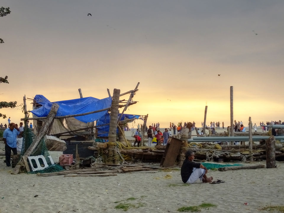 Es warteten vereinzelte Leute doch ich ging weiter zum Strand, schminkte mir die Bootsfahrt ab. Die Fischernetze sind immer noch gut für Photos. Heute zum Sonntag waren mehr Leute unterwegs, als sonst.