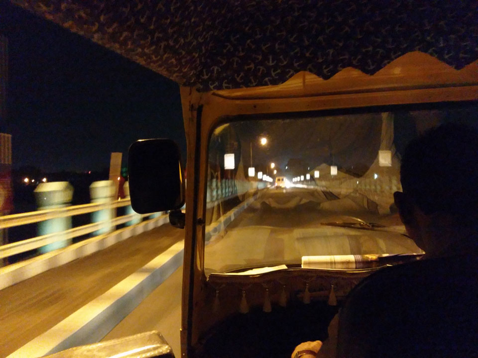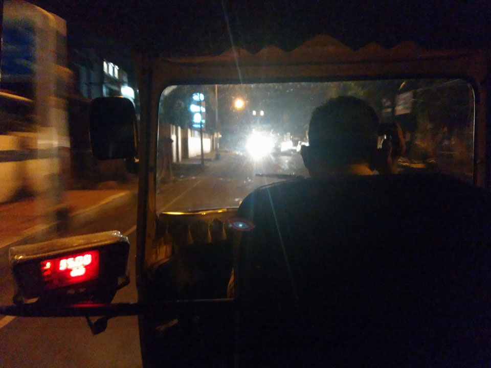 Nach 10 dann auschecken und Taxisuche. Das Hotel konnte mir keins rufen. Die Ola und Uber Apps zeigten ebenfalls keine Fahrzeuge in unmittelbarer Nähe. Ich ging also zu einer Kreuzug und sprach zur Abwechslung mal einen Tuktuk Fahrer an. Er holte seinen Kumpel und als Preis wurde 400 veranschlagt. Nach 22:00 koste alles mehr. Ich wusste von 250 als normalem Preis aber nichts da – so sagte ich schließlich zu. Rucksäcke in’s Vehikel und ab die Post!
