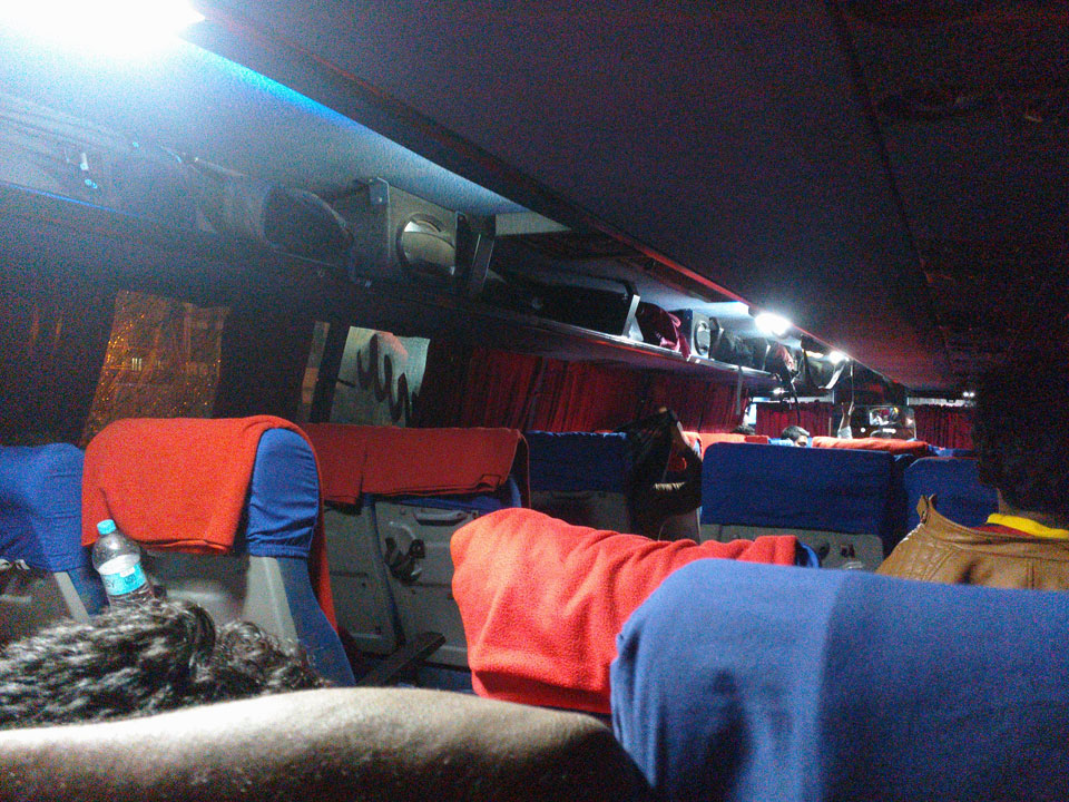 Im Zimmer packte ich langsam und auch mal echt gut, dass schön viel Platz im großen Rucksack war, im kleinen sogar mein Hoddie unter kam. Die Busfirma schickte SMS und eine Weblink, womit man den Bus per GPS verfolgen kann. Augenblicklich gab’s 30′ Verspätung. Keine Eile also.