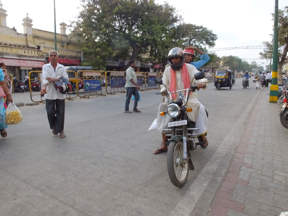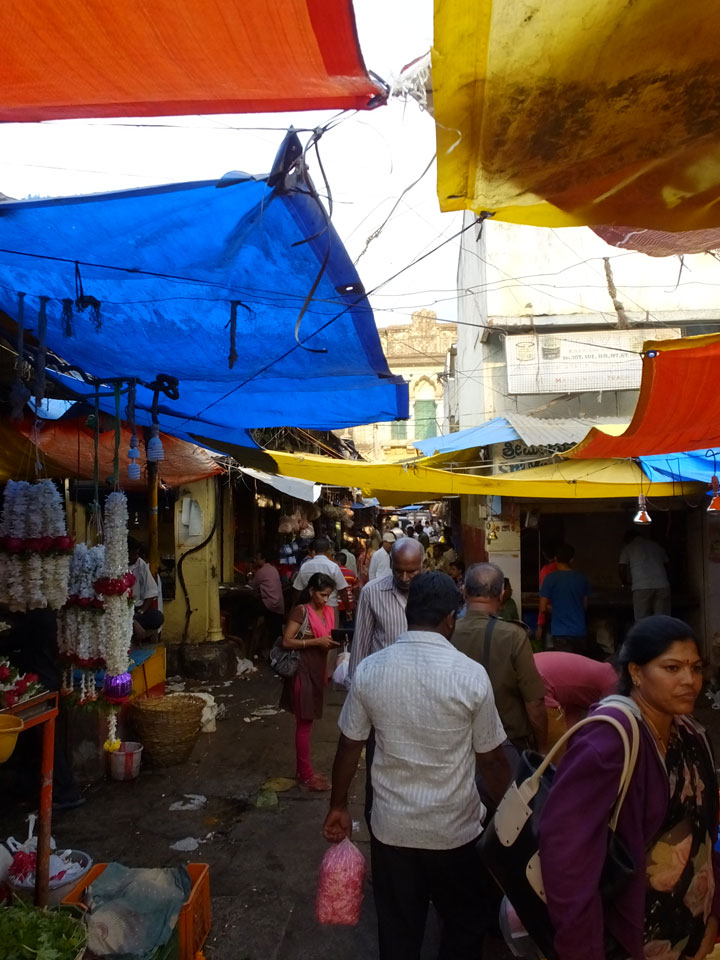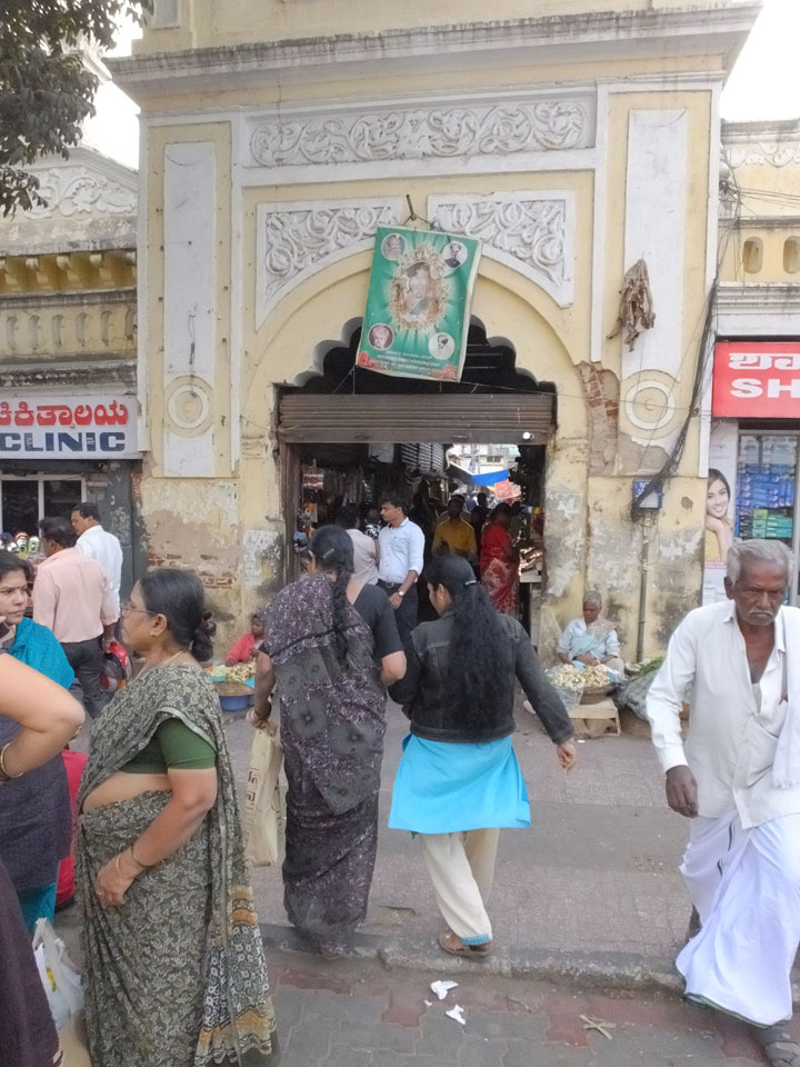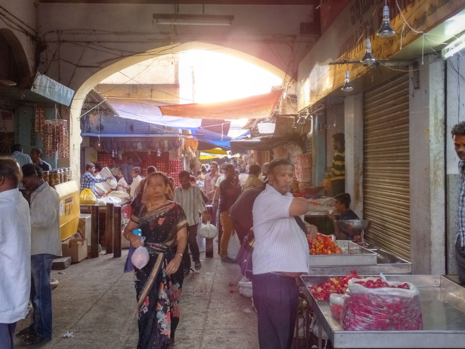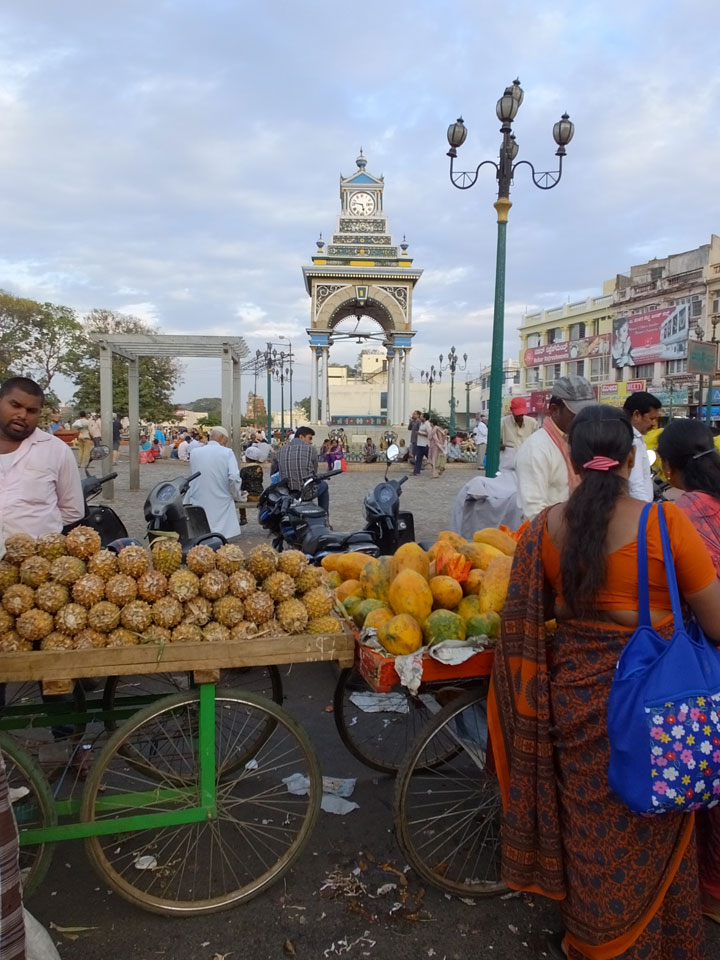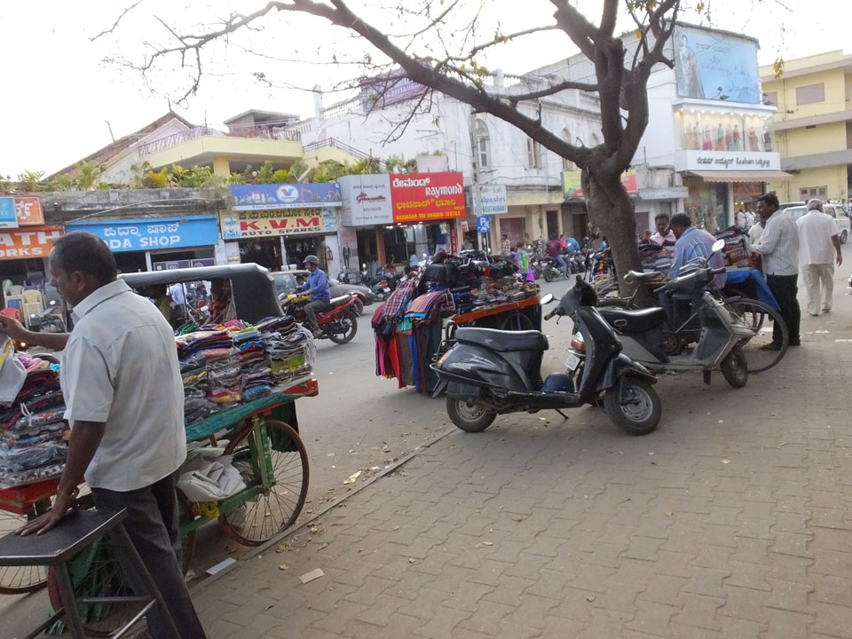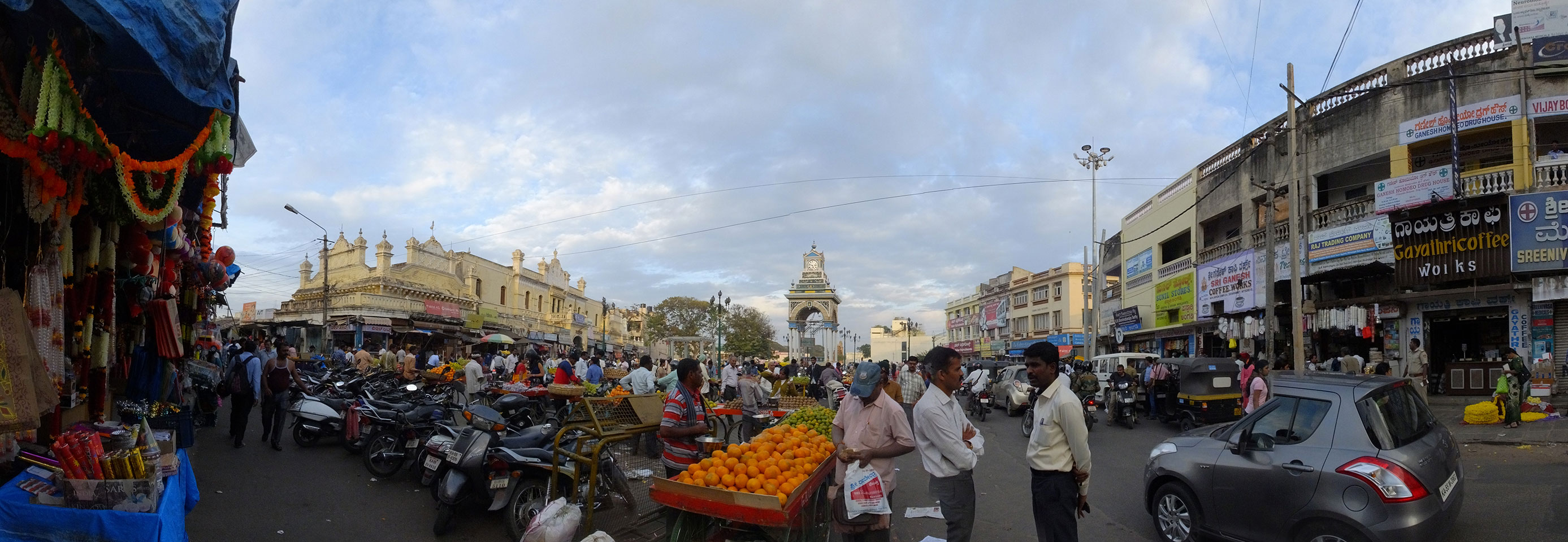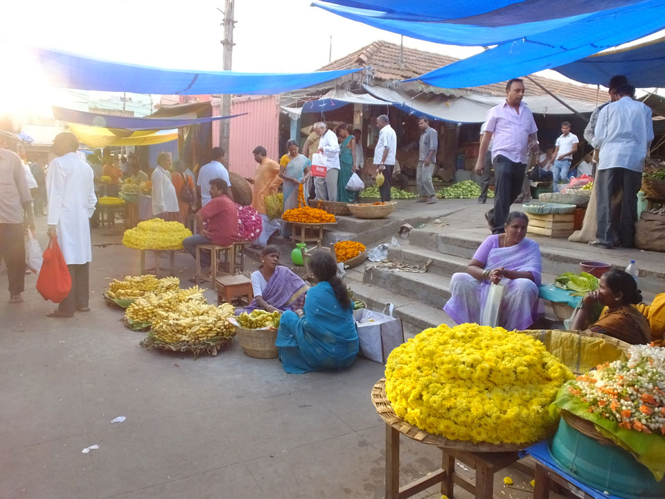 Ich ging nach 17:00 die vielleicht 10 Minuten zum Markt. Der Devaraja Markt war riesig und war etwas anstrengend. Immer wieder kommen Inder auf einen zu, fragen woher man kommt und so weiter. Hand schütteln soll ich auch immer. Mag ich nicht, weil die auch einen extrem laschen Händedruck haben. Irgendwo gibt es wohl einen Kurs, wie man Touristen zum Kauf animiert, denn alles läuft ständig gleich ab. Danke, kein Interesse an Räucherstäbchen. Das wird sogar auf Deutsch angeboten. Weiterhin wurden heute viele Blumen verkauft. Morgen ist Tag der Republik.