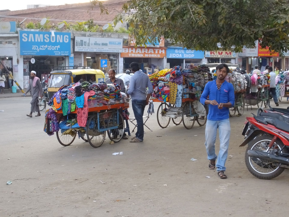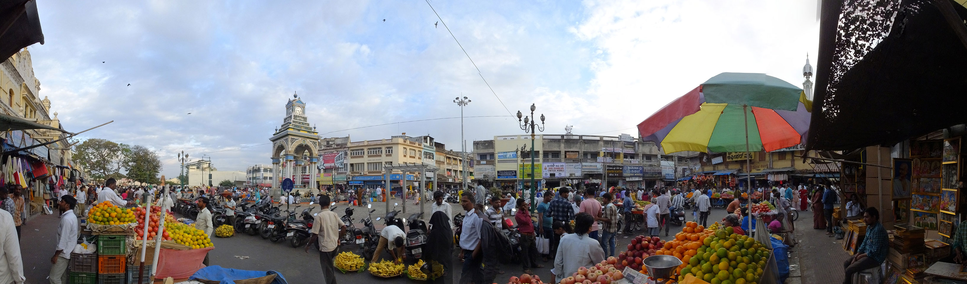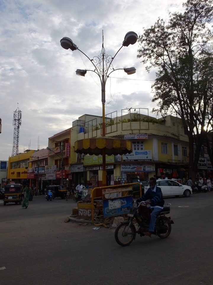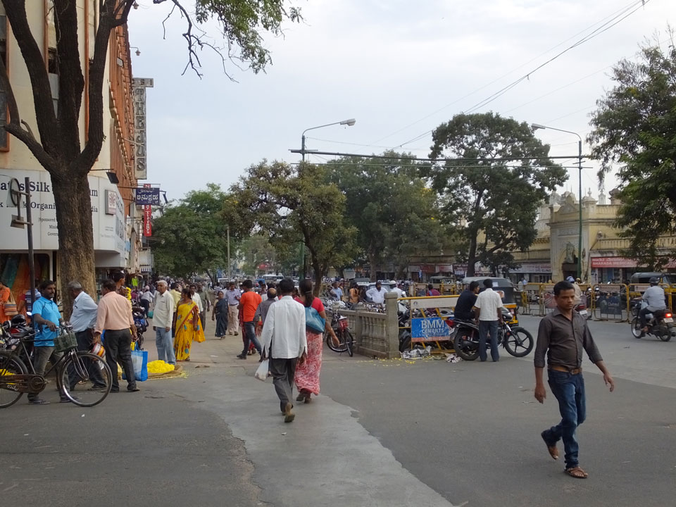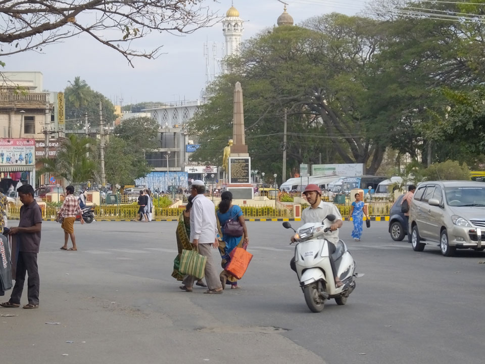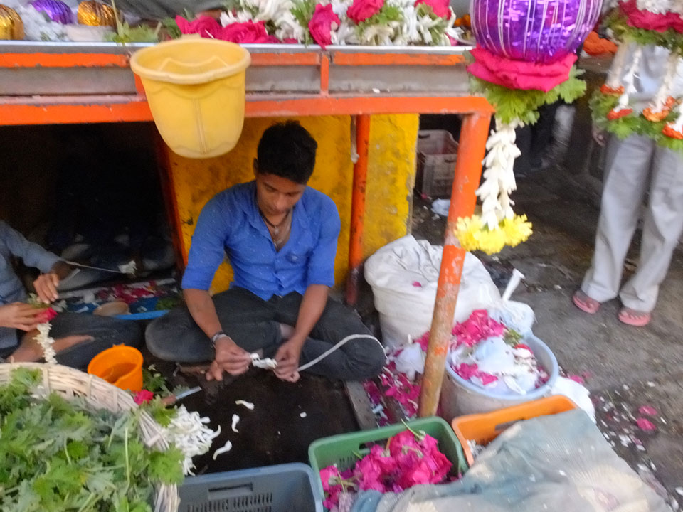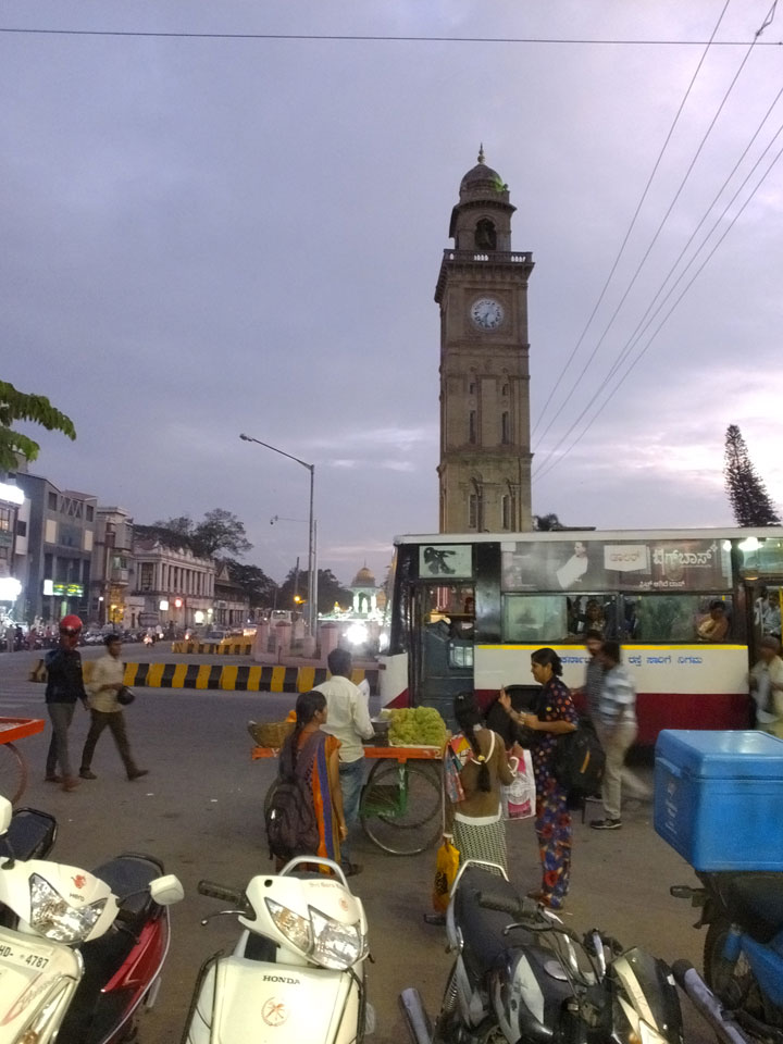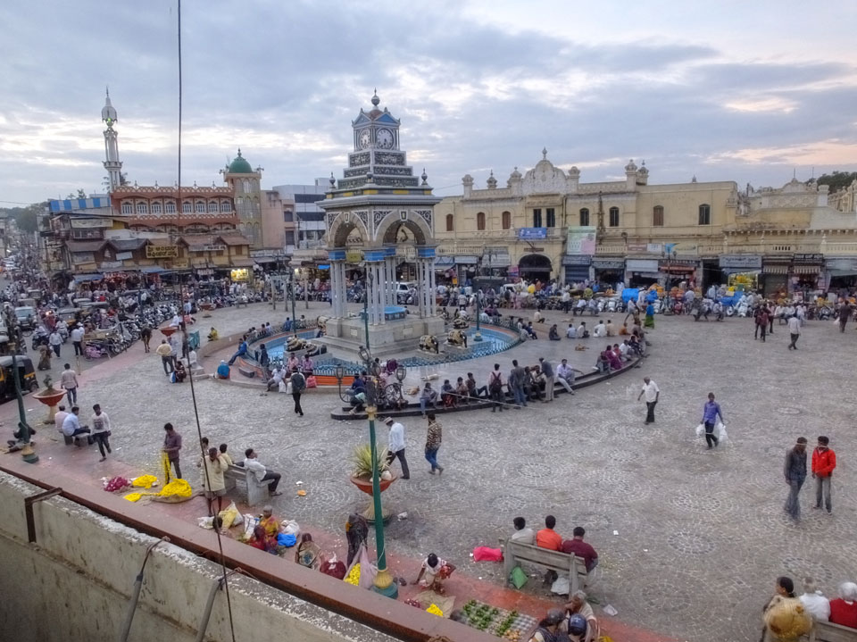 Ich ging nach 17:00 die vielleicht 10 Minuten zum Markt. Der Devaraja Markt war riesig und war etwas anstrengend. Immer wieder kommen Inder auf einen zu, fragen woher man kommt und so weiter. Hand schütteln soll ich auch immer. Mag ich nicht, weil die auch einen extrem laschen Händedruck haben. Irgendwo gibt es wohl einen Kurs, wie man Touristen zum Kauf animiert, denn alles läuft ständig gleich ab. Danke, kein Interesse an Räucherstäbchen. Das wird sogar auf Deutsch angeboten. Weiterhin wurden heute viele Blumen verkauft. Morgen ist Tag der Republik.
