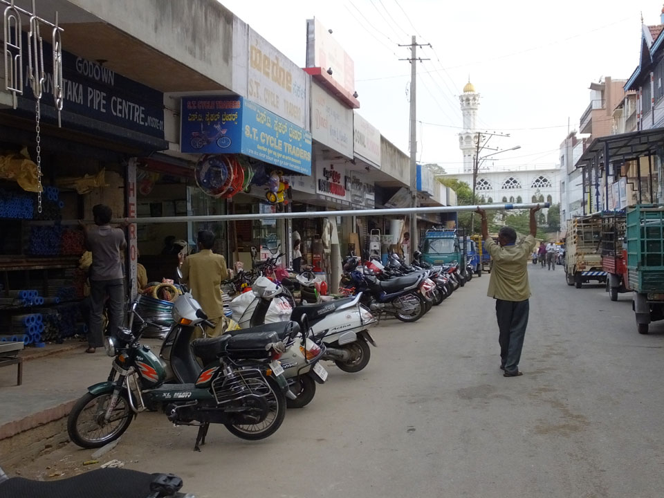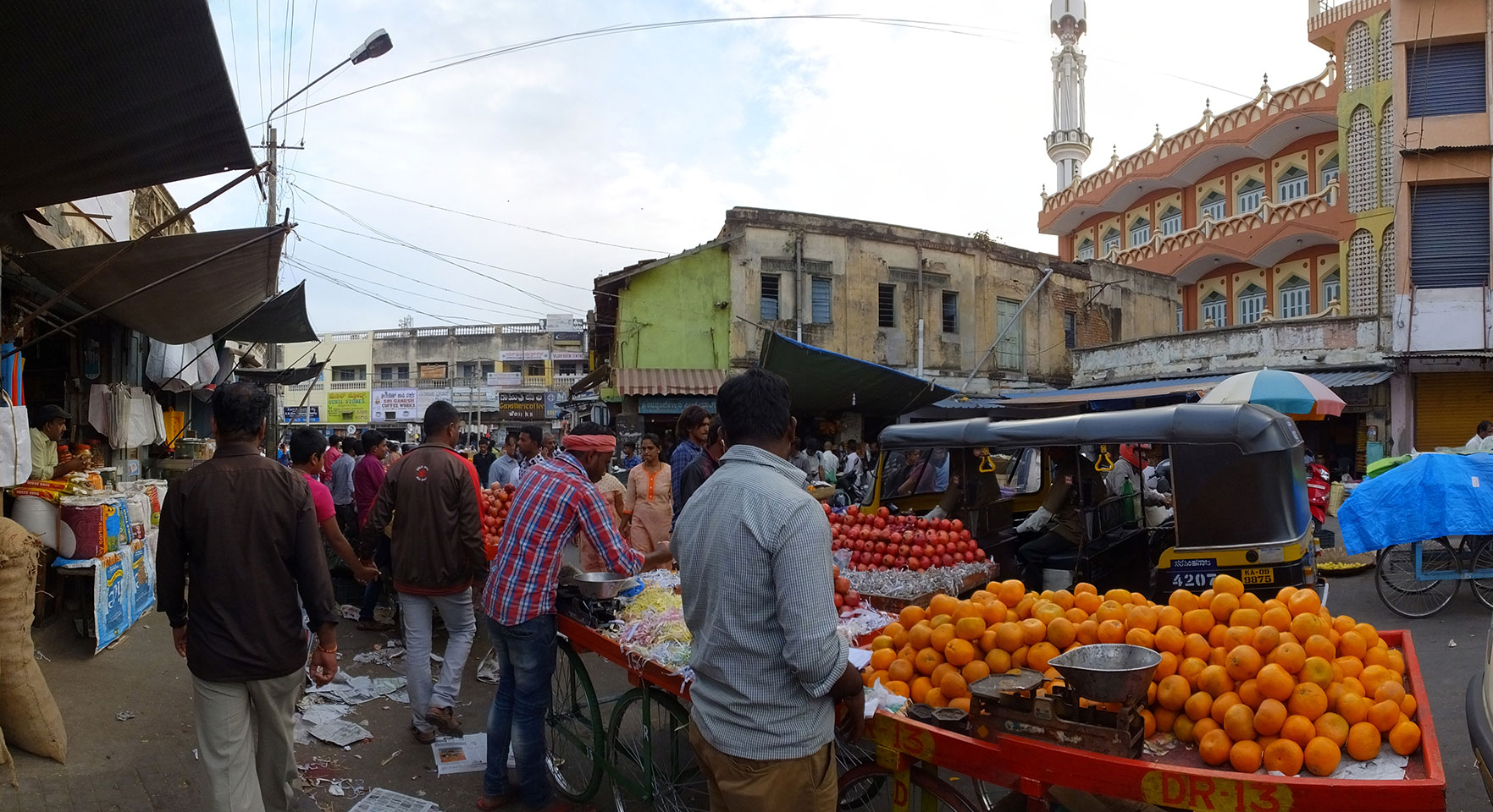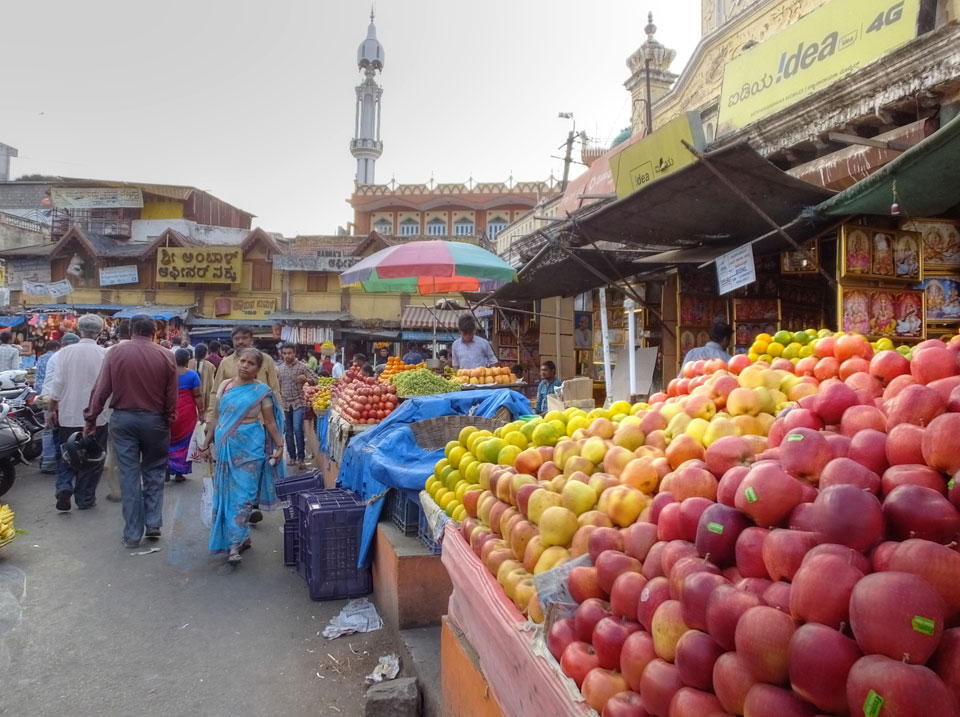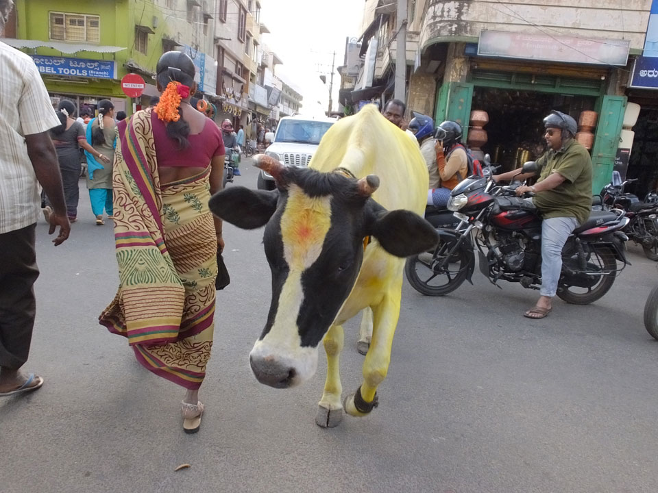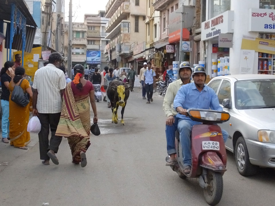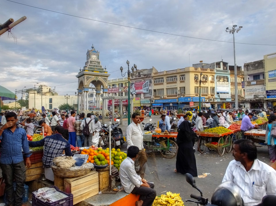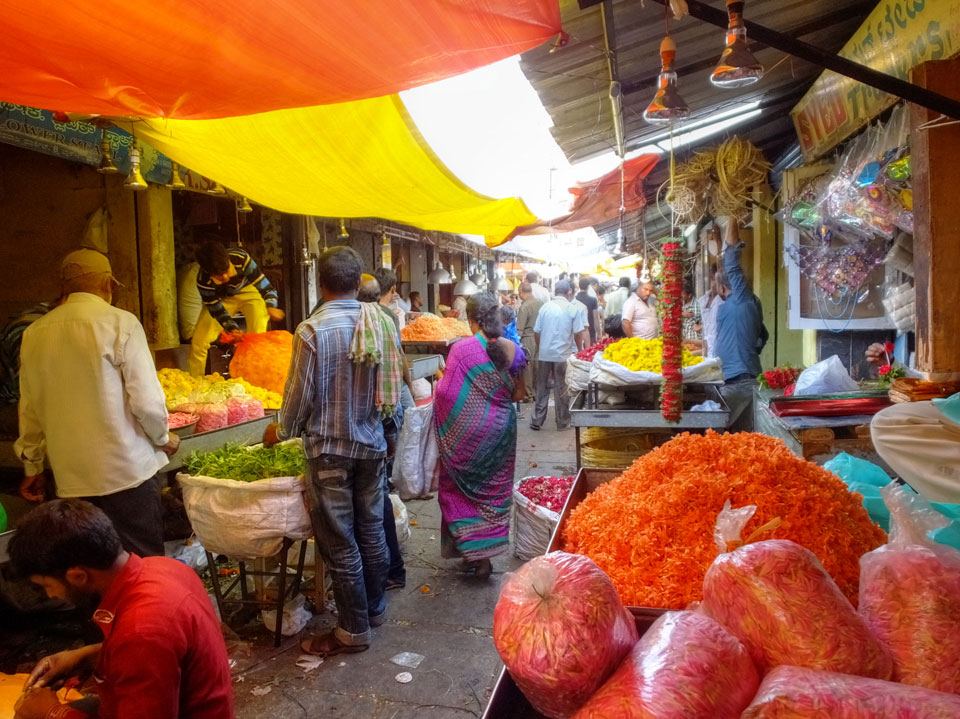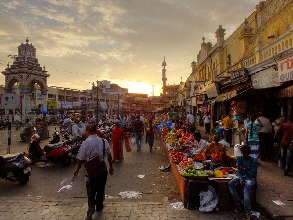 Ich ging nach 17:00 die vielleicht 10 Minuten zum Markt. Der Devaraja Markt war riesig und war etwas anstrengend. Immer wieder kommen Inder auf einen zu, fragen woher man kommt und so weiter. Hand schütteln soll ich auch immer. Mag ich nicht, weil die auch einen extrem laschen Händedruck haben. Irgendwo gibt es wohl einen Kurs, wie man Touristen zum Kauf animiert, denn alles läuft ständig gleich ab. Danke, kein Interesse an Räucherstäbchen. Das wird sogar auf Deutsch angeboten. Weiterhin wurden heute viele Blumen verkauft. Morgen ist Tag der Republik.