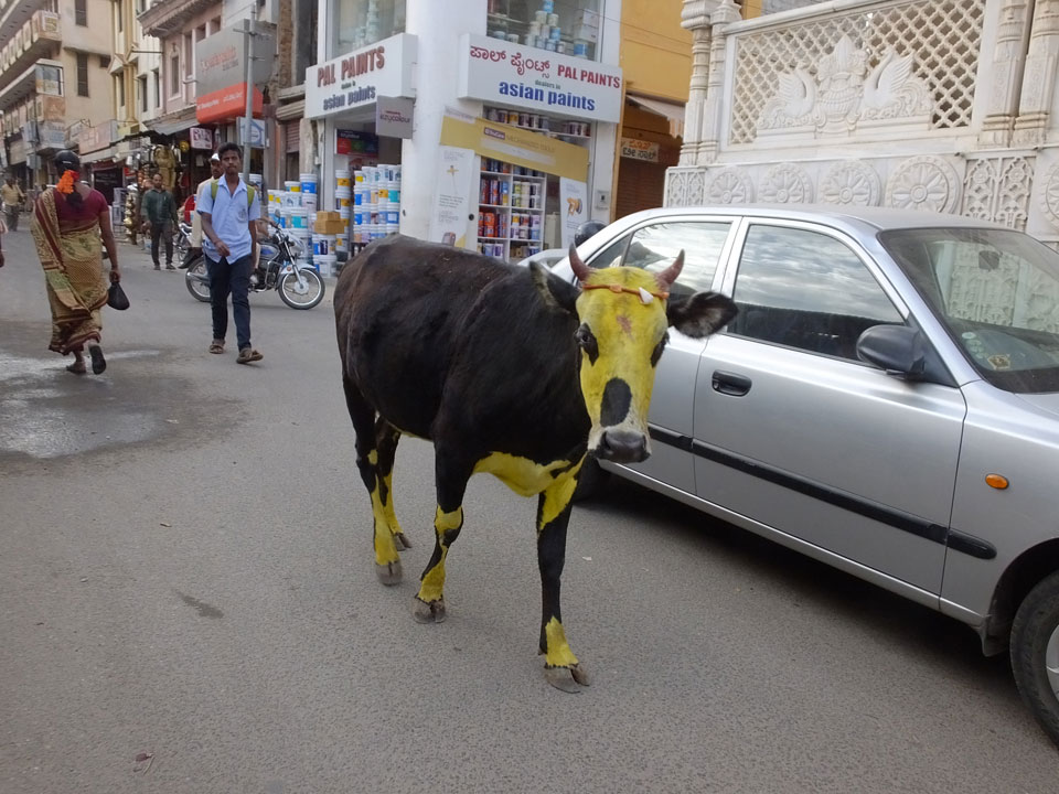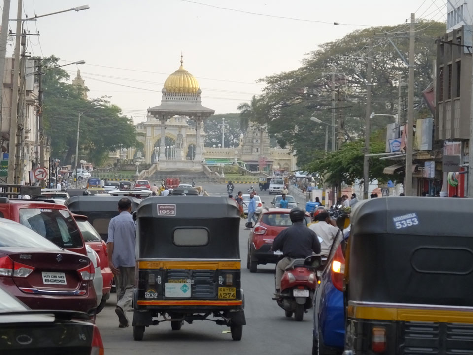 Zurück in’s Hotel dann wieder, gerade mal eine Stunde war ich unterwegs. Mysore ist doch größer, als ich das bisher wahrgenommen hatte. Im Hotel buchte ich, mangels VISA Akzeptanz bei den Bussen, ein Fahrkarte für den Zug – 840 INR (€11,50). Das Hotel will man fette 400 Rupees (€5,70), dass ich später auschecke – gegen 13:00. Aus Prinzip wollte ich das zwar nicht, weil zu teuer aber egal. Der Zug soll 14:15 fahren und nach nur 2h in Bangalore ankommen. Na mal sehen – Executive Chair.