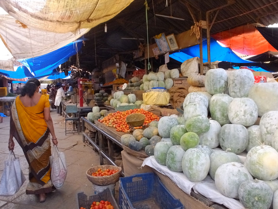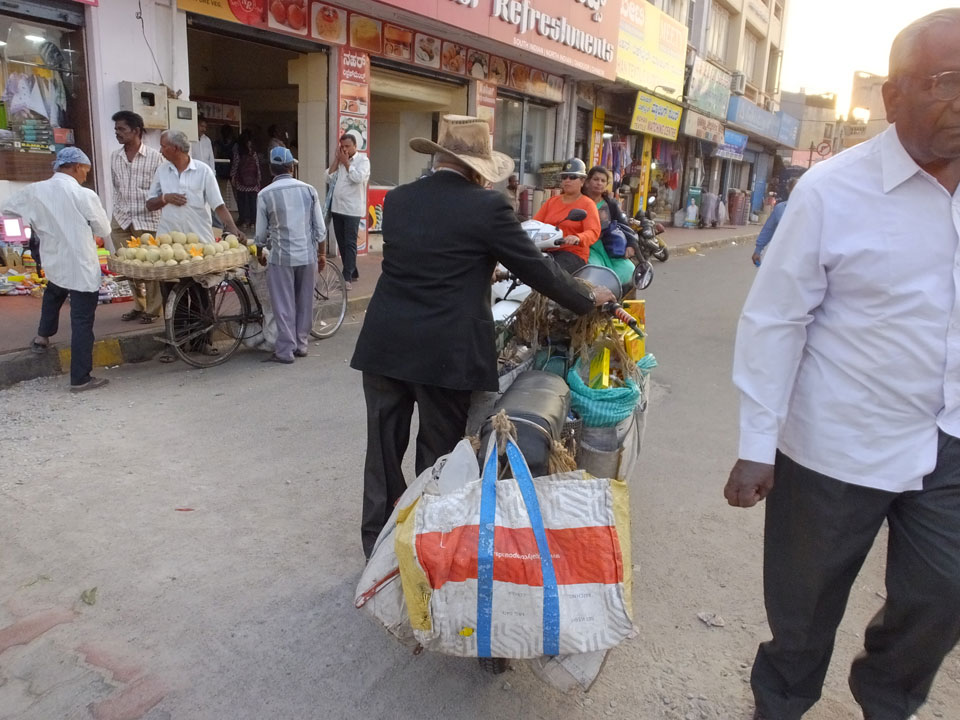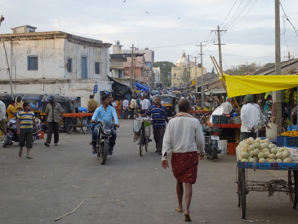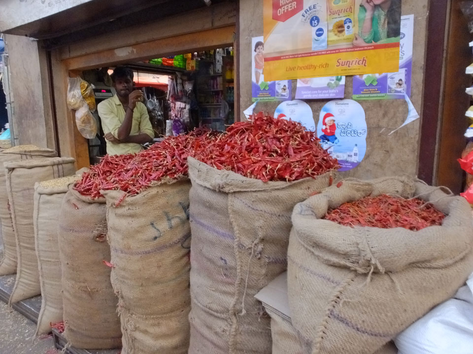 Nach einer Runde musste ich erst mal raus, dreht dann noch eine Runde durch die Gemüse und Chilli-Abteilung. Das Abendessen holte ich mir am markt. Das erste richtige Mahl des Tages bestand wieder aus Masala Dosa. Langsam müsste ich mal ein paar andere Gerichte lernen. Als ich da wartete kam auch wieder ein Kind und wollte, dass ich den Stand von Räucherstäbchen im Markt anschaue. Kein Interesse. Mann…