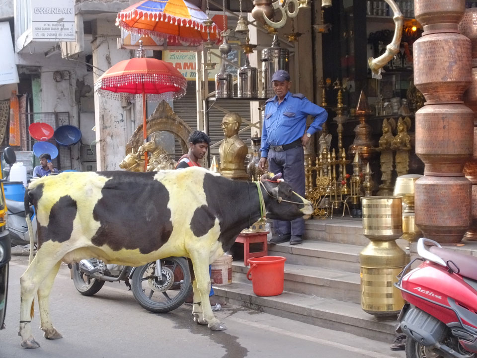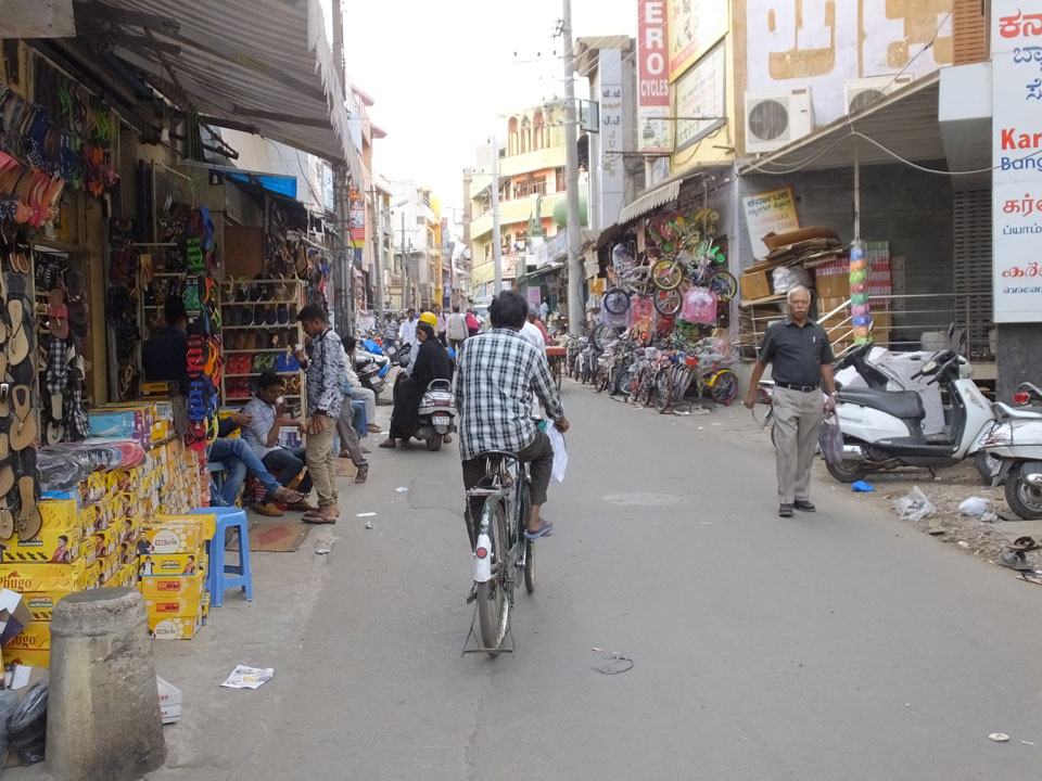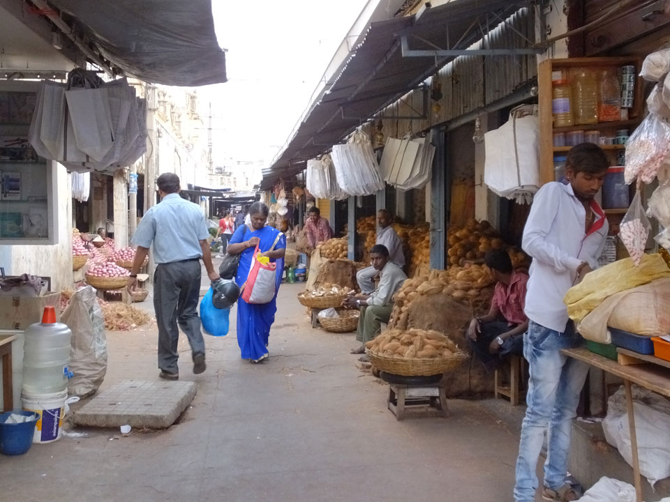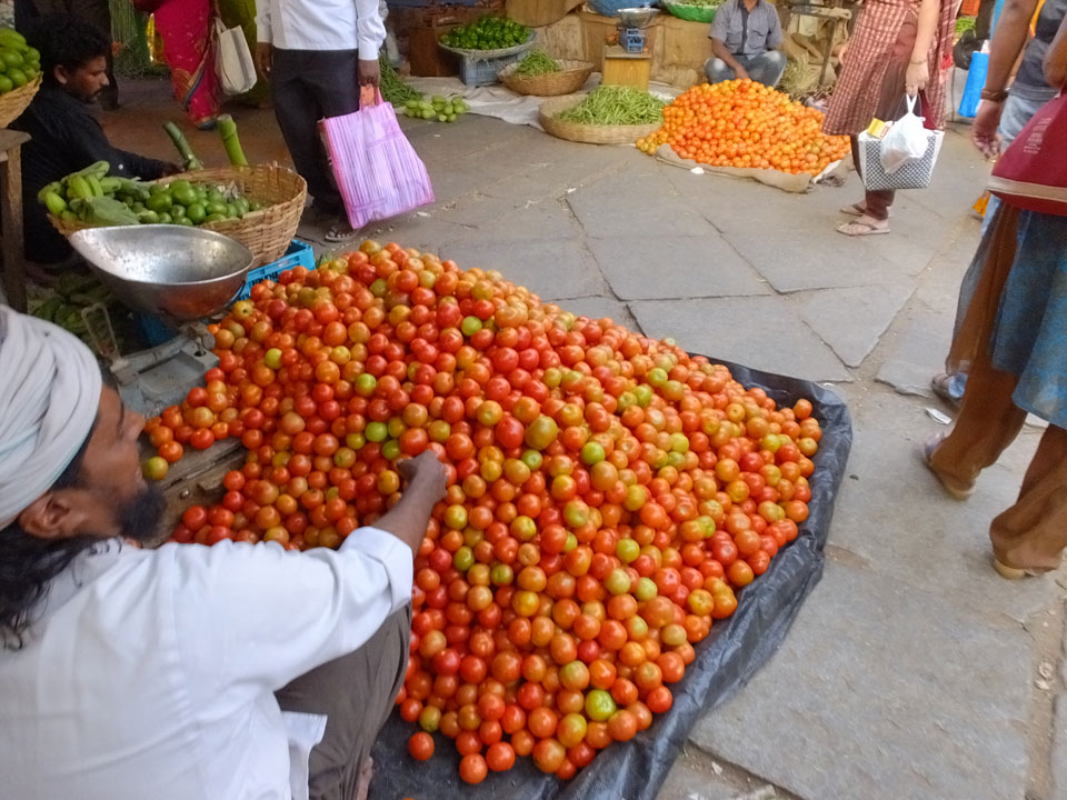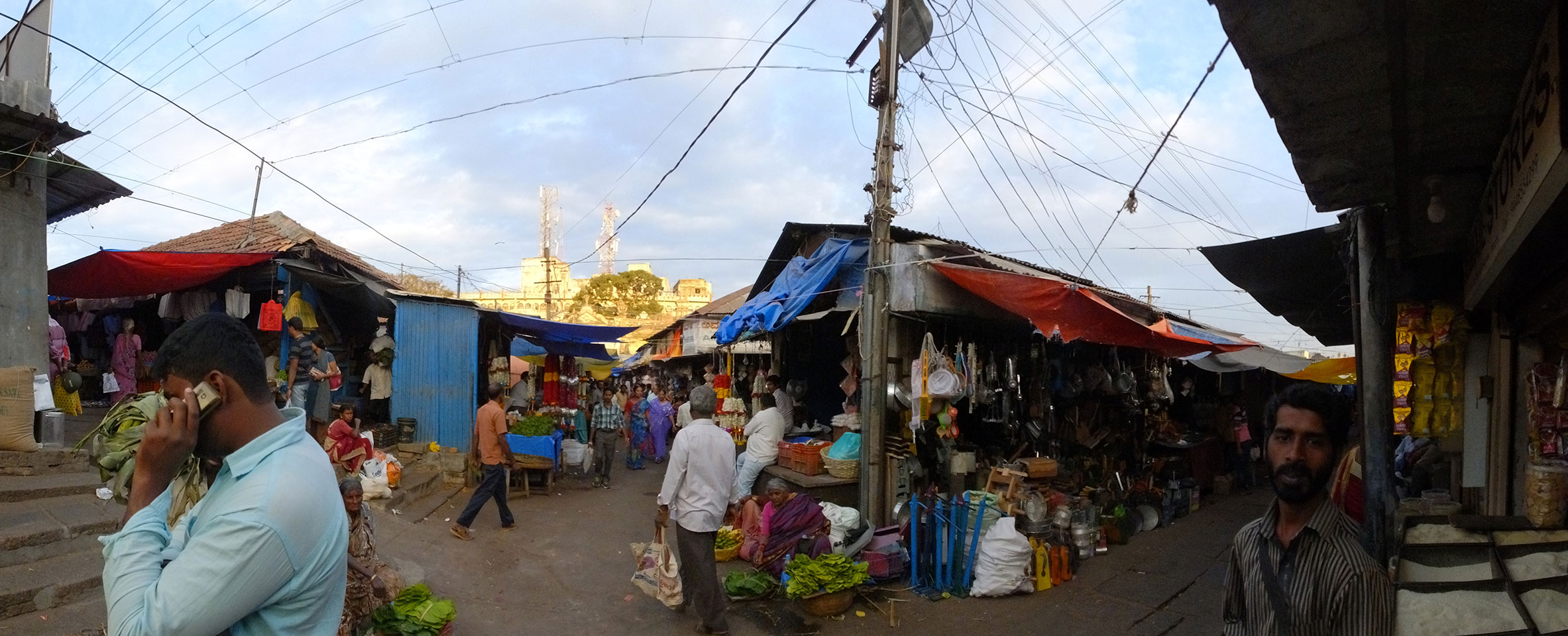 Nach einer Runde musste ich erst mal raus, dreht dann noch eine Runde durch die Gemüse und Chilli-Abteilung. Das Abendessen holte ich mir am markt. Das erste richtige Mahl des Tages bestand wieder aus Masala Dosa. Langsam müsste ich mal ein paar andere Gerichte lernen. Als ich da wartete kam auch wieder ein Kind und wollte, dass ich den Stand von Räucherstäbchen im Markt anschaue. Kein Interesse. Mann…