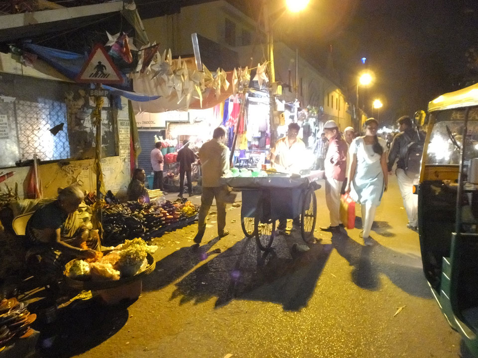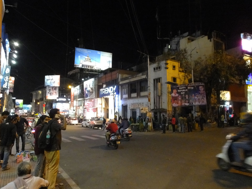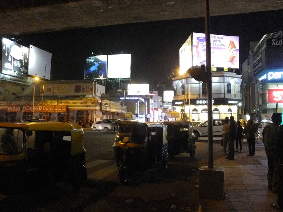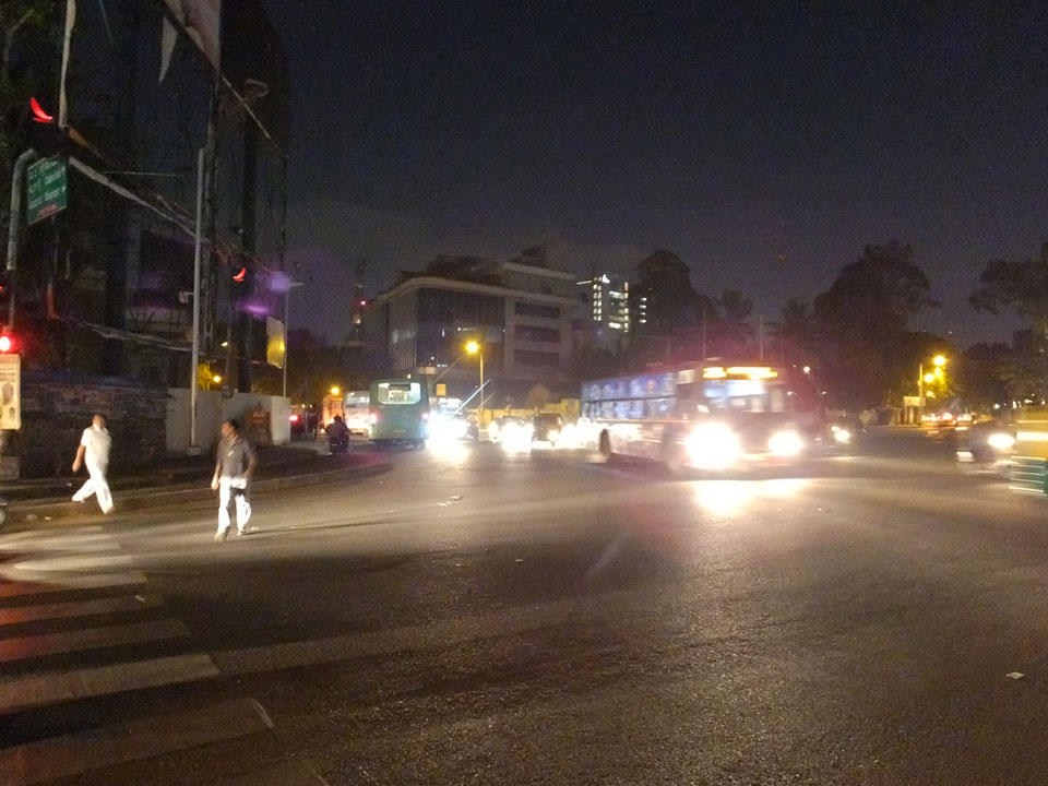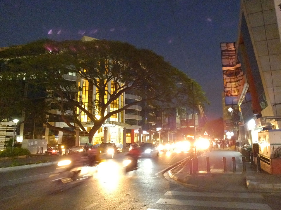 Eigentlich wollte ich zum Springbrunnen im Indira Gandhi Park. Der Weg dorthin war düster und im Park schien auch tote Hose. Ich ließ es sein und machte einen Schwenk zur Cunningham Road. Da war mehr los, auch wenn die Straße mehr für Autos gemacht schien.