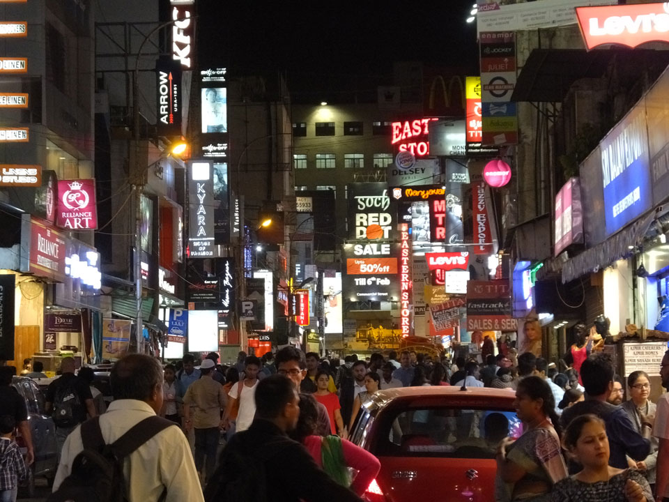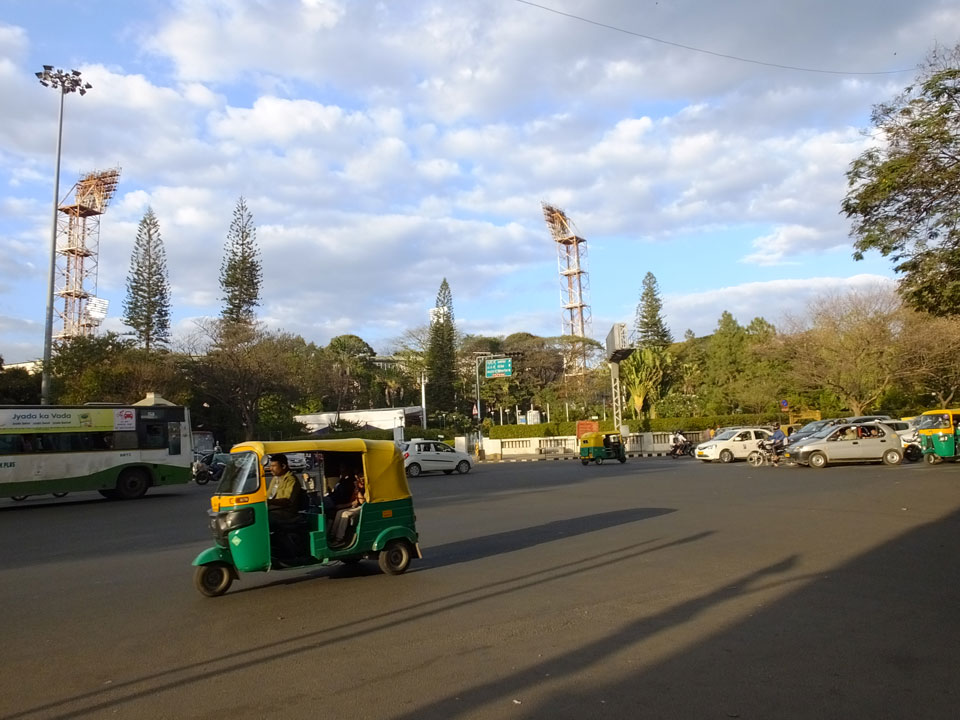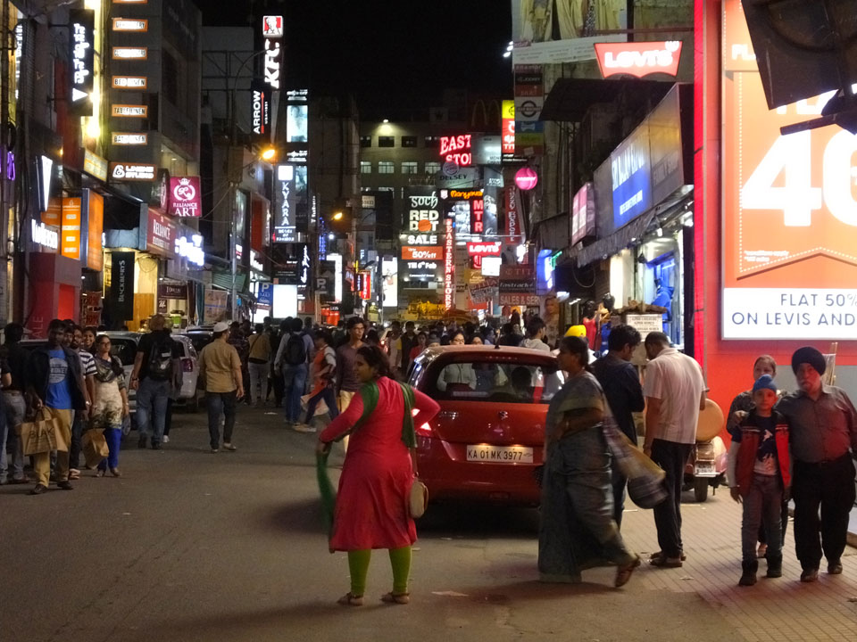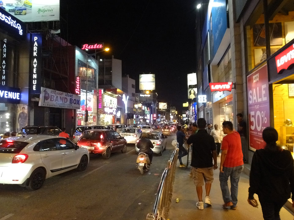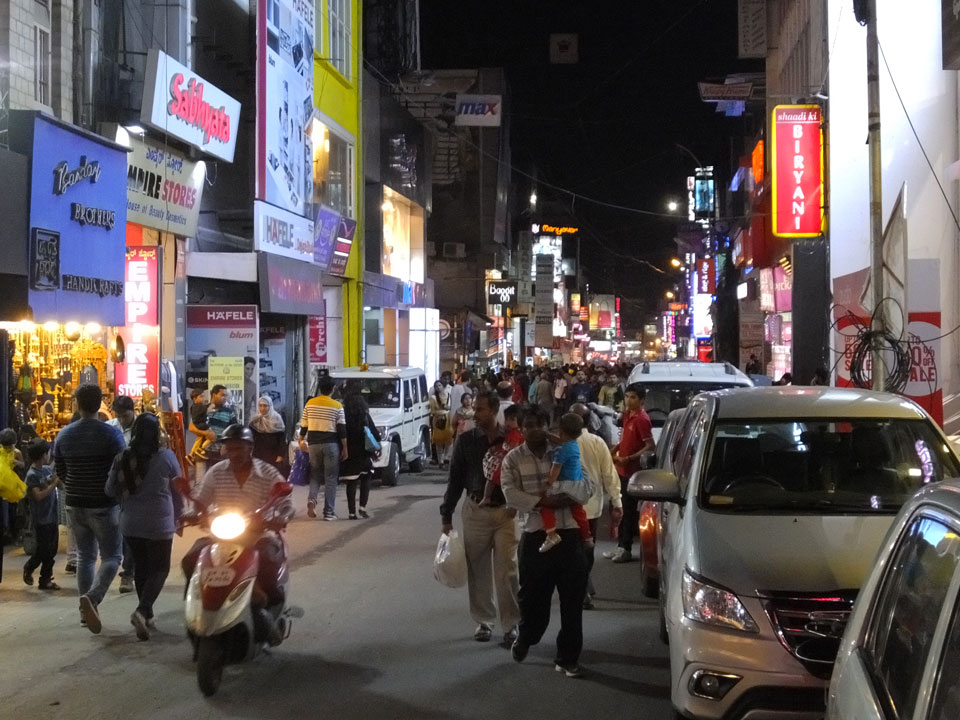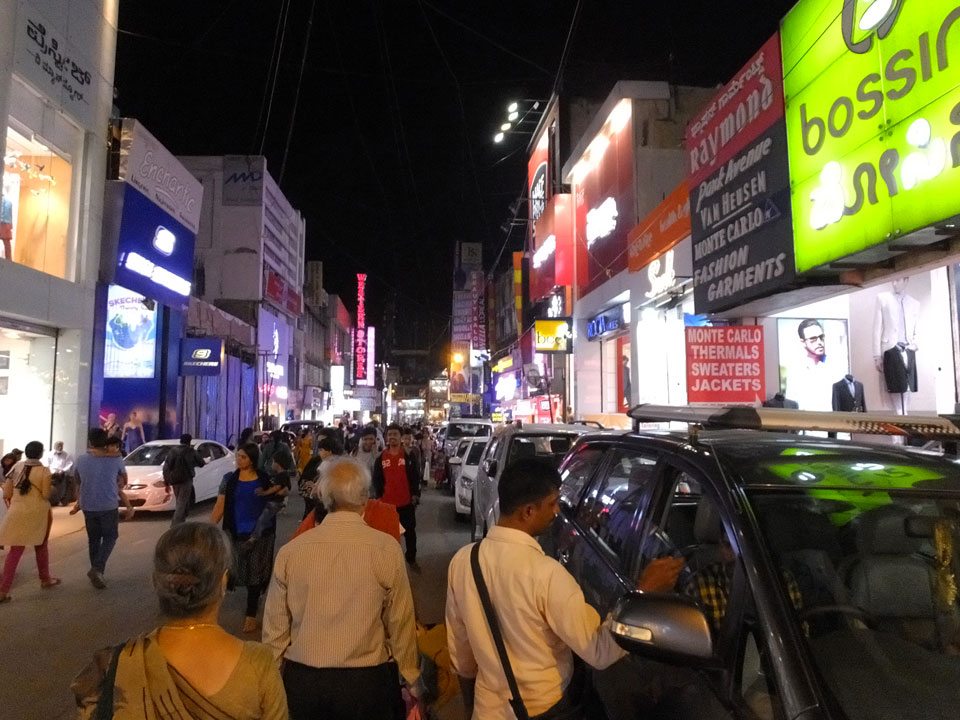 Eigentlich wollte ich zum Springbrunnen im Indira Gandhi Park. Der Weg dorthin war düster und im Park schien auch tote Hose. Ich ließ es sein und machte einen Schwenk zur Cunningham Road. Da war mehr los, auch wenn die Straße mehr für Autos gemacht schien.