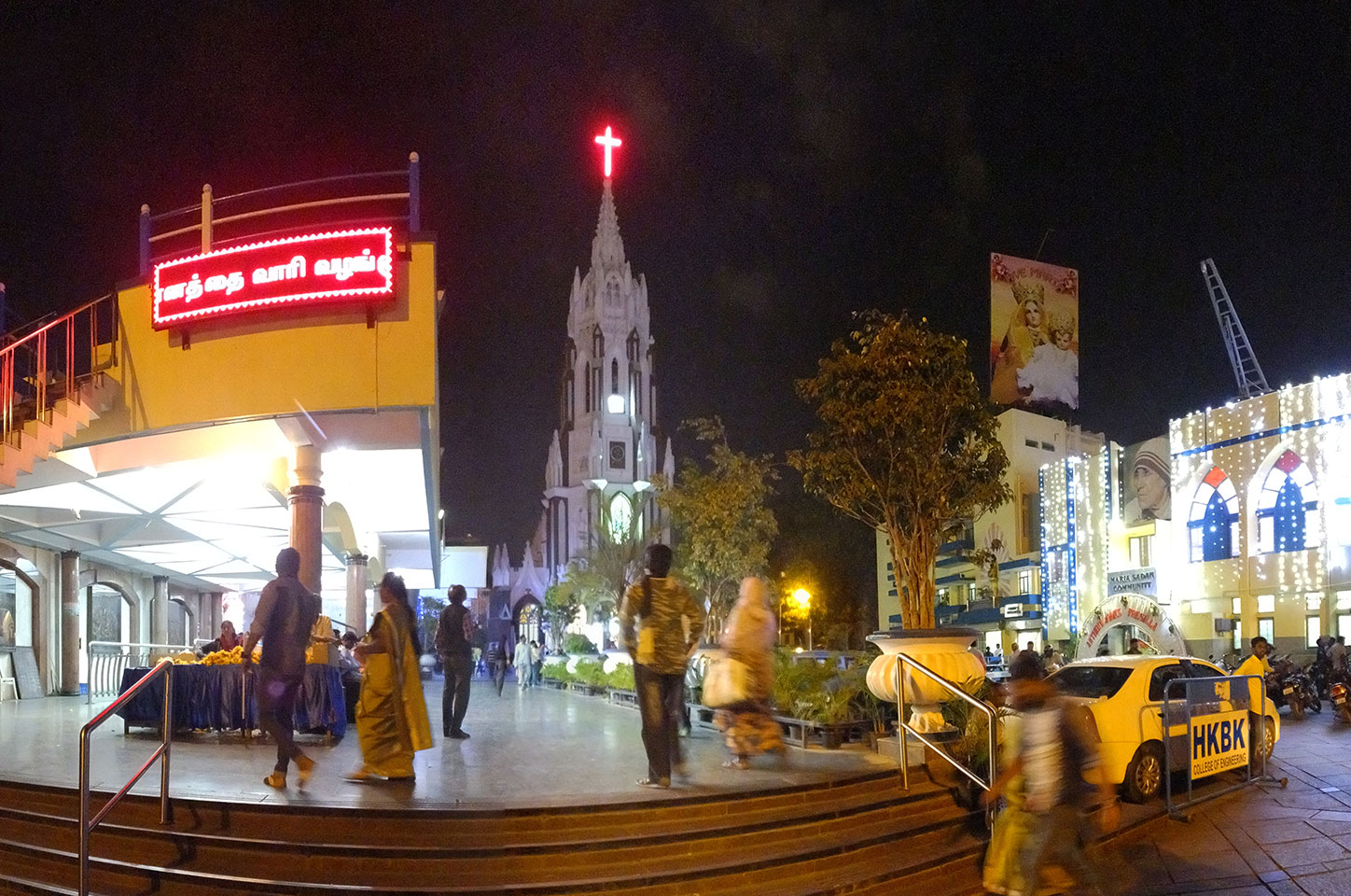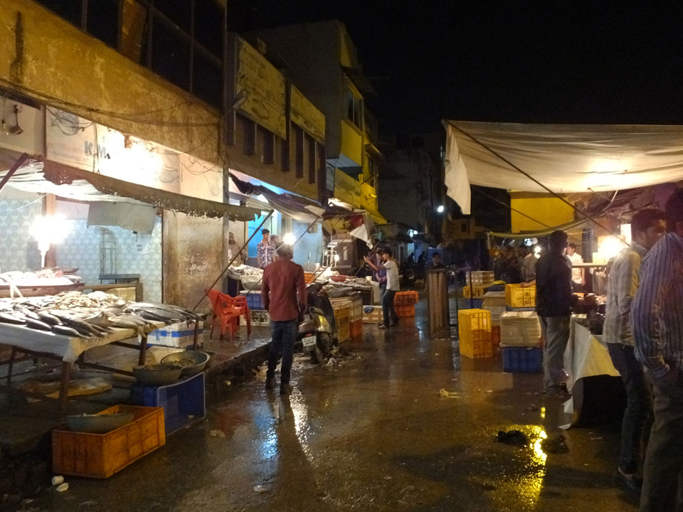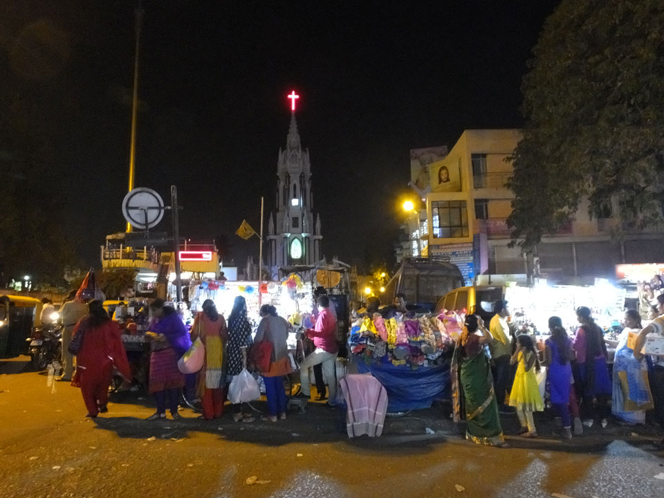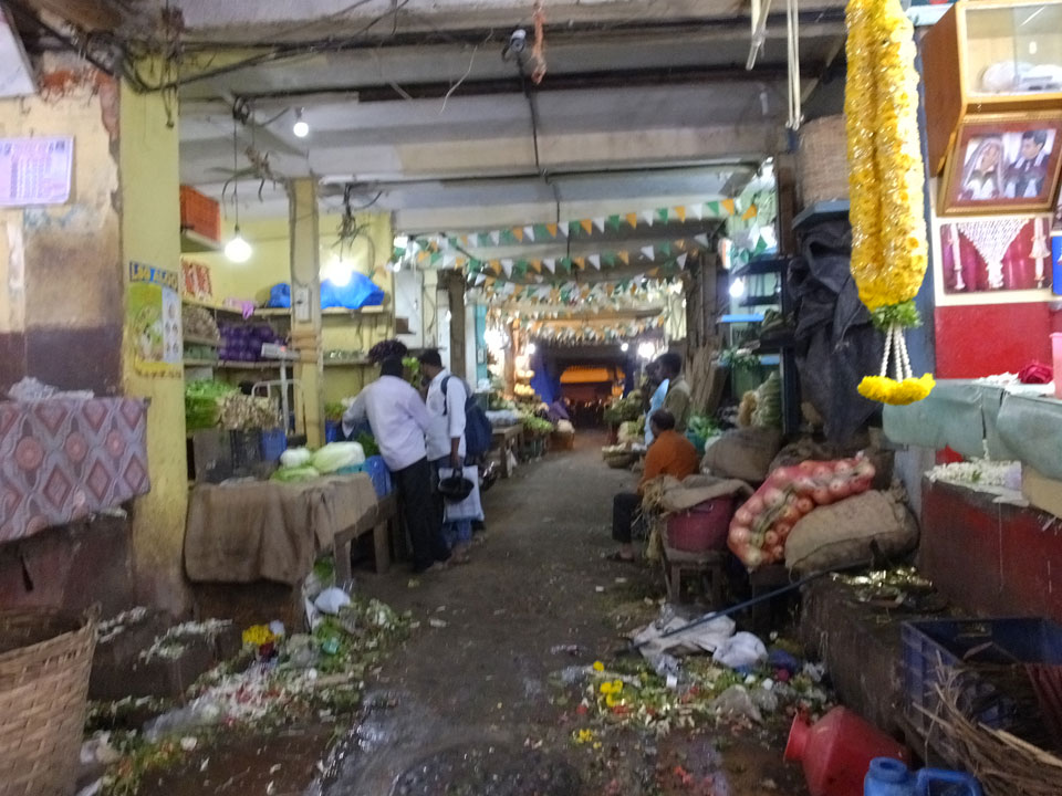 Ich ging schließlich in einen älteren Stadtteil und kam an der St. Mary’s Basilica vorbei. Ein Gottesdienst lief oder so. Hindu Tempel, Moschee und Kirche stehen hier nebeneinander. Ich werde oft angestarrt. Das Gebiet dan um den Russel Market schien eher muslimisch. Der Markt an sich war mir auch zu düster. Ein paar Stände für Obst, Gemüe oder Blumen hatten noch geöffnet. Der Rest stank eher nach Fleisch, Fisch und Abfällen.
