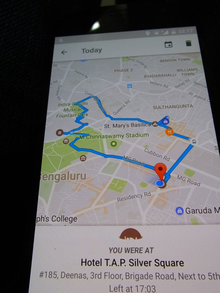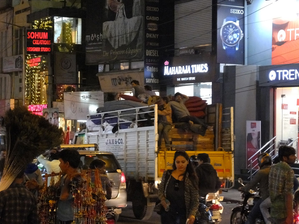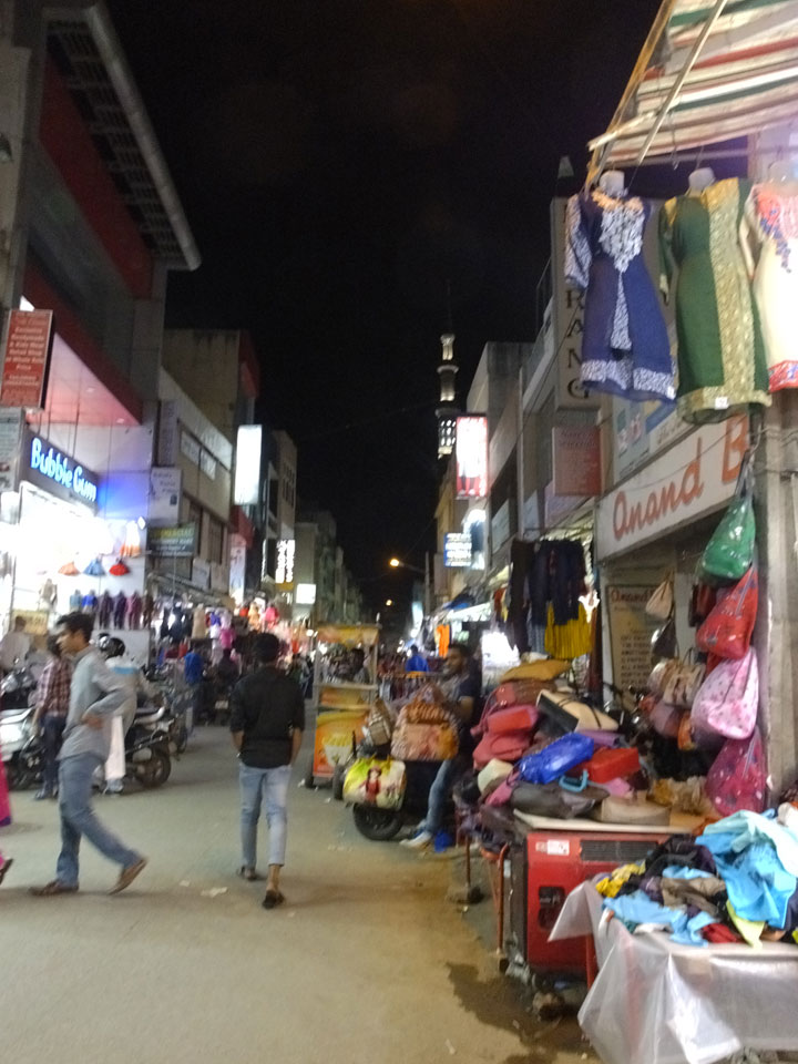 Ich kam über eine dunkle Straße wieder zurück zur MG Road und Bridge Road. Packen war angesagt und Befreiung meiner ganzen Kleidungsstücke von den Wäschereifäden. Da hatte ich einige Minuten zu schnippeln.