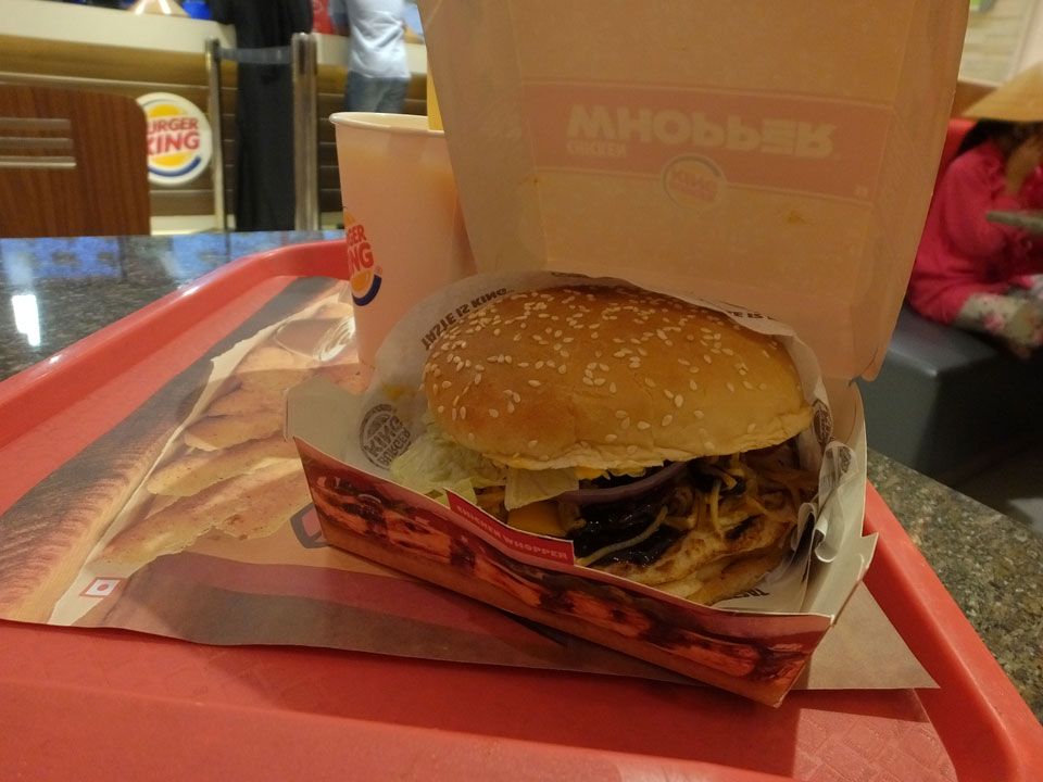 Bei Burger King holte ich was Essbares. Zu meinem Slushi gab’s keinen Strohhalm. Plastik is banned. Aha! Ich hatte davon gehört, denn selbst im Supermarkt gibt’s nur Stofftaschen. Mit einem Holzlöffel bekam ich den Drink aber auch gut runter.