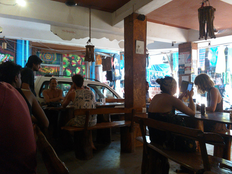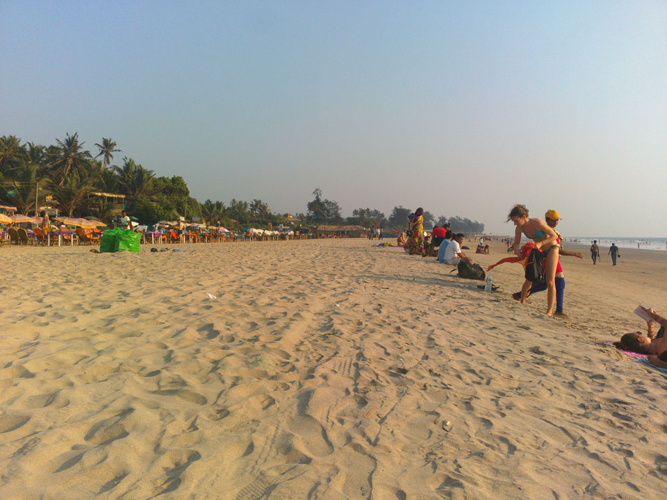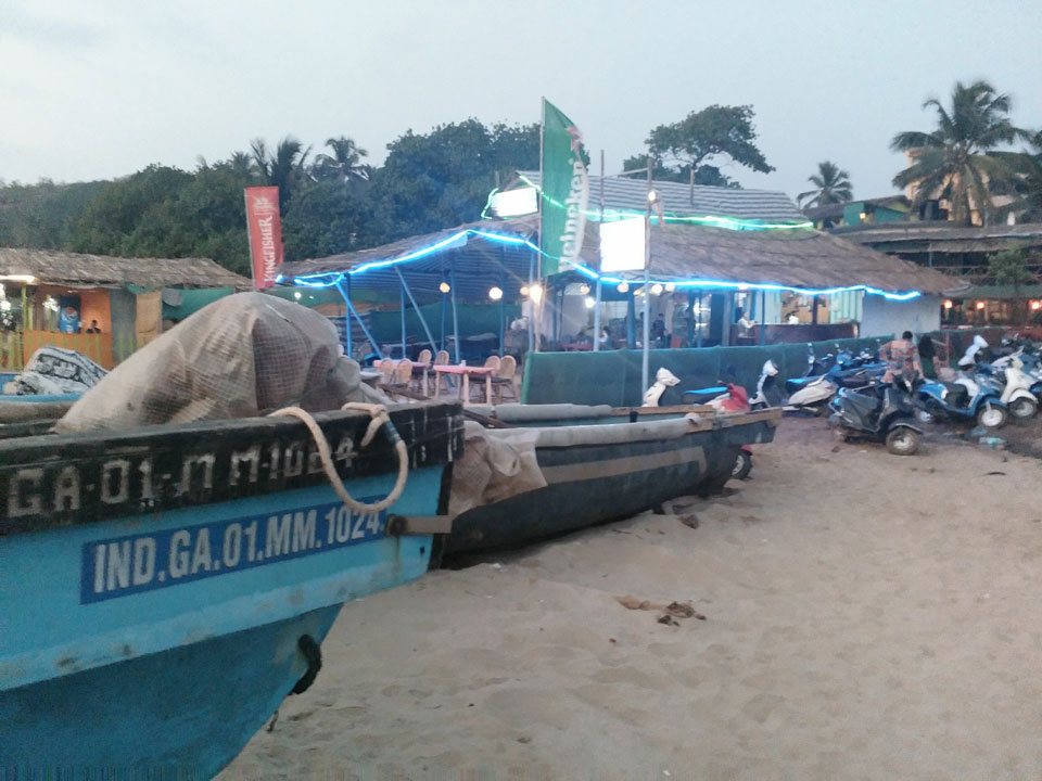 Abends hingen die Raucher wieder herum. Einige der Typen laufen ohne Schuhe umher und riechen streng. Goa zieht ein neben Urlaubern auch Hippies an, was bekannt ist. Parties waren mir heute nicht bekannt. Ich ging zum Strand doch wenig Lichtspiele und auch sonst alles ruhig – zum Freitag.