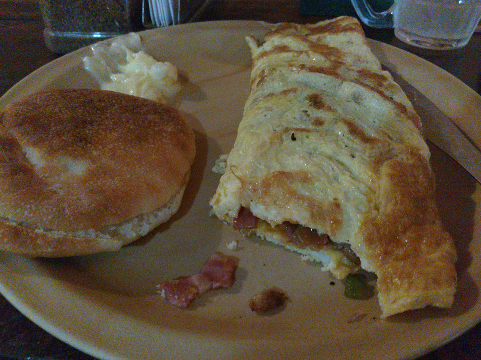 In der „German Bakery“ machte man auch nach 16:00 noch ein Frühstück. Das Klientel da war auch sehr chillig. Die Mango Torte war OK, das Omelett super.
