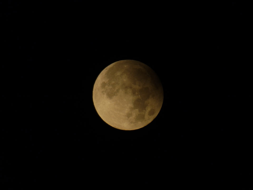 Ich war dann doch noch so lange wach, um die Halbschatten-Mondfinsternis zu sehen. Eigentlich wollte ich den Höhepunkt nach 6:40 abwarten, doch das verpasste ich leicht. Der Mond war schon hinter den Bäumen verschwunden. Ganz nett, am besten mit der Fuji sichtbar, weil der Mond sonst fast genauso hell schien.