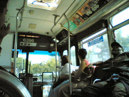 Ich bin dann noch ins „Santa Monica Place„, was quasi um die Ecke lag. Einen Chickenwrap gab’s. Die zweite Hälfte nahm ich eingepackt aber wieder mit. Dann schnell ‚raus aus dem Hotel und in den erstbesten Bus Richtung Downtown. Die Busfahrten hier sind immer ein Abenteuer. Ich startete ca 13:00 mit der Busfahrt und erwartete eigentlich, den Greyhound um 14:20 zu schaffen aber die Karre zuckelte extrem langsam daher, Block für Block. Obdachlose und Sozialfälle kamen und gingen. Es schleifte sich durch Westwood, Beverly Hills und am Ende war ich endlich an der Richtigen Haltestelle – Olive/7th Street. Nochmal schnell umgestiegen und mit der 60 Richtung Long Beach. Ja, es geht auch einfacher (z.B. per Taxi) aber das bringt ja auch nichts.