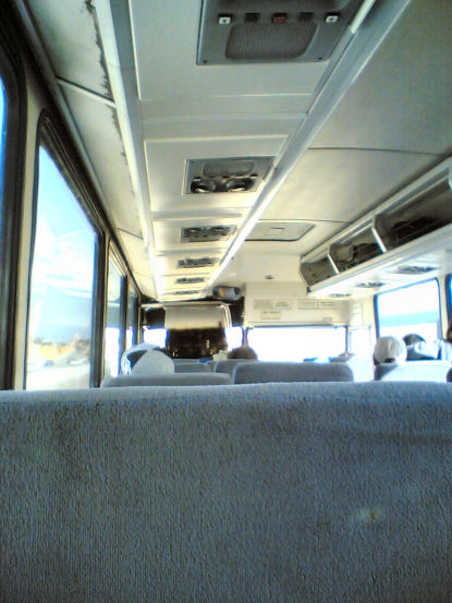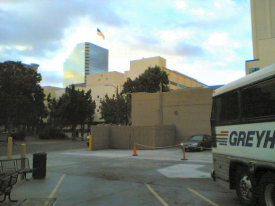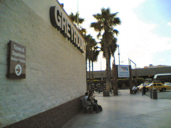 Der nächste Greyhound sollte um 16:00 starten und es war gerade um drei. Beim Gepäckwiegen drückte man ein Auge zu, sonst hätte es eine extra Übergewichtgebühr gekostet. Die Zeit verging recht fix. Beim Einchecken wurde das Handgepäck durchgewühlt und auch der Stahlkörper ;-) per Metalldetektor abgescannt. Wolgemerkt, man fährt mit ’nem Überlandbus aber Terroristen lauern halt überall. Zwei Cops waren mit den Leuten beschäftigt und die Mexicaner waren das wohl schon gewohnt. Der Bus fuhr übrigens bis nach Tijuana, der schönsten Stadt der Welt. :-)