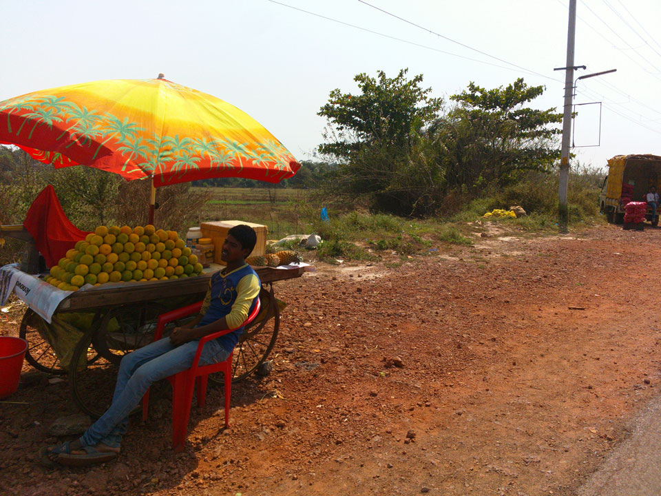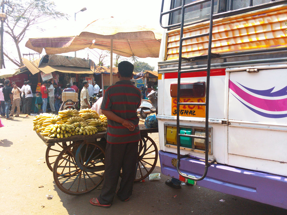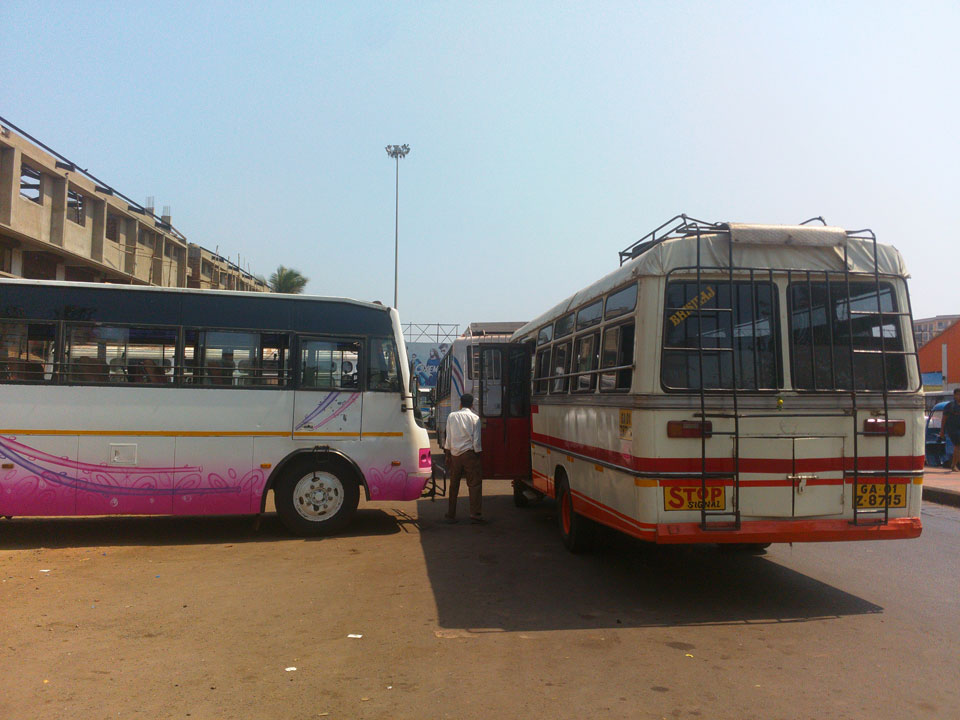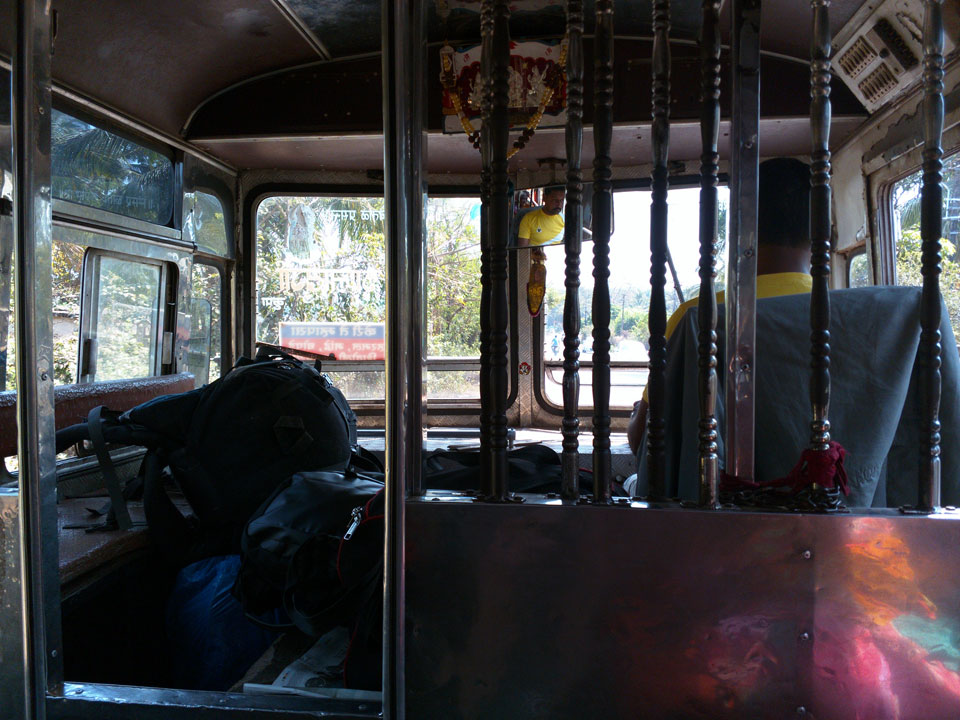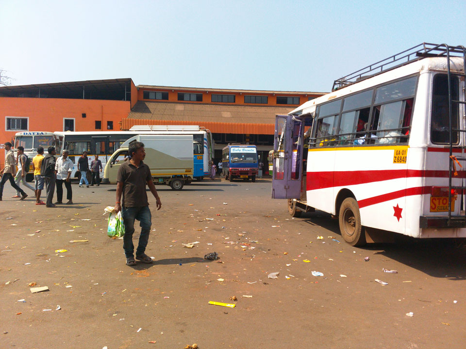 Das war eine gute Idee. Gleich oben an der Straße fuhr ein Bus lang. Mein Fahrer winkte und er hielt. Glück gehabt – ich war auf dem Weg nach Mapusa.
