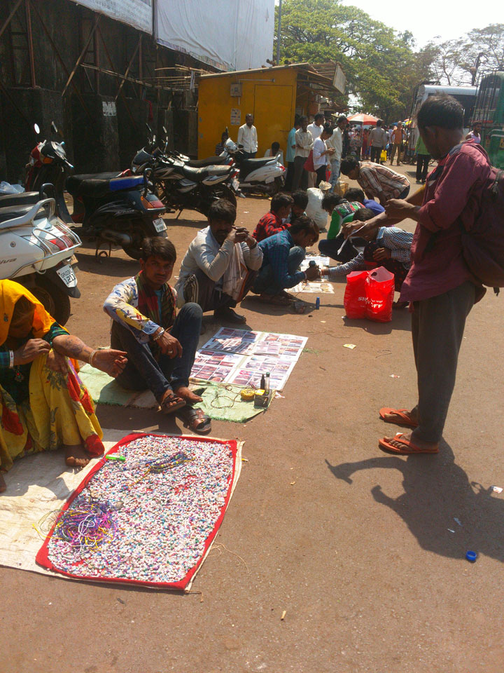 Erneut am Busbahnhof, dieses Mal in sengender Mittagssonne. Der Bus nach Vagator sollte kommen. Erst mal hie0 es Warten. Ein paar Tattoostecher machten echt Leuten neue Tätowierungen einfach so am Rand. Als nach ca. 20′ schließlich der Bus kam, sprangen viele Leute aus den schattigen Plätzen und der kleine Bus füllte sich.