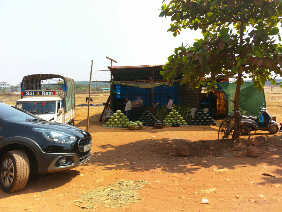 Ich wollte den Indern mit meinem Gepäck nicht Platz wegnehmen, ging auch gar nicht. So spazierte ich zu den Tuktuks und bekam eine Fahrt nach Vagator für 250. Auch ein Preis, der angesichts der ca. 15′ Fahrt OK geht (€3,50).