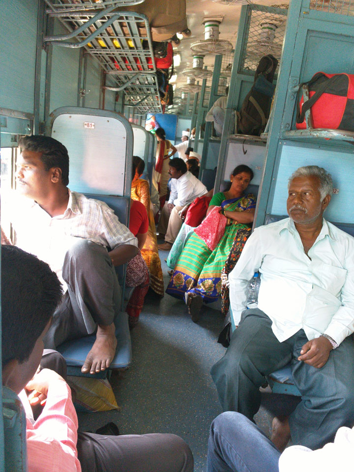 Kurz vor 4 kam endlich der Zug. Ich musste etwas sprinten, um die billigen Wagons zu erhalten. Dort waren alle Plätze besetzt, doch ich fand einen Platz, nur in Toilettennähe. Der Gestank der Biotoilette begleitete mich übder die 4-5 Stunden. zum Glück waren die Türen des Zuges offen.