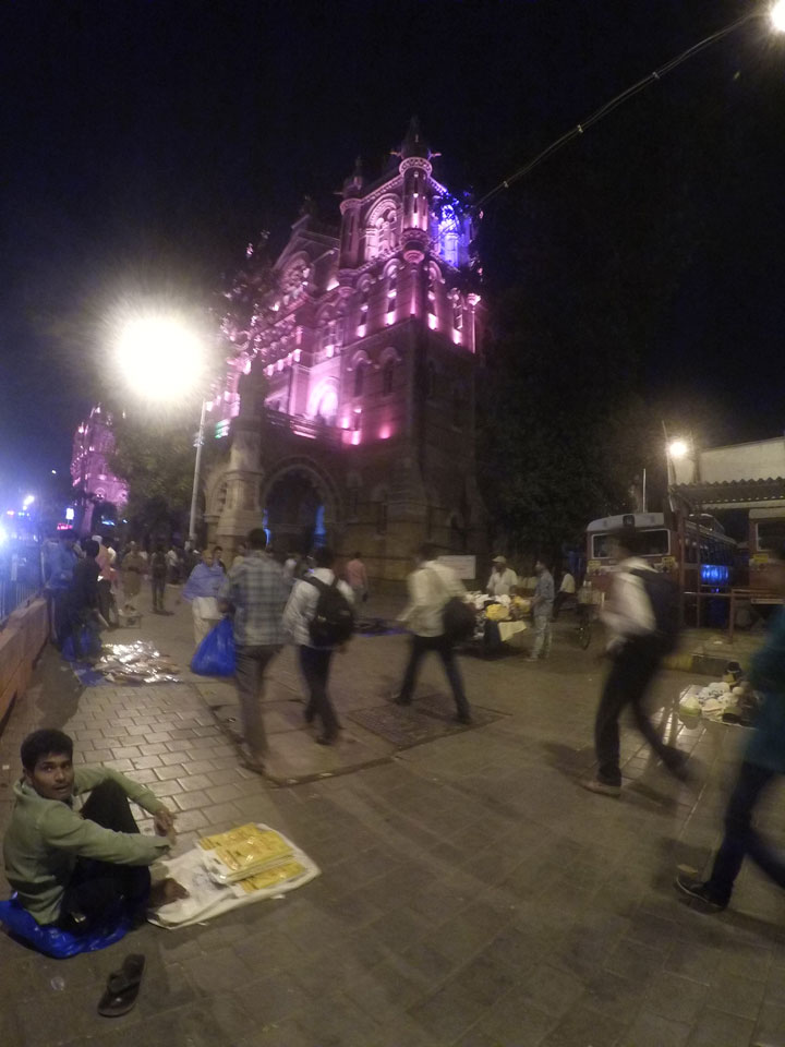 Das Gebäude ist schön anzuschauen. In der Hektik und mit Gepäck war ich nur weniger in Photolaune. Ich hatte doch ein Hotel ausgemacht, was in Fort statt Colaba stand. Das Travelers Inn war mein Ziel. Für 15′ Fußweg gut zu erreichen. Ein Taxifahrer wollte 100, ich ließ ihn stehen. Die Taxameter sind ja da, nur wollen sie die bei Touristen nicht anstellen.