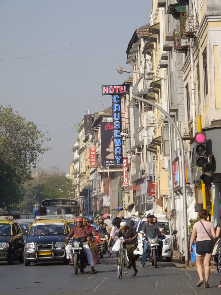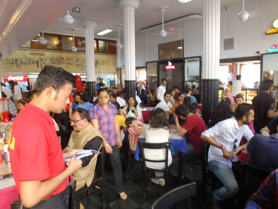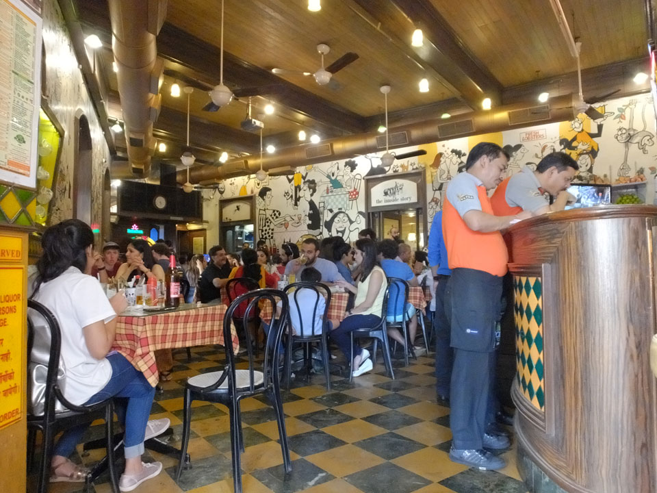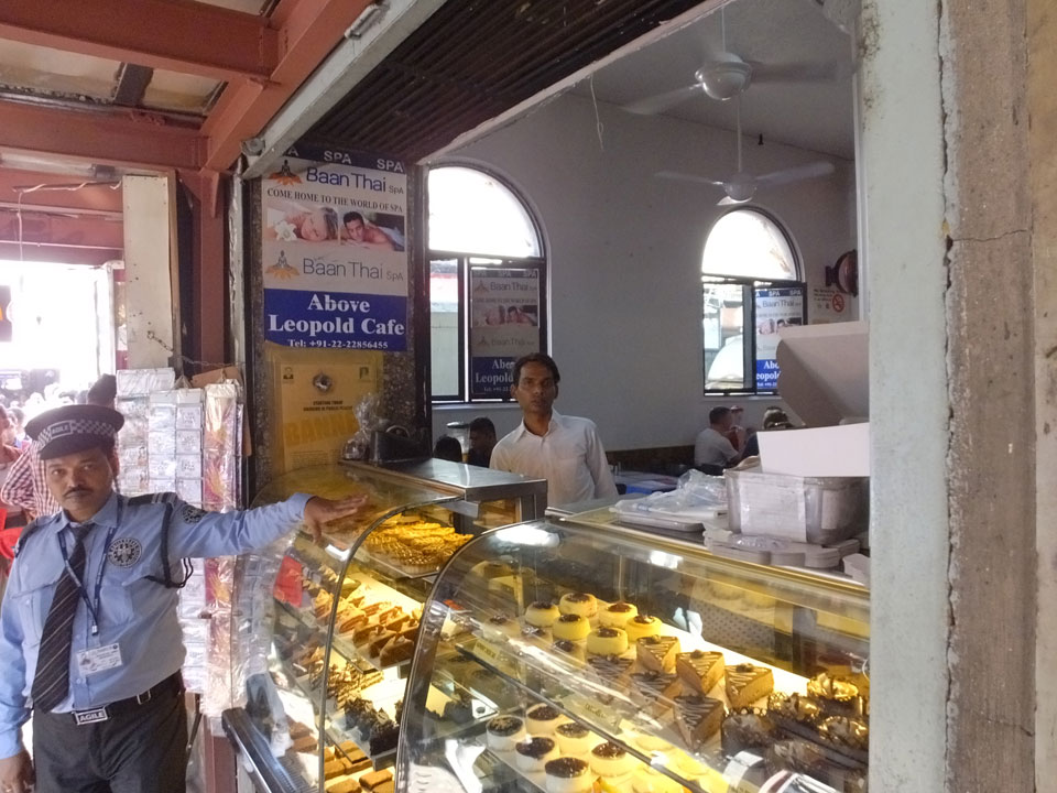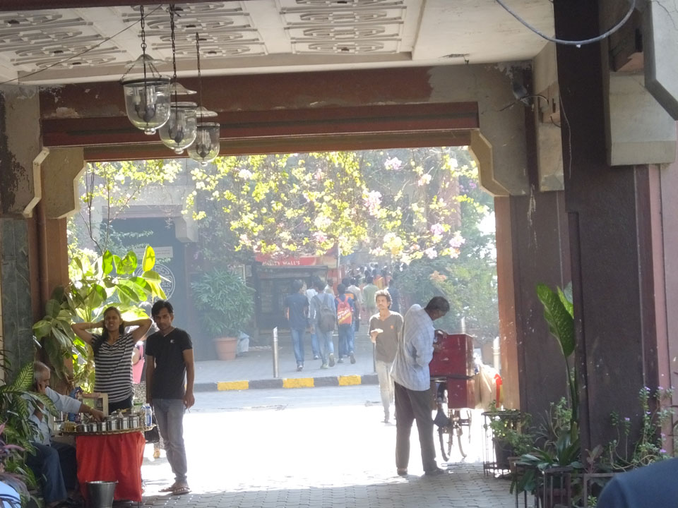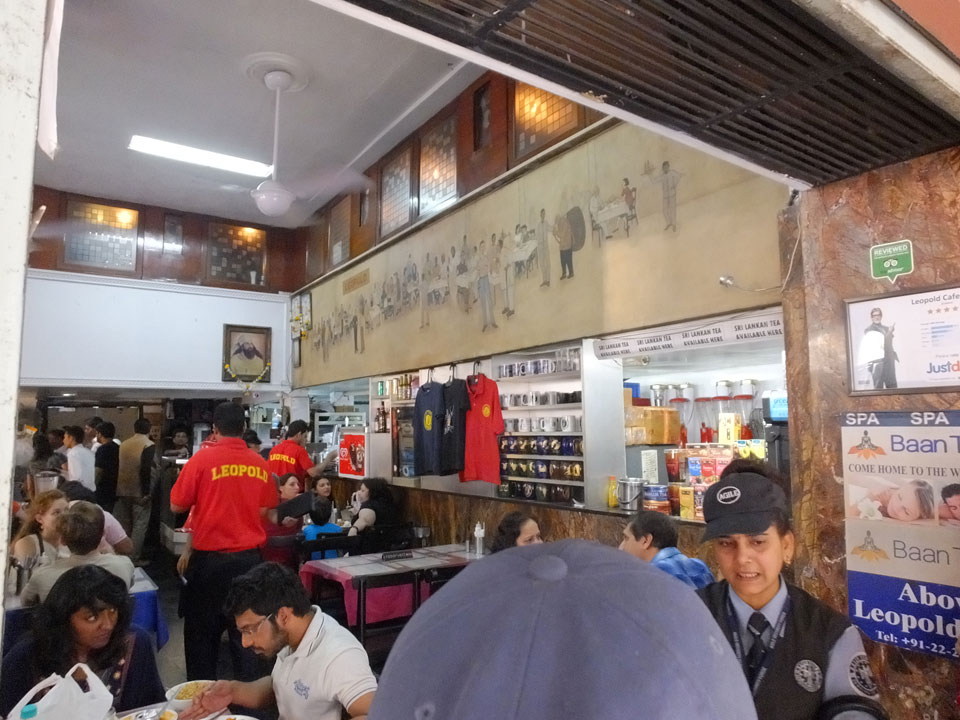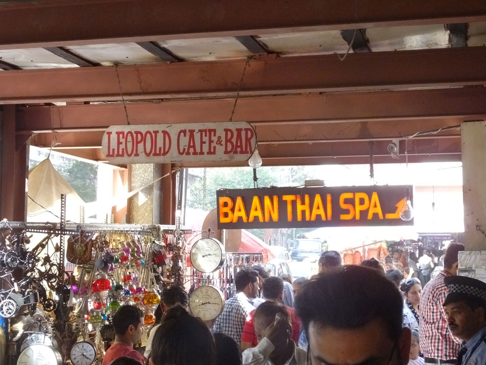 Wieder zurück auf’s Boot und zurück nach Mumbai. Er wollte zurück in’s Hostel, ich ging noch eine Runde durch Colada. Mein Ziel war das Café Leopold, das ich aus „Shantaram“ endlich mal live sehen wollte. Dort stand eine Schlange, die auf einen Tisch wartete. Es war ein schöner Moment, das Café von der Vorstellung aus der Buchbeschreibung dann in Echt zu sehen. Ich kam schließlich an die Reihe, wurde als einzelner jedohc nur hoch in die Bar-Sektion geleitet. Ich versuchte es ein zweites Mal doch als Einzelperson wäre ein Tisch zu unterbesetzt.