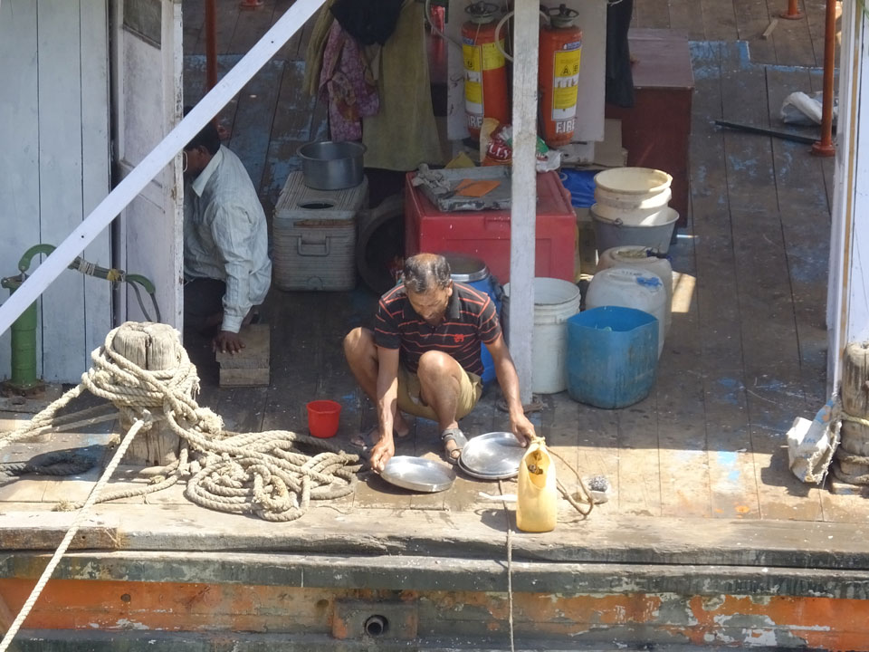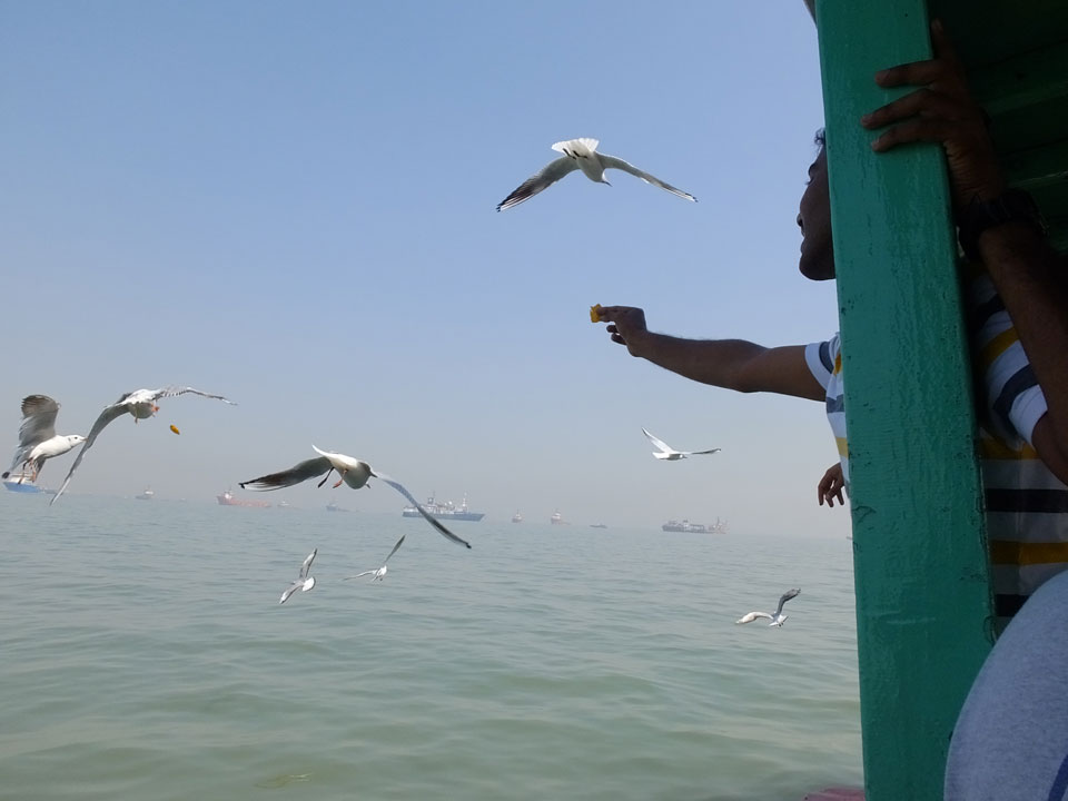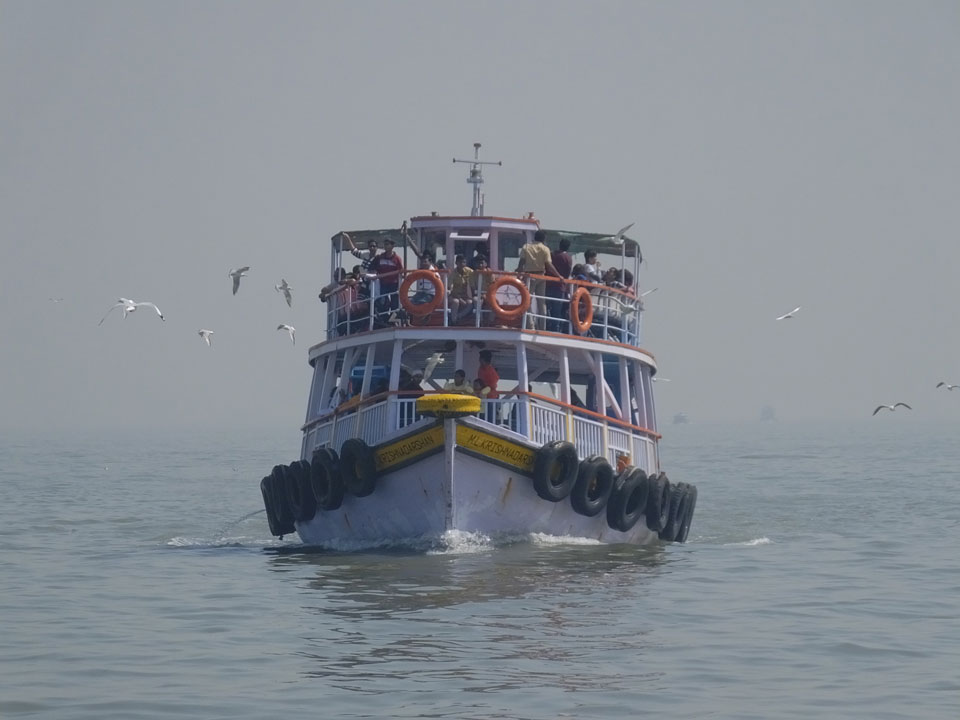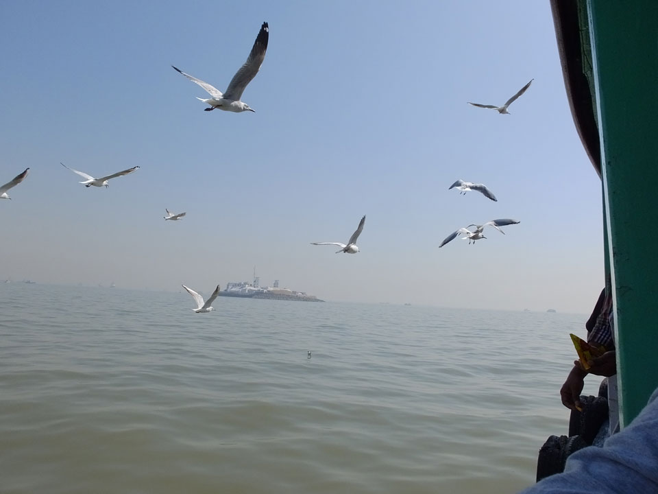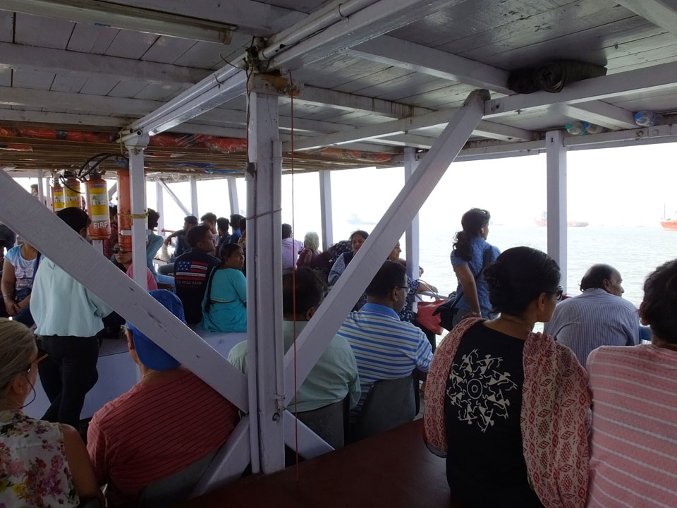 Wir gingen runter zum Gateway of India Monument. Es war war und zum Samstag auch belebt. Für 180 Rupees gab’s das Ticket zum Elephanta Island. Eine kleine Bootsfahrt ist lustig. Ich war müde und schlief in der Brise mal ein paar Minuten. Die Fahrt zur Insel dauerte eine Stunde.