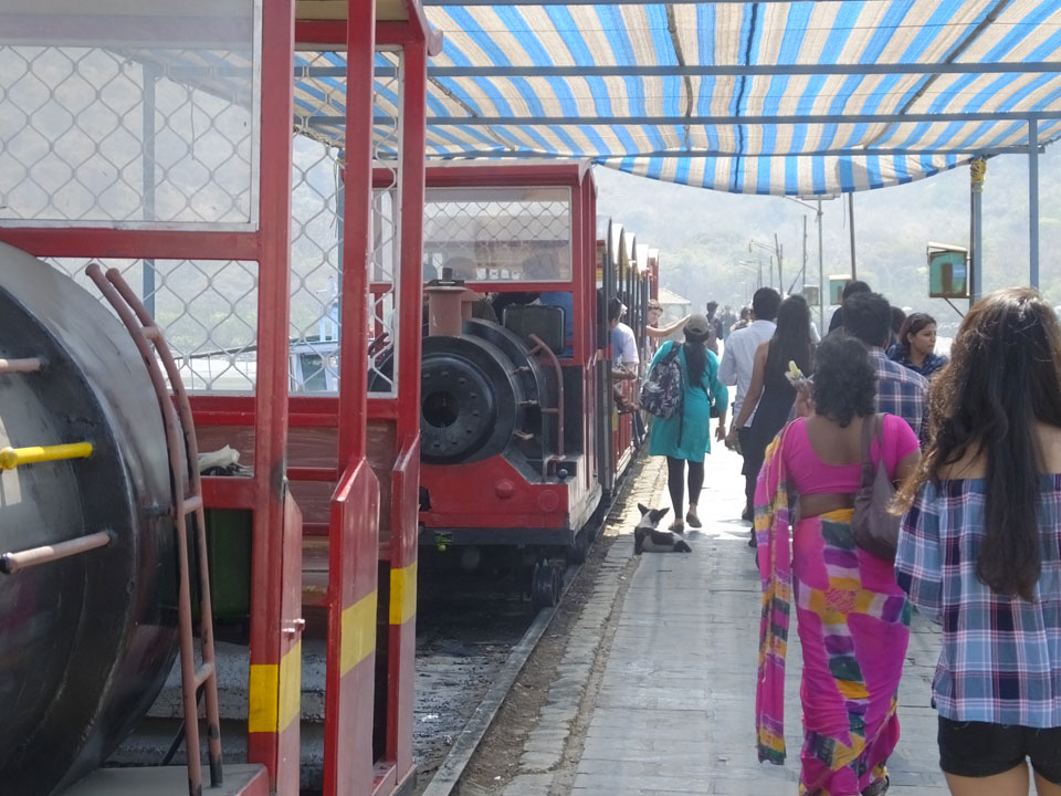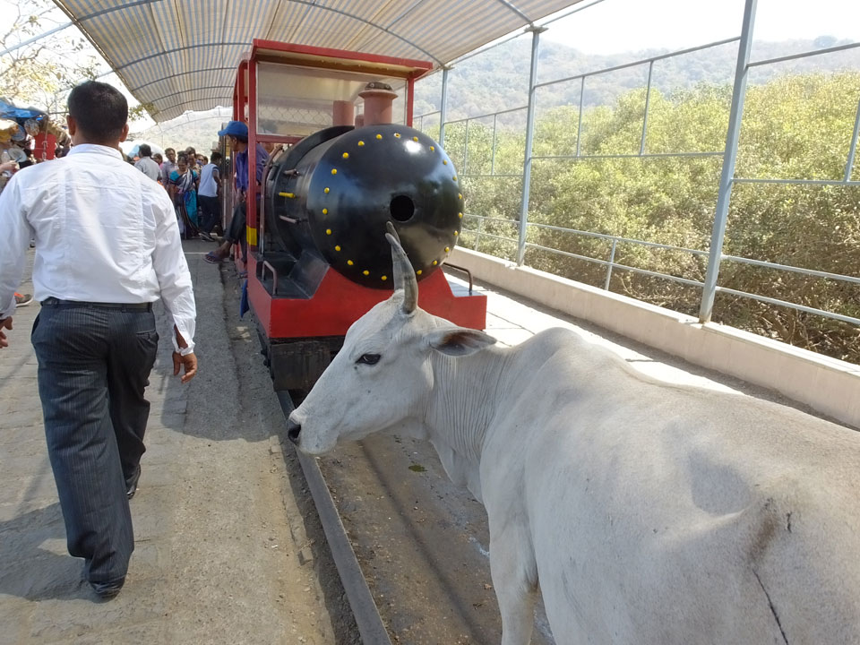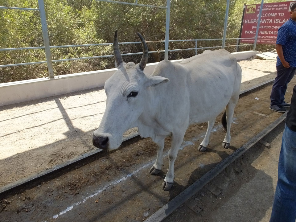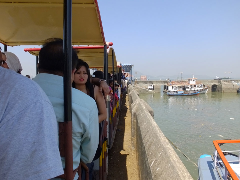 Elephanta Island ist ein beliebtes Ausflugsziel. Am Pier stand eine Art Park-Eisenbahn, die den knappen Kilometer auf die Insiel hin und herzuckelte. Das Ticket für 10 Rupees war gut angelegt.