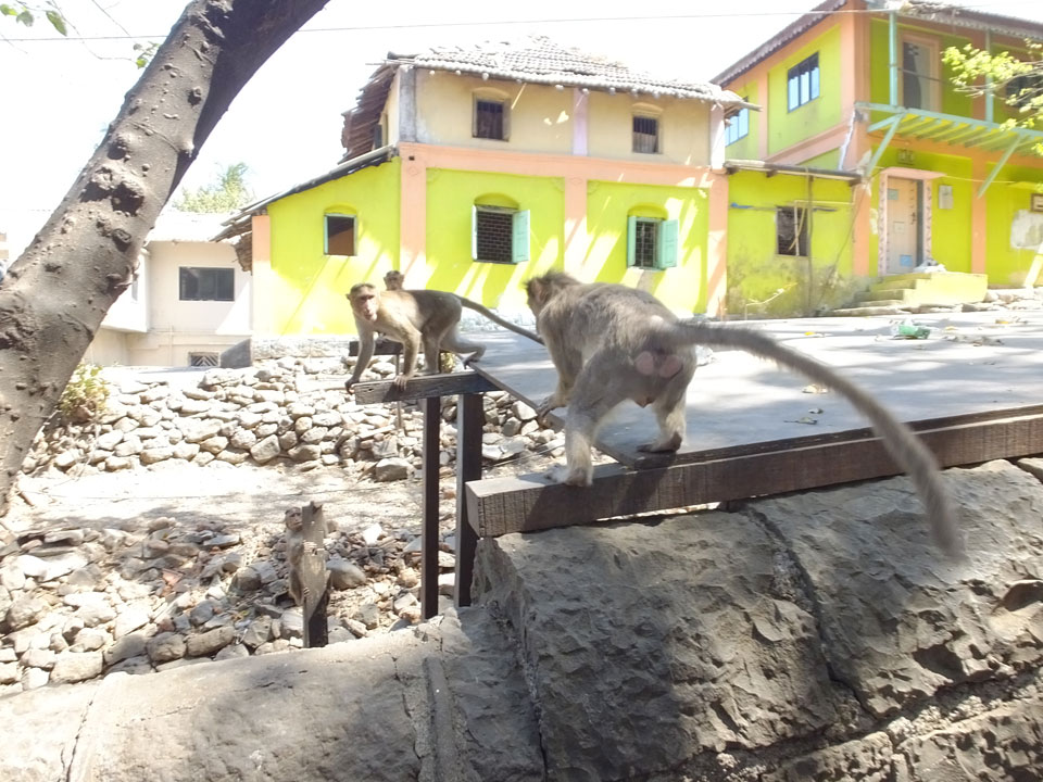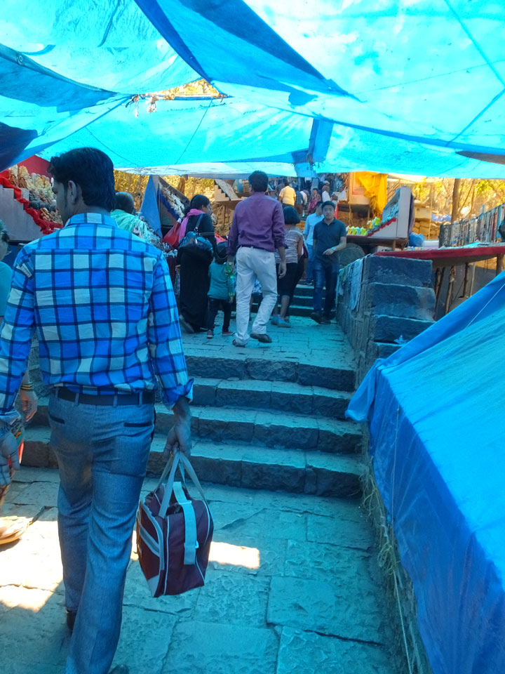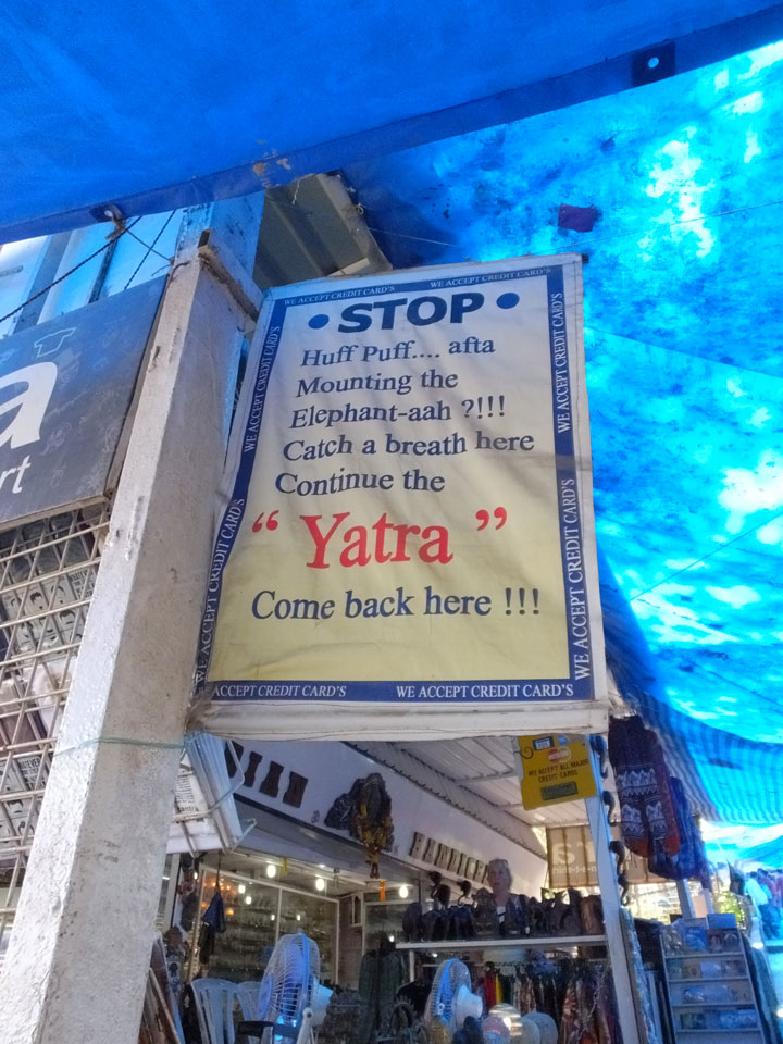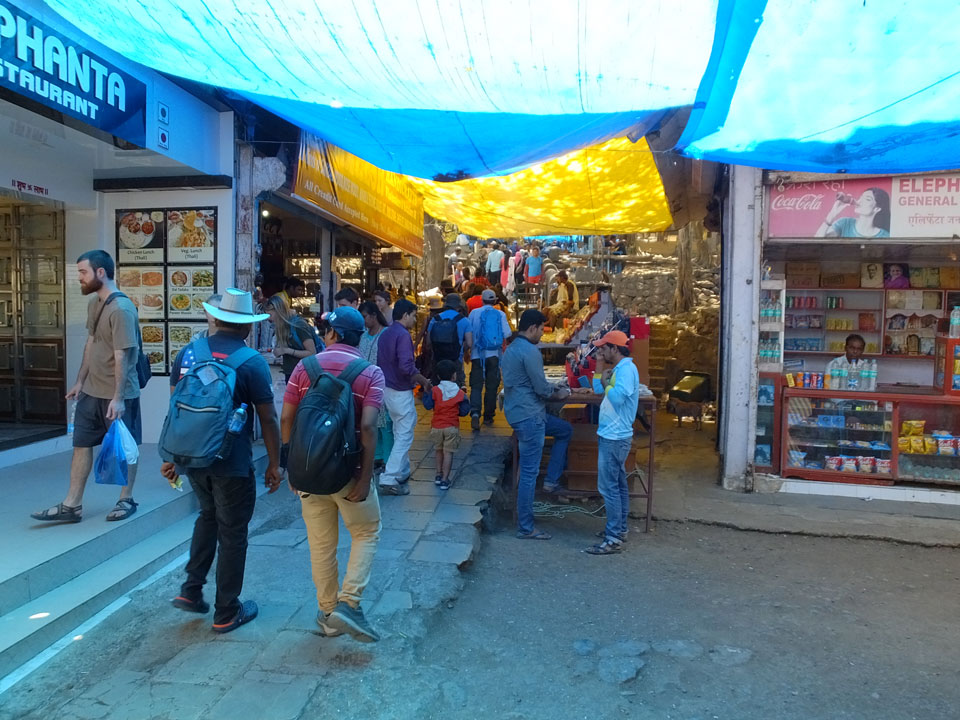 Der Weg hoch zu den Höhlen ging über einige Stufen, gesäumt von unzähligen Souvenirständen. Hier gab es sogar Träger, die einem Auf einem Holzsitz hätten tragen können. Ich sah jedoch niemanden, der das wirklich wahr nahm. Oben an den Höhlen sahen wir den Eintrittspreis – 30 für Indr, 500 für Touristen. Der US-Brasilianer wollte das nicht ausgeben für Höhlen. Ich hätte das schon gezahlt aber alleine will ich das auch nicht. Wir hatten erst mal eine Erfrischung in einem Café und stiegen dann nur auf den Cannon Hill.
