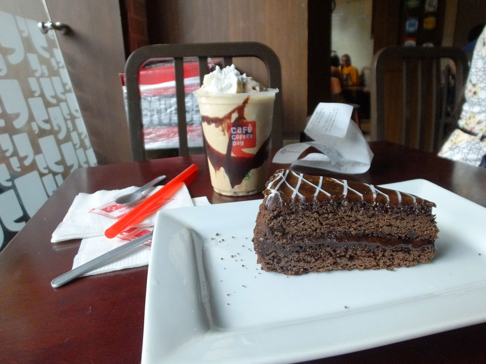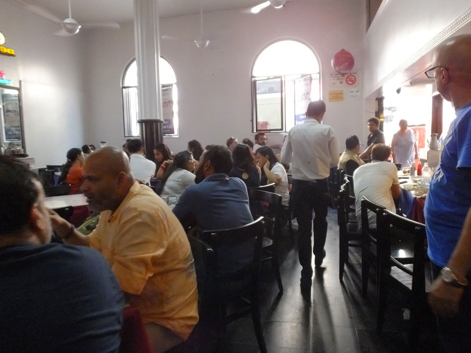 Das Frühstück auf der Dachterasse fiel aus. Wir warteten eine Weile auf neuen Toast aber auch die Kaffeetassen und alles war benutzt. Mit dem US-Brasilaner aus dem Zimmer gingen ging ich in einem Restaurant essen. Ich hatte mal wieder eine Mysore Dosa, die in riesiger Dreiecksform kam.