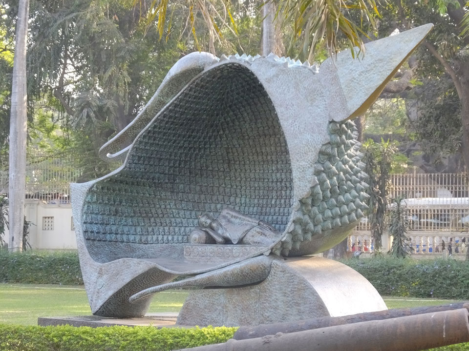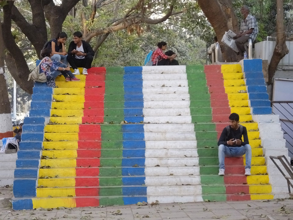 Na gut, ich hatte es gesehen. Weil das ein Touristenmagnet ist, sind dort auch viele Inderinnen und Inder, die einem irgendwas „schenken“ wollen. Ich ging in einem Coffee Café was essen – fast 500 Rupees für eine Stück Schokotorte und süßen kalten Eiskaffee. Ich war zufrieden, schlenderte am Museum weiter Richtung Hostel.