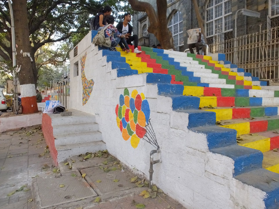 Nach Mitternacht ging ich nochmal alleine los. Trotz Müdigkeit wollte ich etwas vom Nachtleben Bombay’s sehen. Mit dem Taxi zum „145 Kalaghoda“. Der Fahrer hatte doch den Taxometer ausgeschaltet. Ich regte mich auf, denn normalerweise wäre der Weg von 1km für 28 Rupees drin. Ich hatte nur einen 500er, gab 100. Ich solle soviel zahlen, wie ich mag. Da sagte er noch, das nette Menschen 150 gäben. Ich sagte, dass 100 für 1km schon viel zu viel wären und er gab schließlich nach. Die Typen sind ganz schön dreist. Vielleicht nehme ich doch eher Ola oder Uber, doch da muss man immer warten und spart am Ende nur 50 Rupees. Was soll’s.