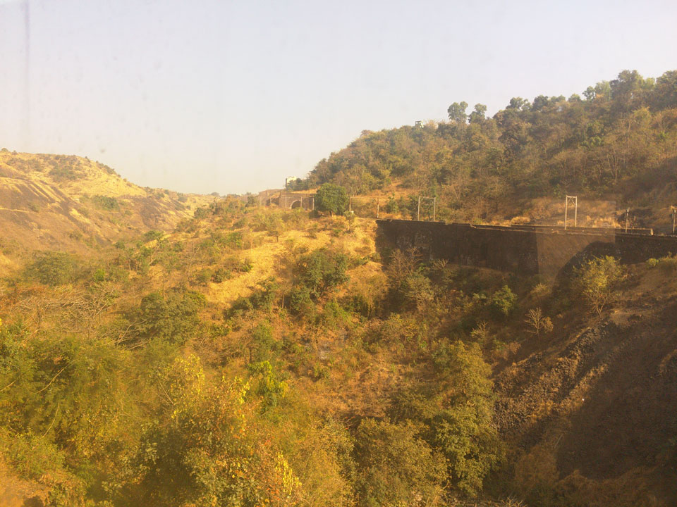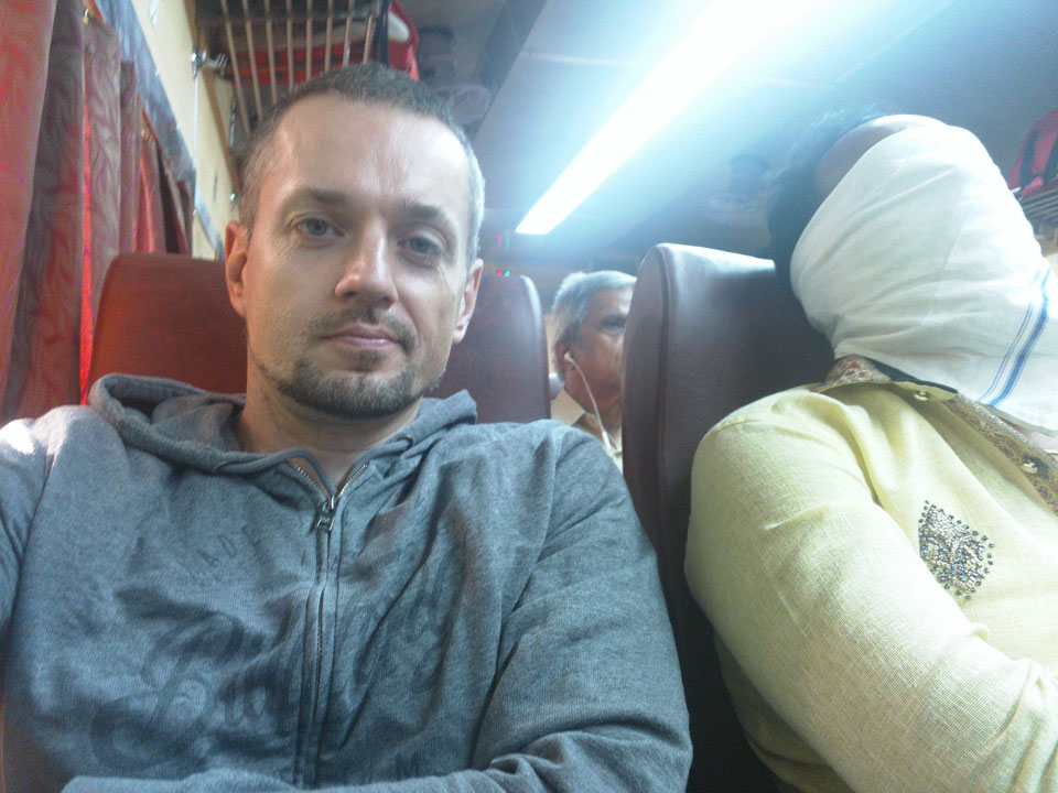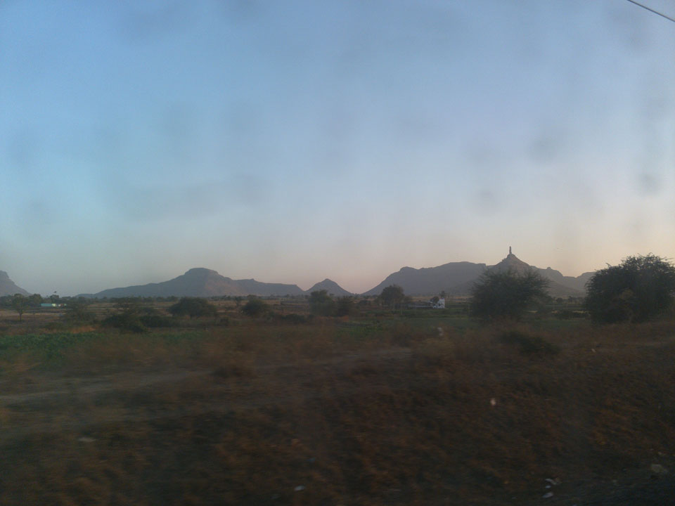 Müde nickte ich während der Fahrt oft weg. Es war doch ganz schön frisch mit der Klimaanlage. Einige Leute husteten. Obwohl ich einen Fensterplatz hatte, gab’s leider keine Aussicht. Kein Glas, sondern eine Steckdose hatte ich da neben mir. Mehr Schlaf, weniger Photos. Die indische Landschaft sieht auch gut aus, was ich so ab und an erkennen konnte.
