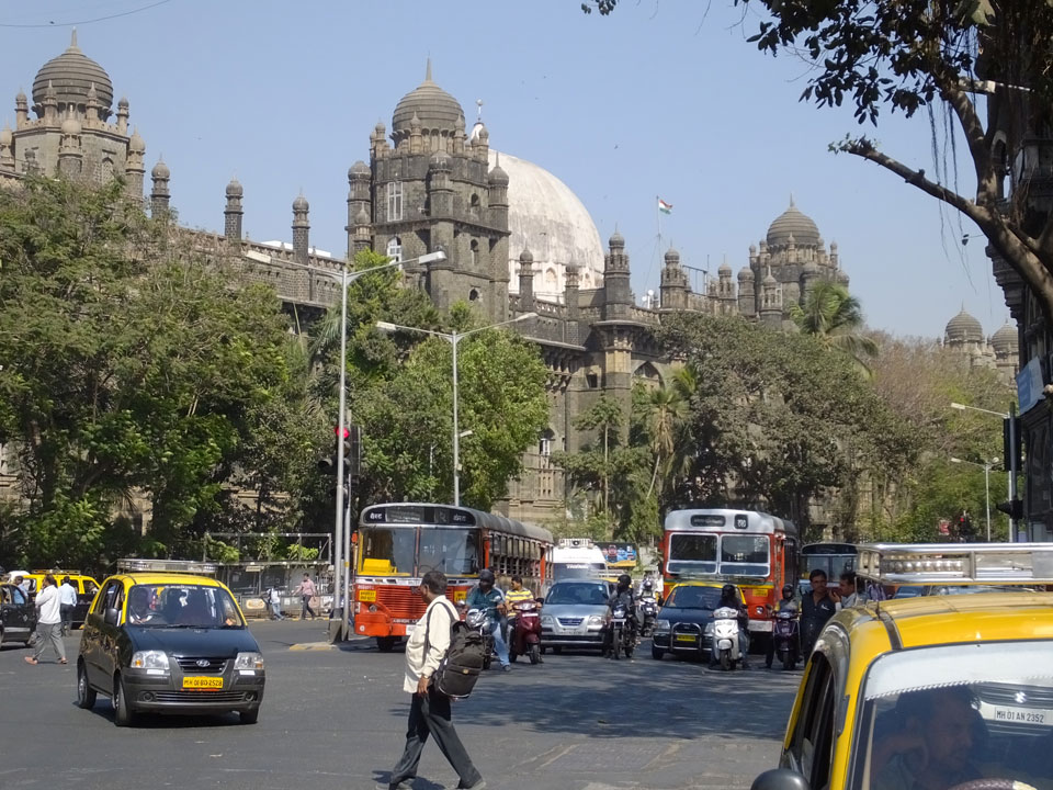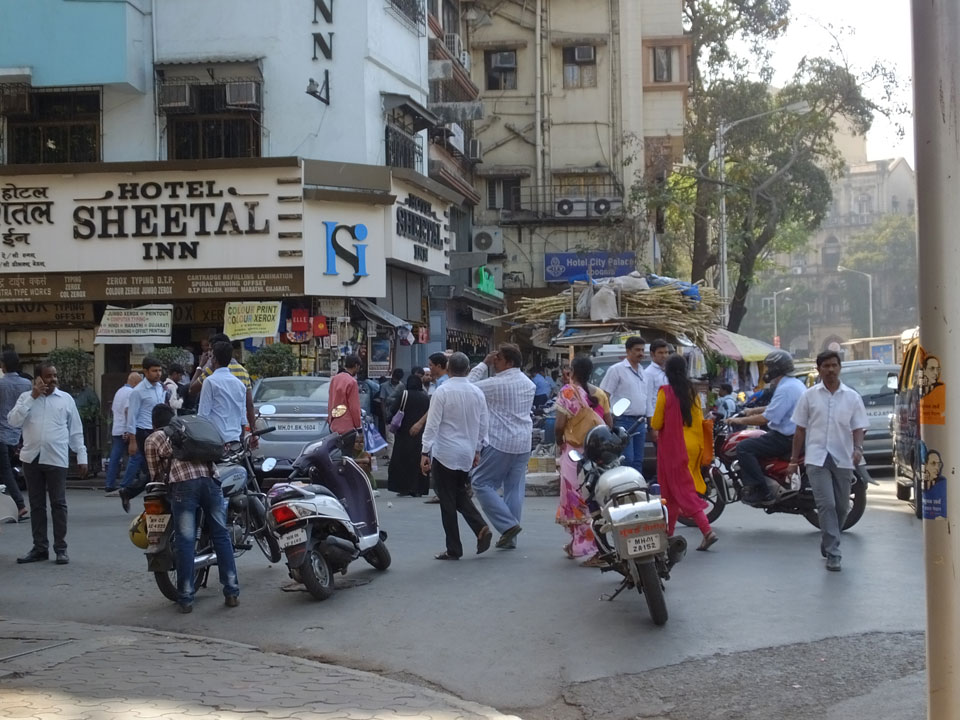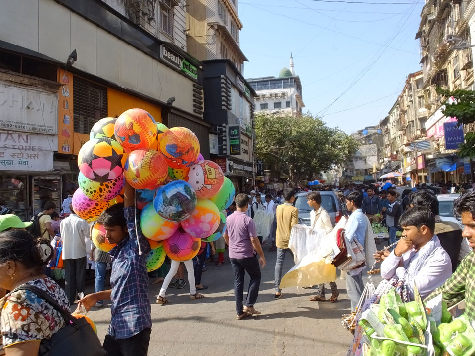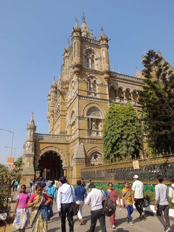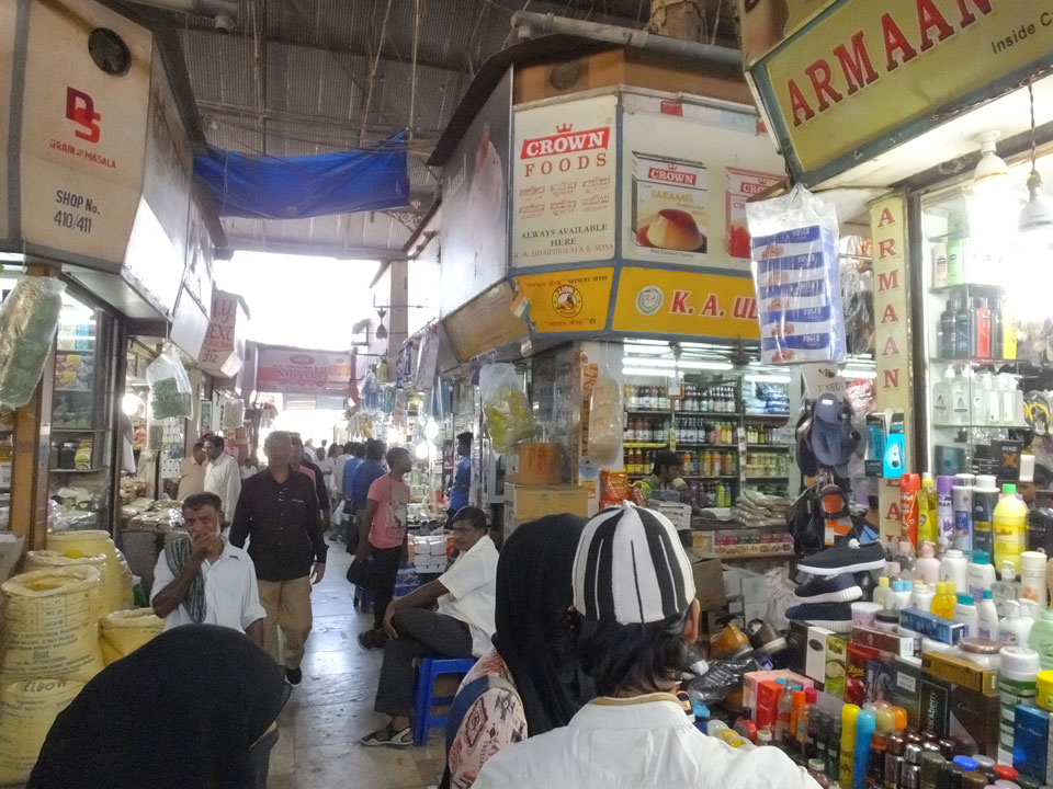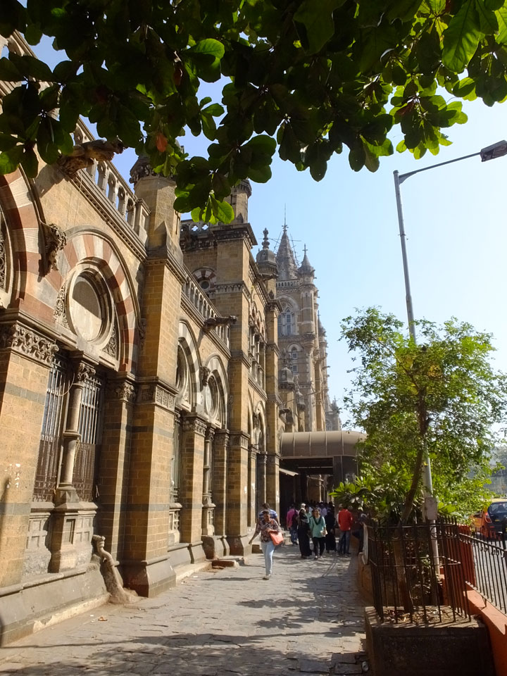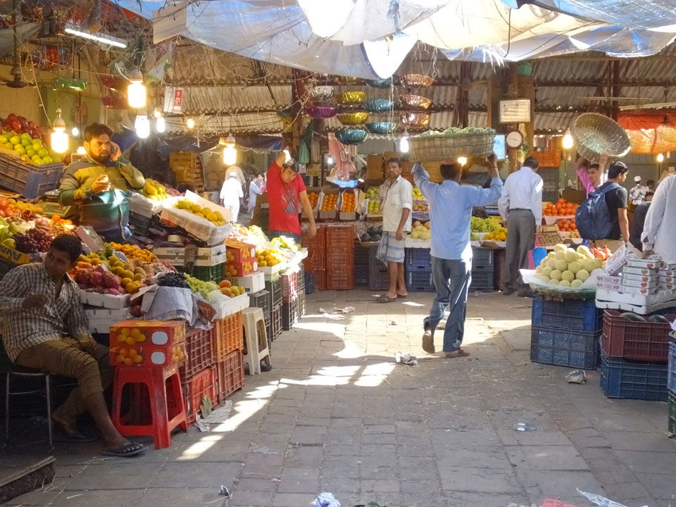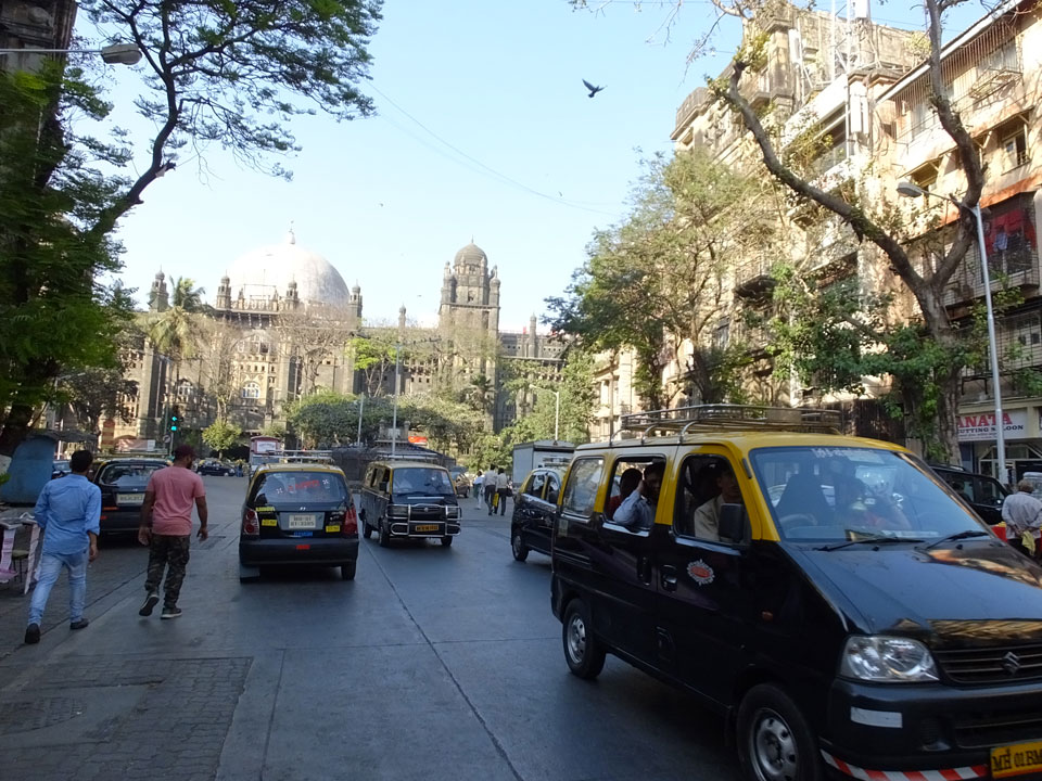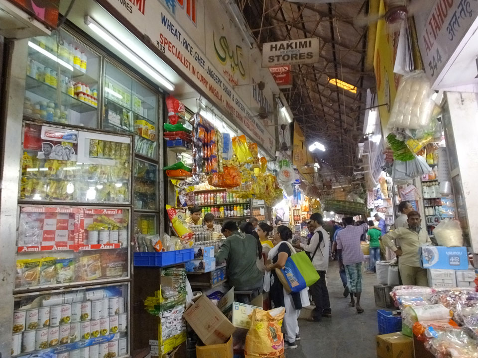 Ich landete also am „Mahatma Jyotiba Phule Mandai“ (Crawford Market) und schaute mich dort etwas um. Der Markt war damals verganenen Montag auch auf meiner Liste, schaffte ihn nicht mehr. Die Atmosphäre dort war chaotisch. Auf der Straße hupten überall Autos und Mopeds. Unzählige Leute schleppten und zogen irgendwelche Kartons umher. Dann im Markt wollten Anwerber mich für irgendwelche „Spices“ begeistern. Ich hatte Null Interesse an Gewürzen, was die Leute aber nicht akzeptierten. Jeder Tourist muss doch Gewürze wollen – ich aber nicht. Die Sache wurde ganz witzig, weil ein junger Typ sich an meine Fersen geheftet hatte und ich im Schlingelkurs um Leute und Stände herumeilte. Ich musste nach ein paar Kringeln in dieser Verfolgungsjagd lachen, er auch.