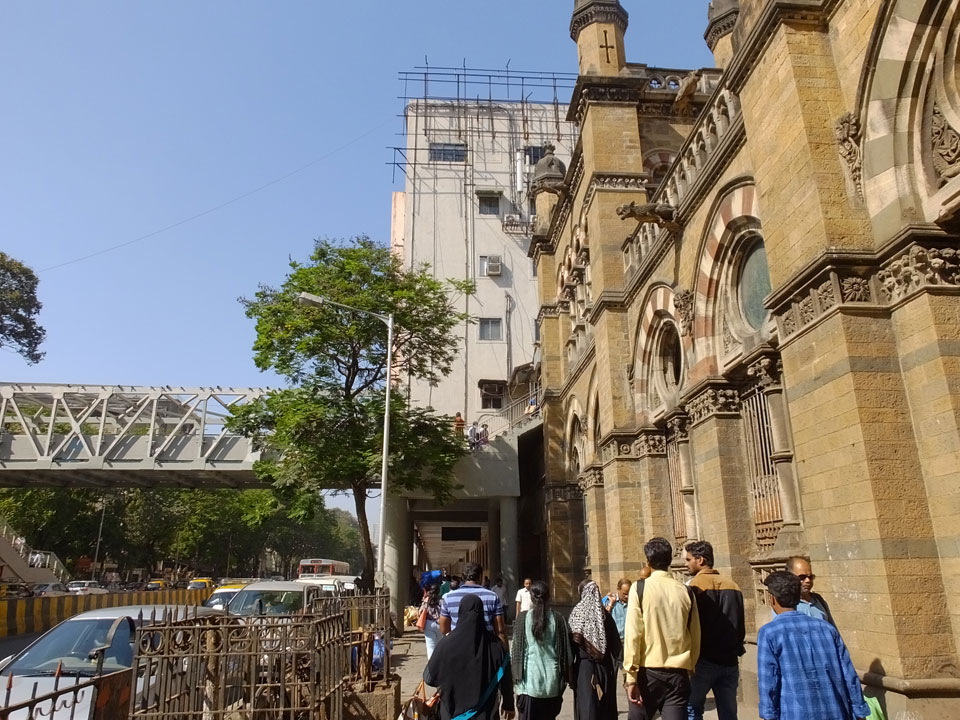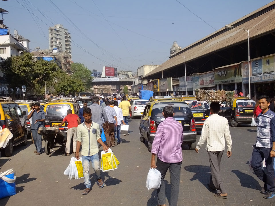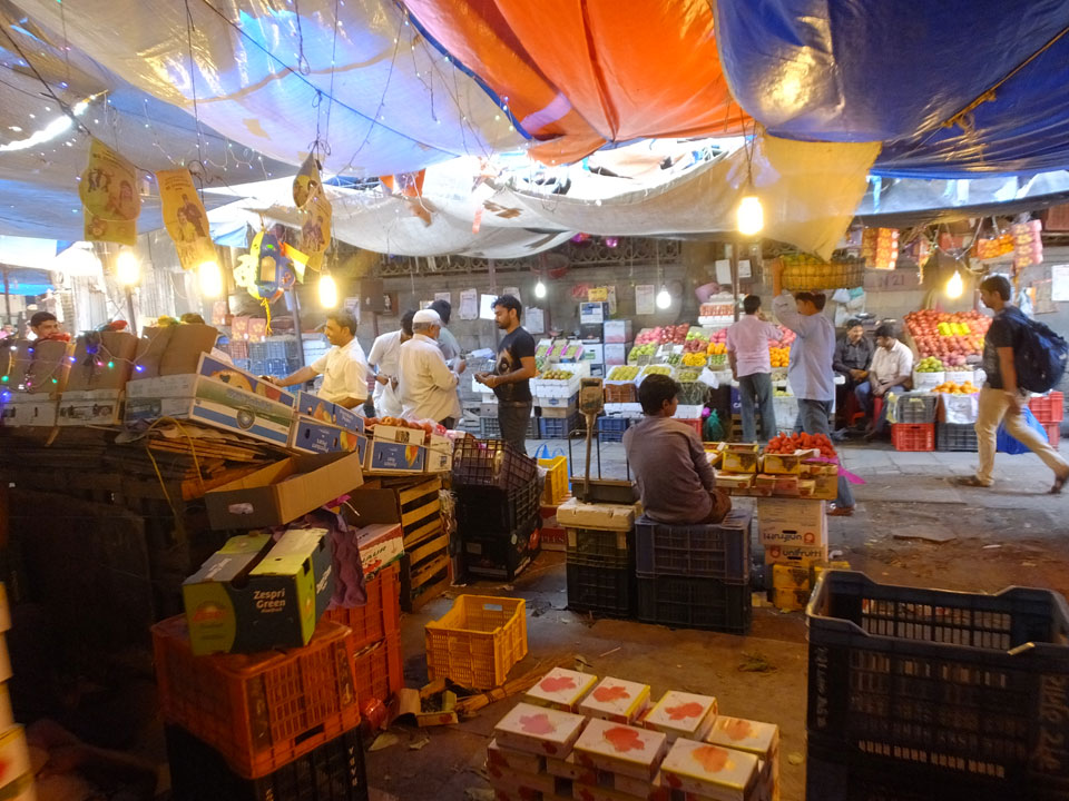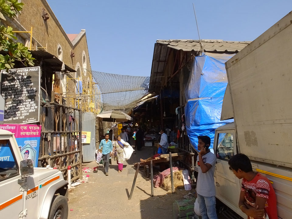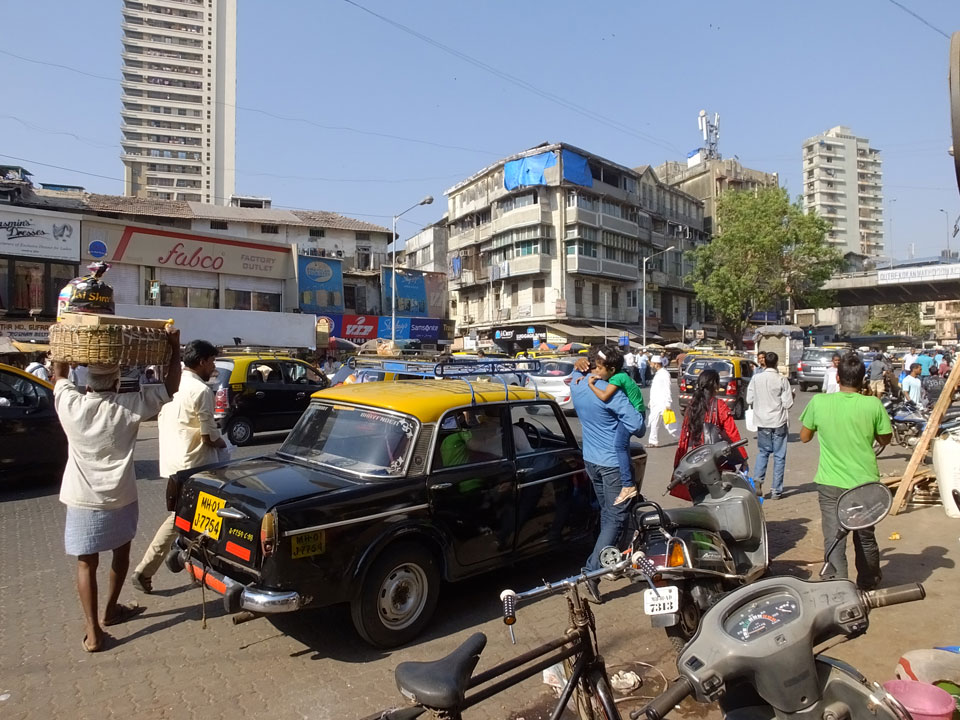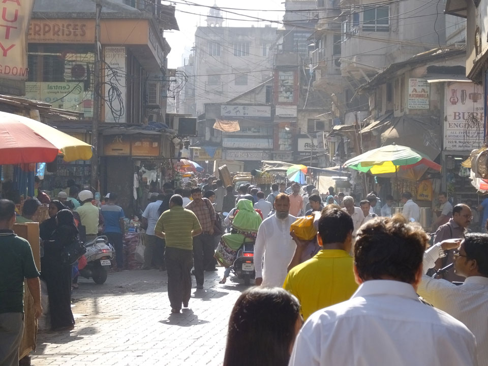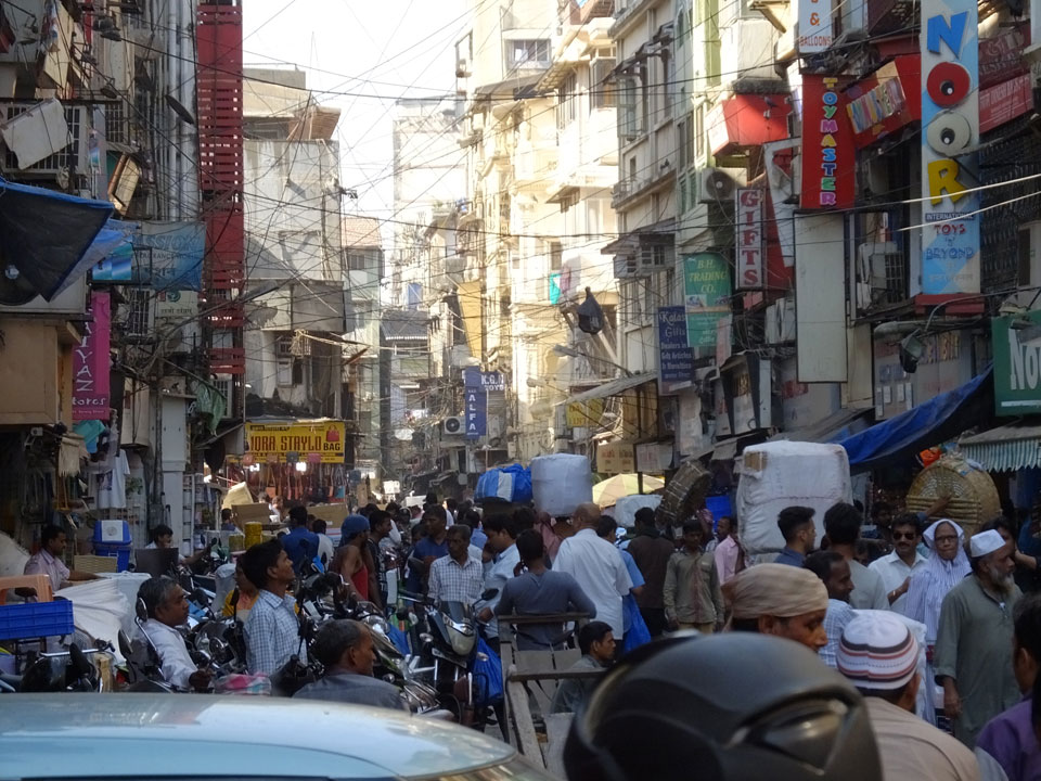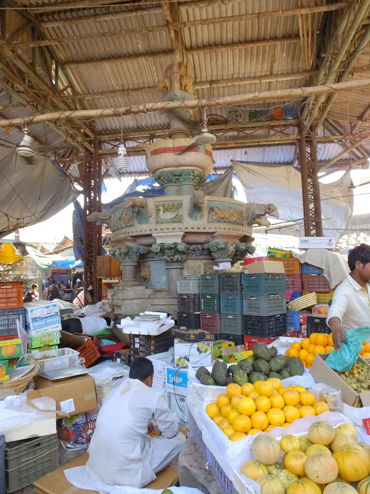 Ich landete also am „Mahatma Jyotiba Phule Mandai“ (Crawford Market) und schaute mich dort etwas um. Der Markt war damals verganenen Montag auch auf meiner Liste, schaffte ihn nicht mehr. Die Atmosphäre dort war chaotisch. Auf der Straße hupten überall Autos und Mopeds. Unzählige Leute schleppten und zogen irgendwelche Kartons umher. Dann im Markt wollten Anwerber mich für irgendwelche „Spices“ begeistern. Ich hatte Null Interesse an Gewürzen, was die Leute aber nicht akzeptierten. Jeder Tourist muss doch Gewürze wollen – ich aber nicht. Die Sache wurde ganz witzig, weil ein junger Typ sich an meine Fersen geheftet hatte und ich im Schlingelkurs um Leute und Stände herumeilte. Ich musste nach ein paar Kringeln in dieser Verfolgungsjagd lachen, er auch.