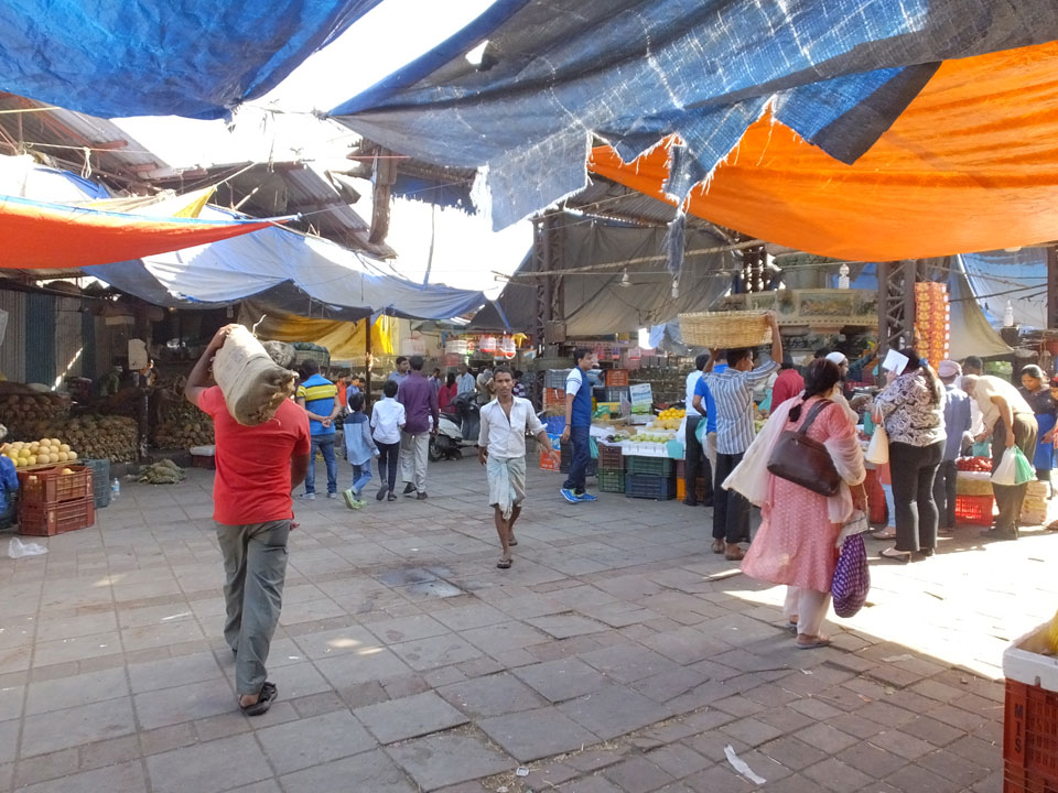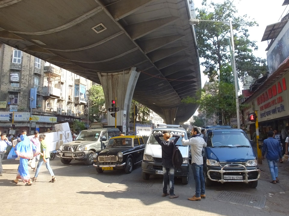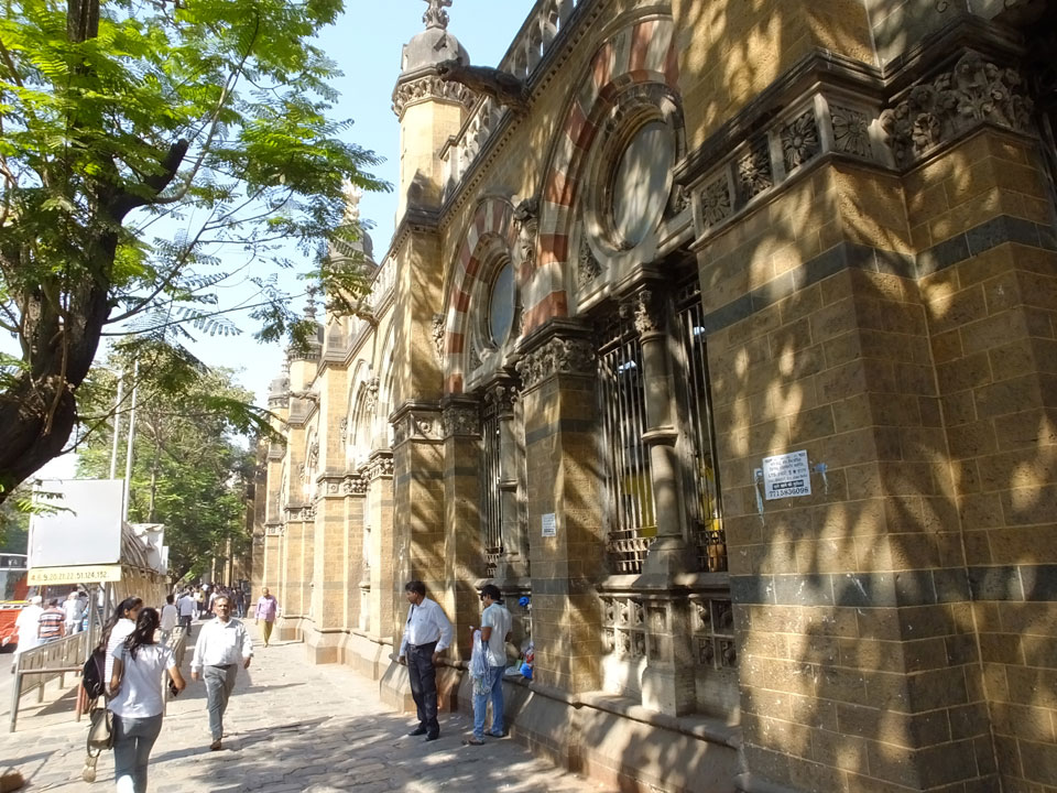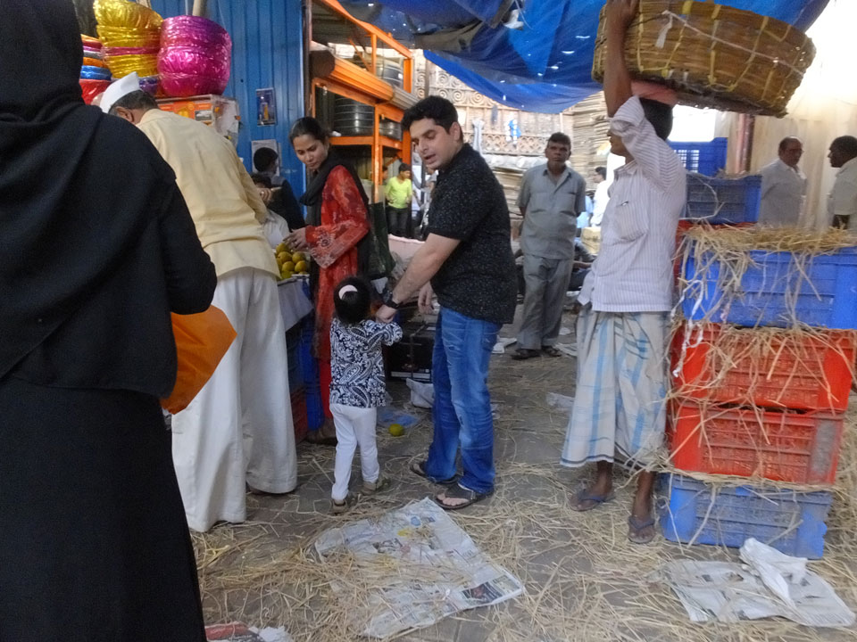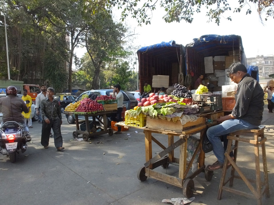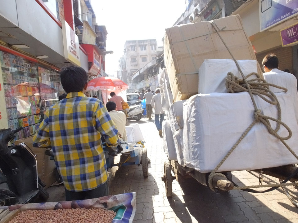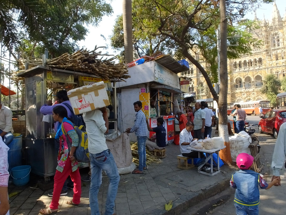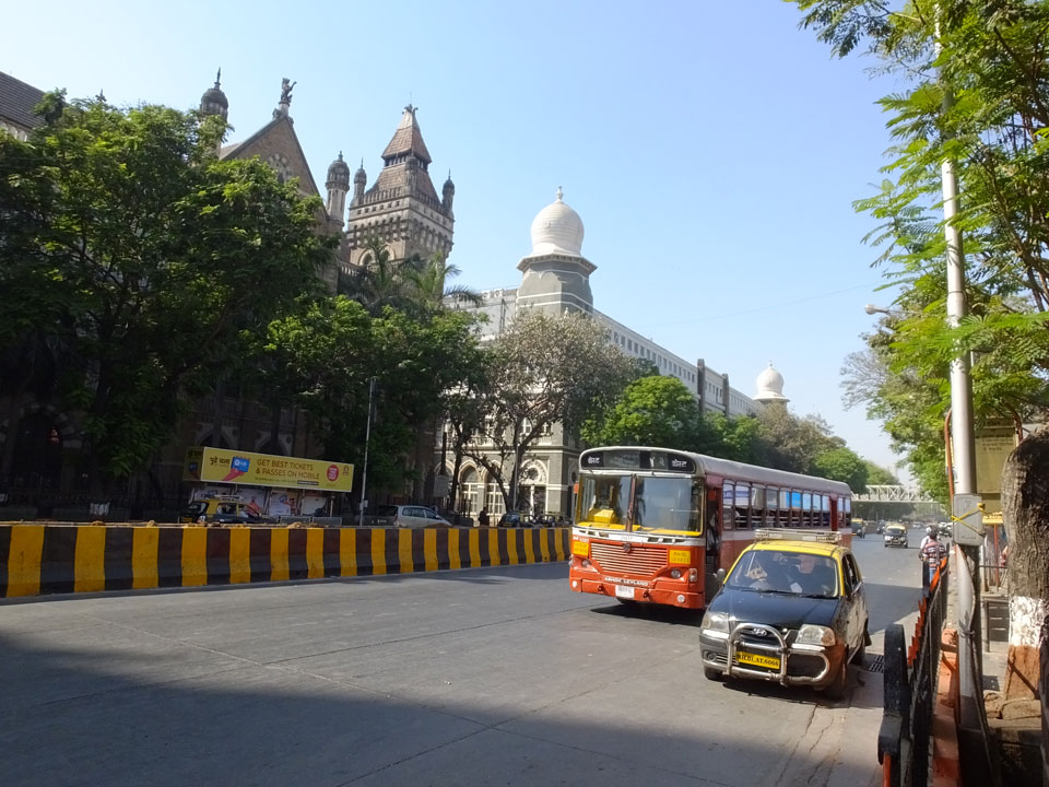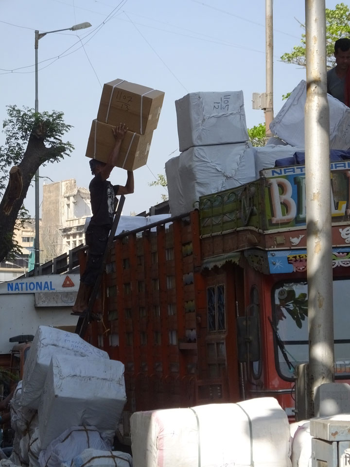 Ich landete also am „Mahatma Jyotiba Phule Mandai“ (Crawford Market) und schaute mich dort etwas um. Der Markt war damals verganenen Montag auch auf meiner Liste, schaffte ihn nicht mehr. Die Atmosphäre dort war chaotisch. Auf der Straße hupten überall Autos und Mopeds. Unzählige Leute schleppten und zogen irgendwelche Kartons umher. Dann im Markt wollten Anwerber mich für irgendwelche „Spices“ begeistern. Ich hatte Null Interesse an Gewürzen, was die Leute aber nicht akzeptierten. Jeder Tourist muss doch Gewürze wollen – ich aber nicht. Die Sache wurde ganz witzig, weil ein junger Typ sich an meine Fersen geheftet hatte und ich im Schlingelkurs um Leute und Stände herumeilte. Ich musste nach ein paar Kringeln in dieser Verfolgungsjagd lachen, er auch.