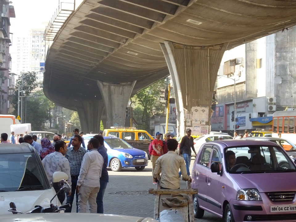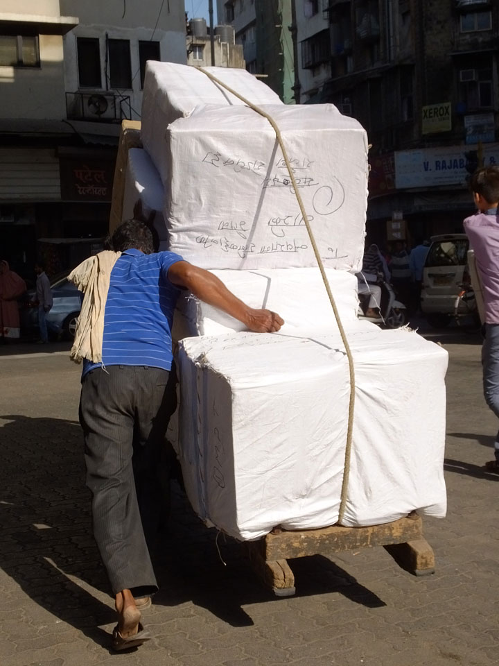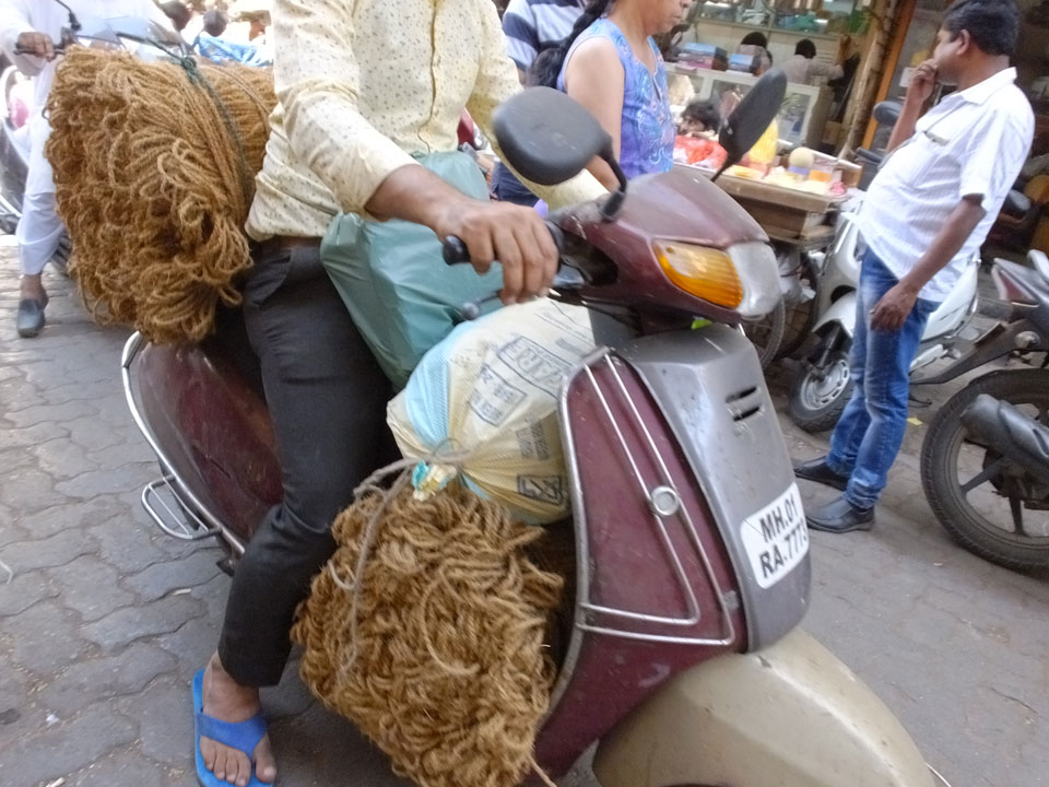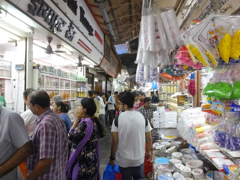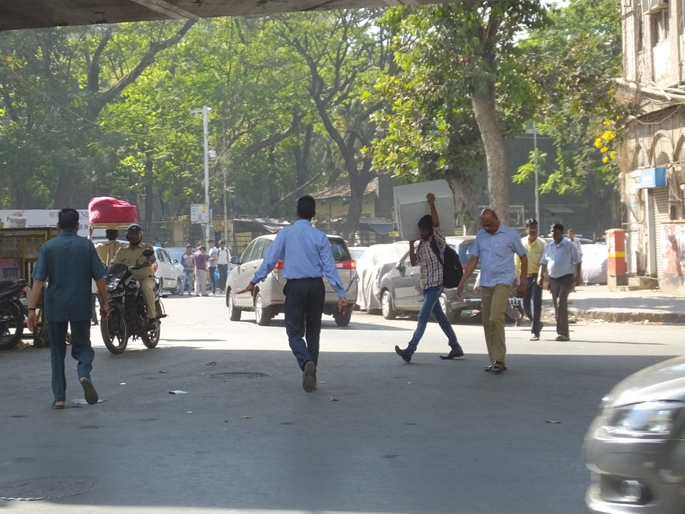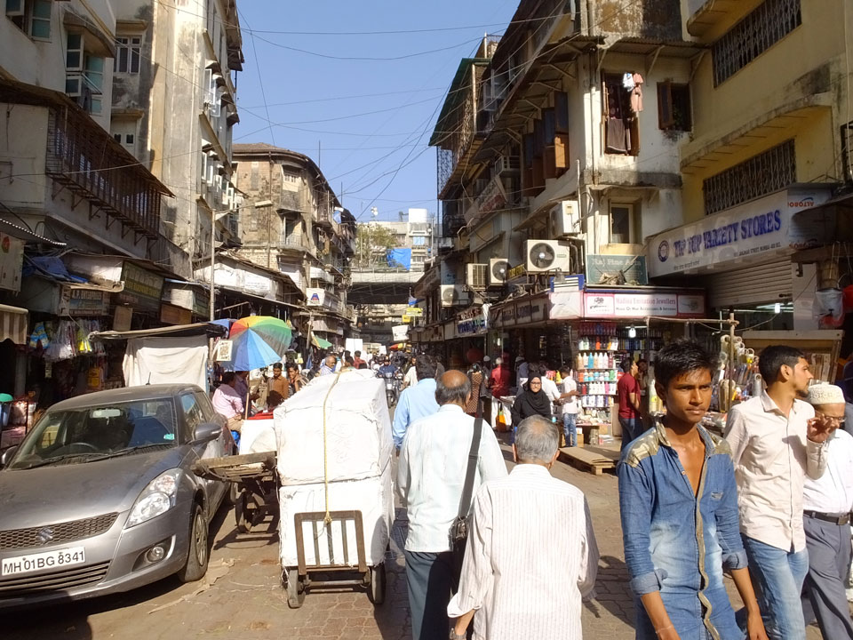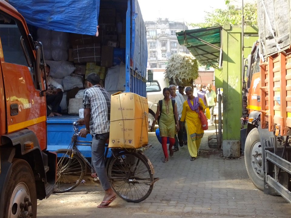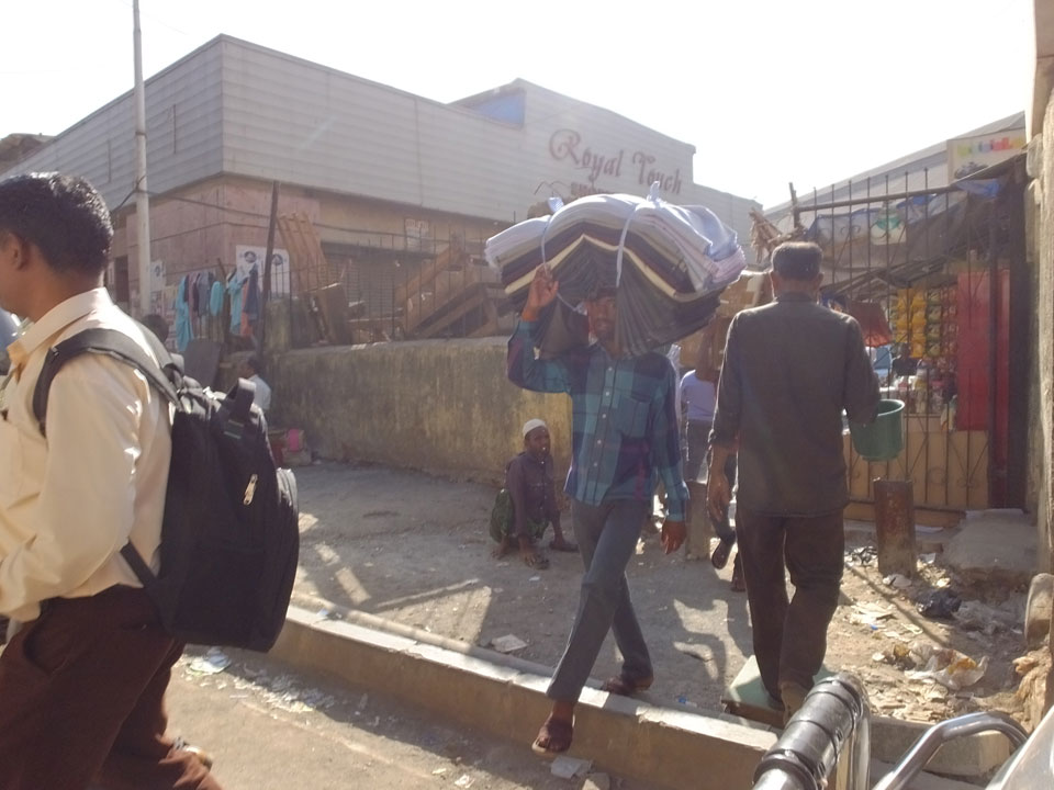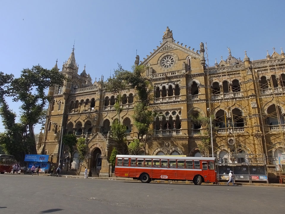 Ich landete also am „Mahatma Jyotiba Phule Mandai“ (Crawford Market) und schaute mich dort etwas um. Der Markt war damals verganenen Montag auch auf meiner Liste, schaffte ihn nicht mehr. Die Atmosphäre dort war chaotisch. Auf der Straße hupten überall Autos und Mopeds. Unzählige Leute schleppten und zogen irgendwelche Kartons umher. Dann im Markt wollten Anwerber mich für irgendwelche „Spices“ begeistern. Ich hatte Null Interesse an Gewürzen, was die Leute aber nicht akzeptierten. Jeder Tourist muss doch Gewürze wollen – ich aber nicht. Die Sache wurde ganz witzig, weil ein junger Typ sich an meine Fersen geheftet hatte und ich im Schlingelkurs um Leute und Stände herumeilte. Ich musste nach ein paar Kringeln in dieser Verfolgungsjagd lachen, er auch.