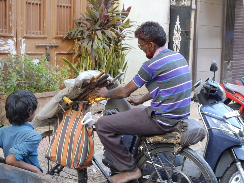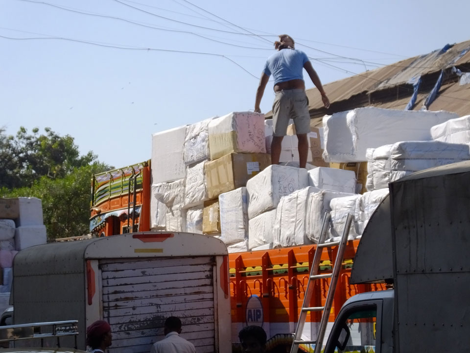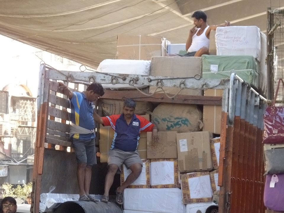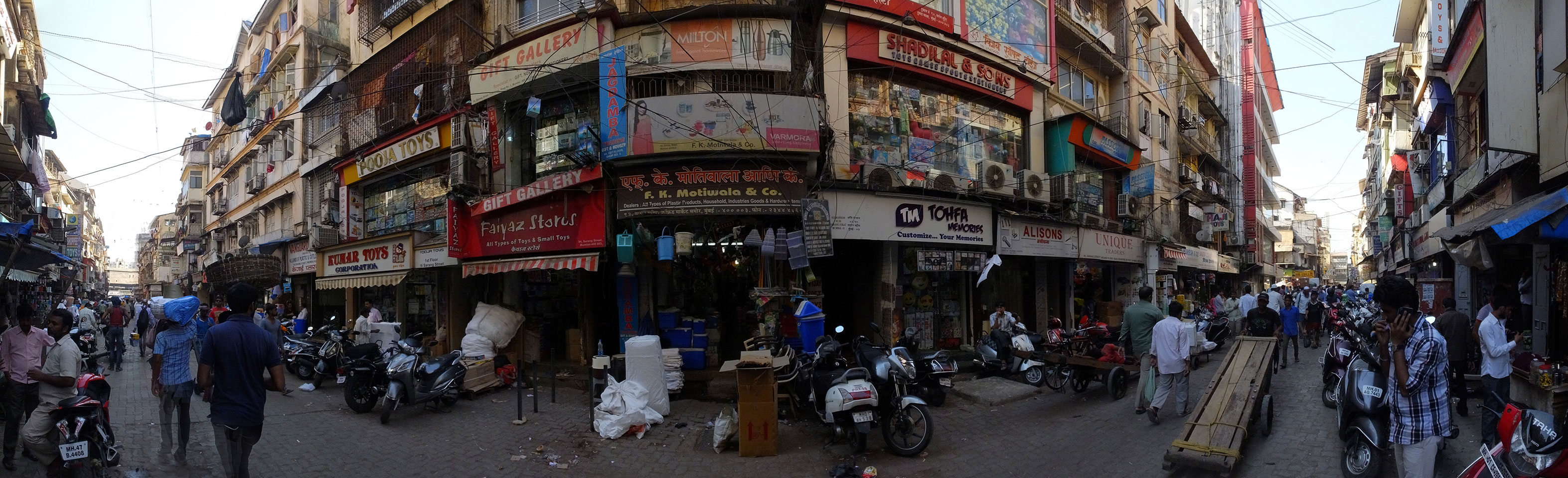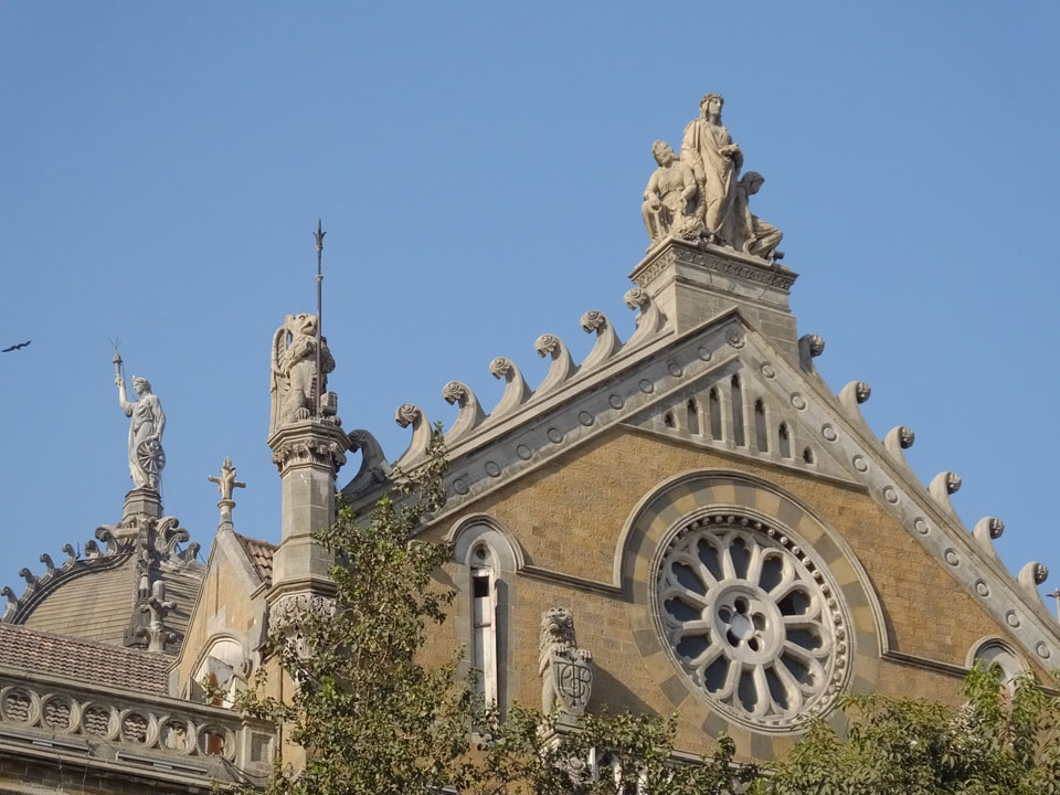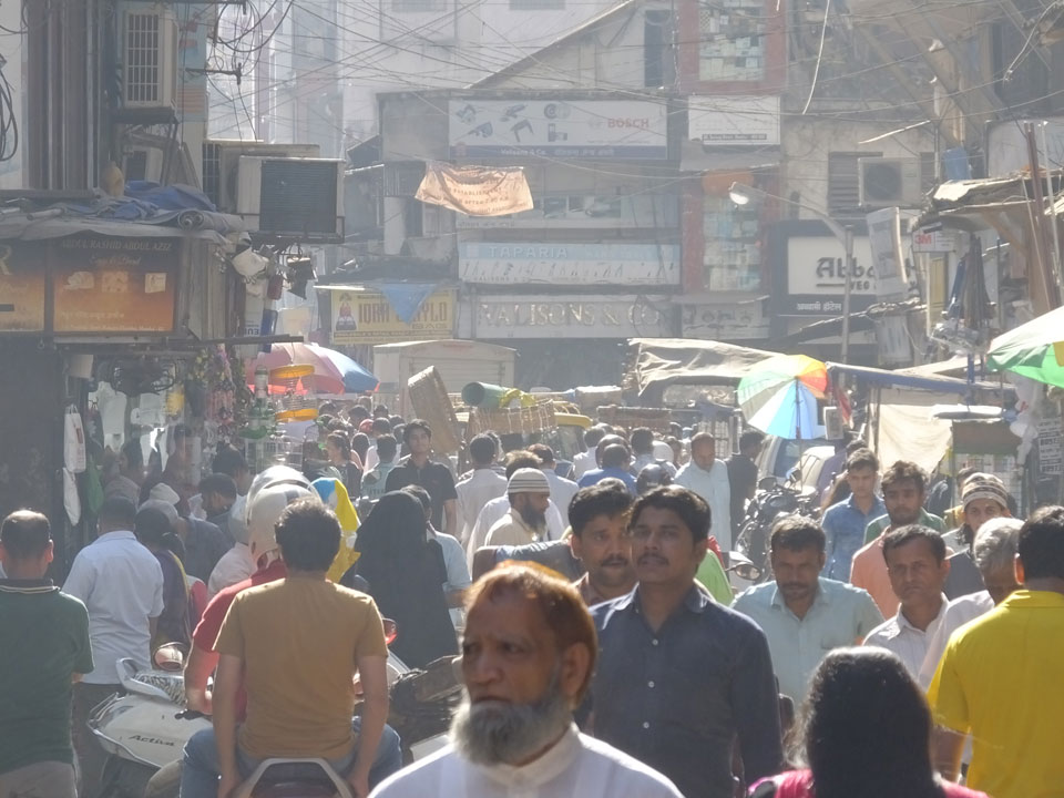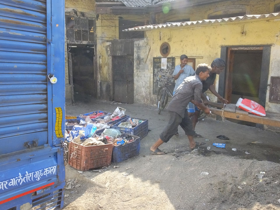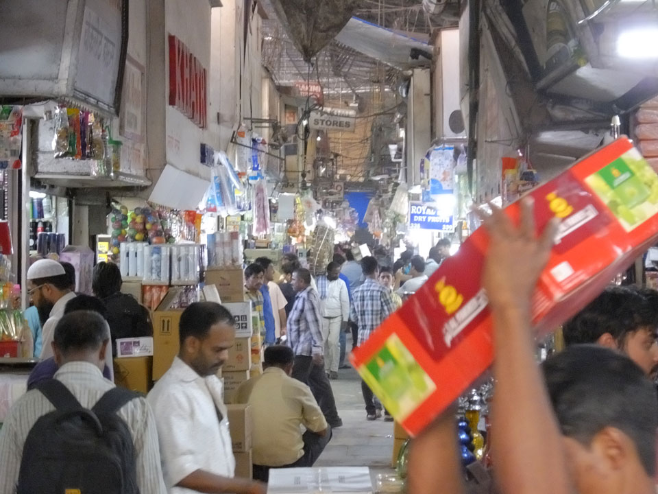 Ich landete also am „Mahatma Jyotiba Phule Mandai“ (Crawford Market) und schaute mich dort etwas um. Der Markt war damals verganenen Montag auch auf meiner Liste, schaffte ihn nicht mehr. Die Atmosphäre dort war chaotisch. Auf der Straße hupten überall Autos und Mopeds. Unzählige Leute schleppten und zogen irgendwelche Kartons umher. Dann im Markt wollten Anwerber mich für irgendwelche „Spices“ begeistern. Ich hatte Null Interesse an Gewürzen, was die Leute aber nicht akzeptierten. Jeder Tourist muss doch Gewürze wollen – ich aber nicht. Die Sache wurde ganz witzig, weil ein junger Typ sich an meine Fersen geheftet hatte und ich im Schlingelkurs um Leute und Stände herumeilte. Ich musste nach ein paar Kringeln in dieser Verfolgungsjagd lachen, er auch.