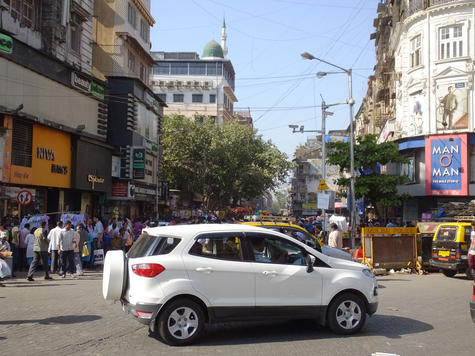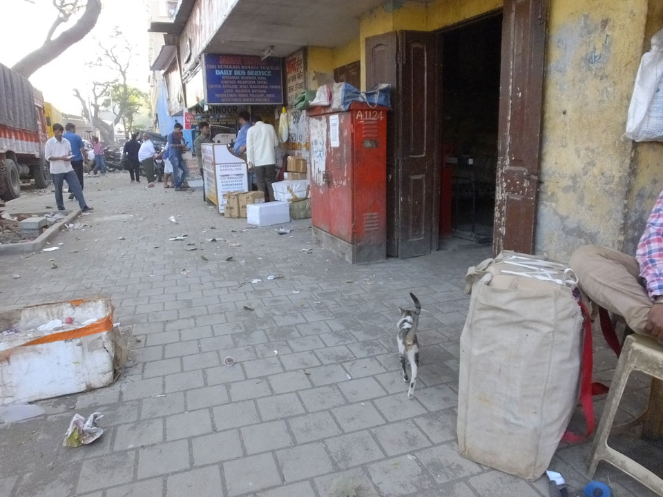 Wir quatschten etwas, er hatte nur 9 Tage für Indien. Ich ging los, wusste nicht so richtig wohin und machte zu Crawford Market, obwohl ich eher eine Mall als Ziel hatte. Auf dem Weg sprach mich ein Inder von hinten auf meine Photos an, wollte gleich die Hand geben – ich war irritiert und lehnte dankend ab, verstand ihn auch nicht, was er wollte. Die Leute sind freundlich, doch heute hatte ich wohl weniger Nerven.