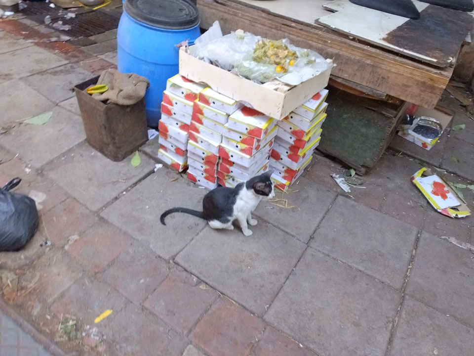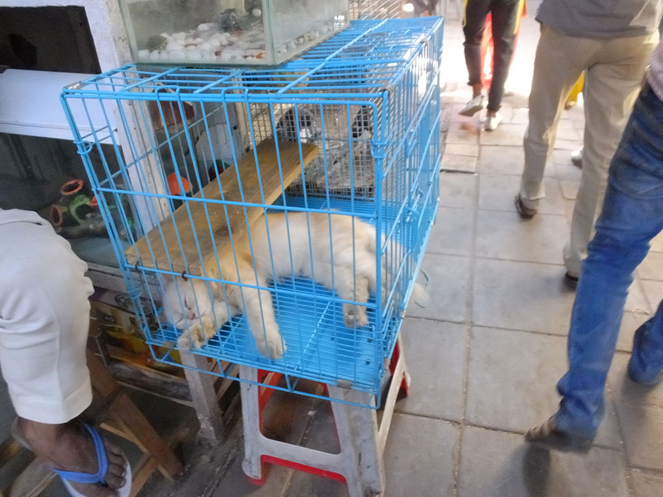 Ich schaute mir die Käfige voller Vögel an. Traurig, der Tiermarkt, wie das so ist. Katzen, Hunde – viele Haustiere im Angebot. Den Spice-Market konnte man eigentlich vergessen. Ich weiß nicht, aber das musste extra für die Touristen 1-2 Stände sein, falls es das war. Dort standen dann auch schon Touristen, die im Begriff waren, Beutel voller Chilli oder Currypulver zu kaufen. Tja, ich eilte davon, trotz verzweifelten Rufen der Verkäufer. Auf dem Rückweg suchte ich den Ausgang. Mein einstiger Verfolger sah mich wieder zeigte mir die Richtung zum Ausgang, und da ging ich doch in eine andere Richtung, nur aus Spaß, damit ich ihn wieder abschütteln konnte.