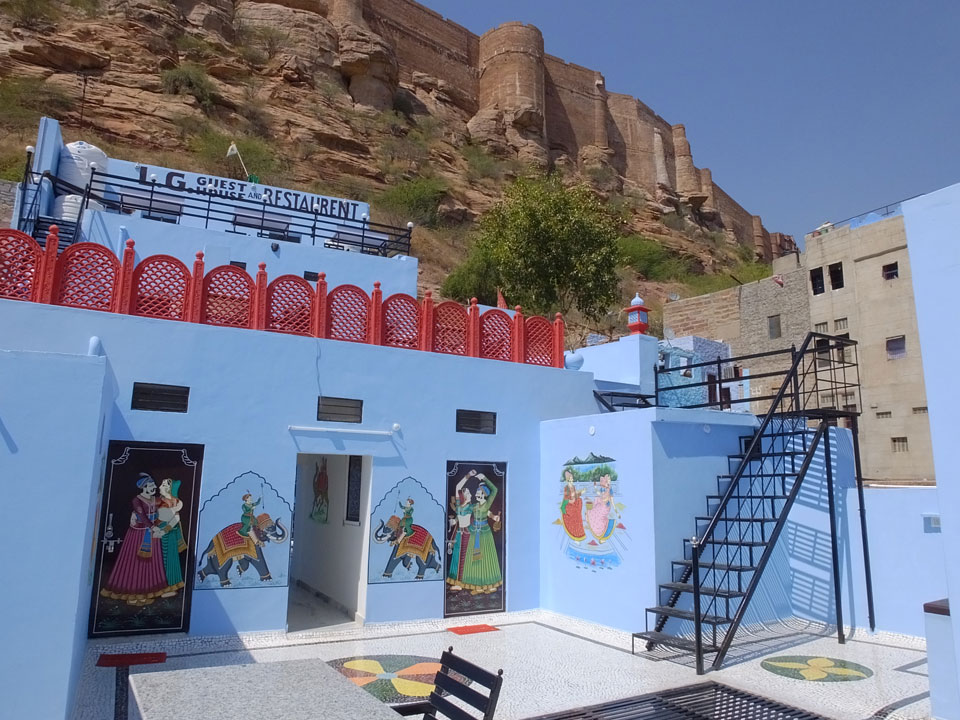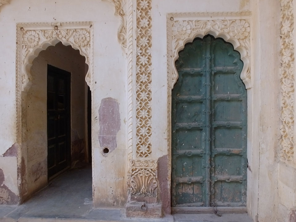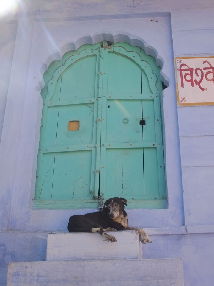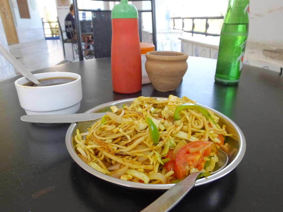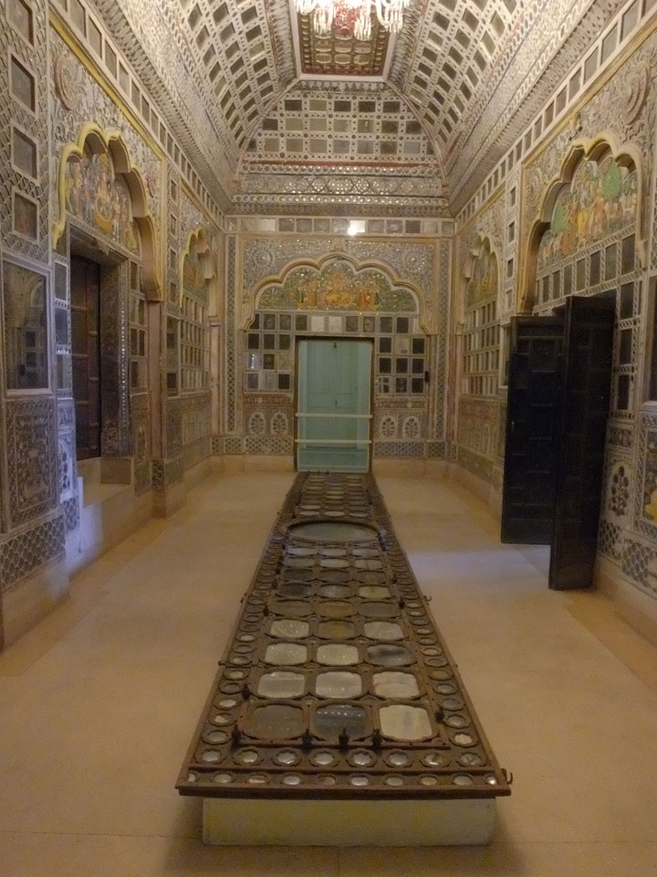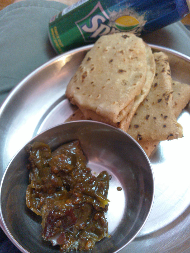 Auf booking.com war die GPS Position gleich am Eingang angezeigt. Nur da war kein Ganesh Gästehaus. Ein paar Jugendliche, die zu dieser Stunde noch herum standen, riefen mir den Weg. Nur Kühe und Hunde, die im Müll nach Fressbarem suchten, fand ich dann in den Gassen der Festung. Jaisalmer ist eine lebendige Festung. Hier leben also wirklich Leute, die nur zur Zeit alle schliefen. Als dann Hunde stark bellten kam einer an’s Fenster und wies mir den letzten Abschnitt, den ich ohne seine Hilfe nicht gefunden hätte. In der Gasse kam mir ein Mann mit etwas zerfleddertem Unterhemd entgegen. Es war der Gästehausbesitzer, der meinen Anruf erhalten hatte. Seinen Rückruf hatte ich nicht erhalten aber gut. Ich hatte mein Zimmer, er machte kurz seinen Laden für ein paar Getränke auf und brachte mir noch Chapati mit Pickles. Damit hatte ich was im Magen, war vollauf zufrieden und konnte um 3 Uhr endlich einschlafen.