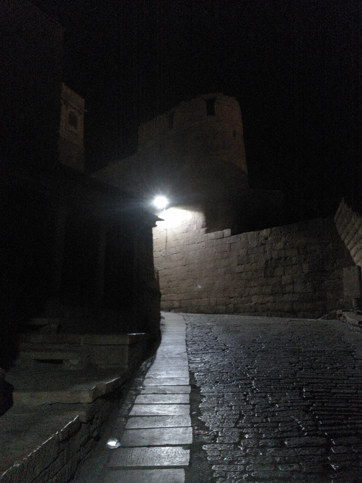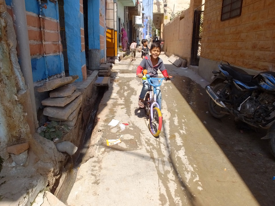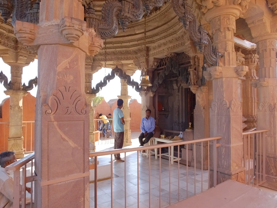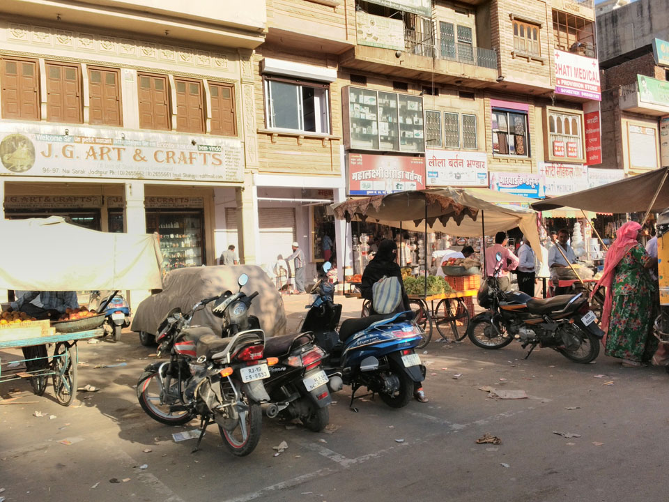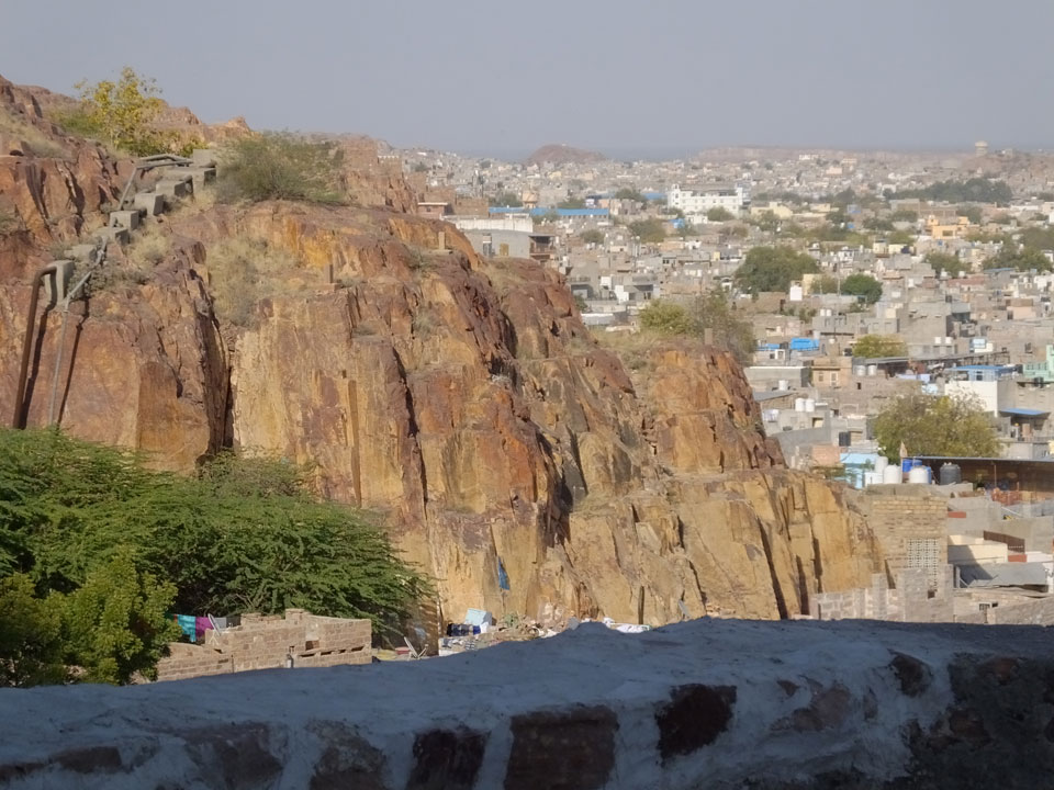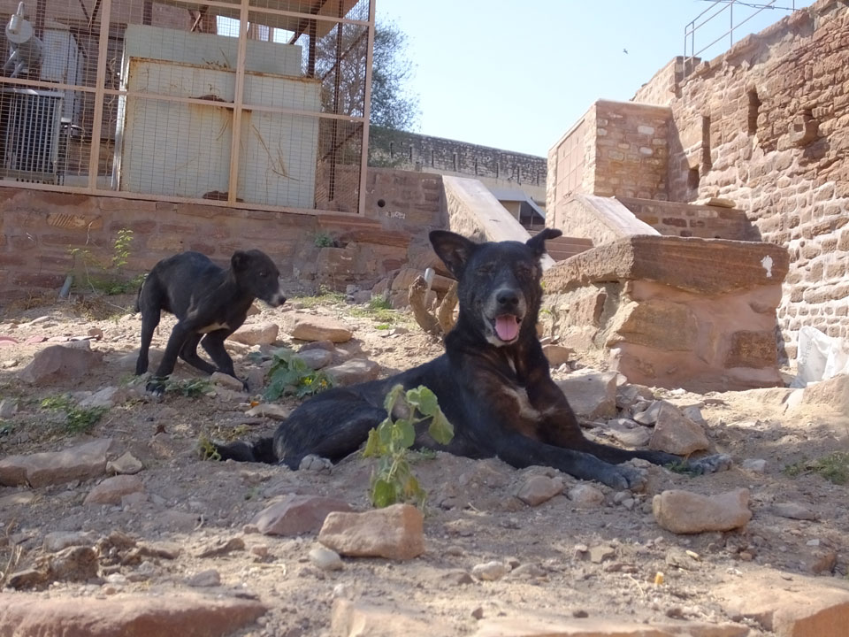 Auf booking.com war die GPS Position gleich am Eingang angezeigt. Nur da war kein Ganesh Gästehaus. Ein paar Jugendliche, die zu dieser Stunde noch herum standen, riefen mir den Weg. Nur Kühe und Hunde, die im Müll nach Fressbarem suchten, fand ich dann in den Gassen der Festung. Jaisalmer ist eine lebendige Festung. Hier leben also wirklich Leute, die nur zur Zeit alle schliefen. Als dann Hunde stark bellten kam einer an’s Fenster und wies mir den letzten Abschnitt, den ich ohne seine Hilfe nicht gefunden hätte. In der Gasse kam mir ein Mann mit etwas zerfleddertem Unterhemd entgegen. Es war der Gästehausbesitzer, der meinen Anruf erhalten hatte. Seinen Rückruf hatte ich nicht erhalten aber gut. Ich hatte mein Zimmer, er machte kurz seinen Laden für ein paar Getränke auf und brachte mir noch Chapati mit Pickles. Damit hatte ich was im Magen, war vollauf zufrieden und konnte um 3 Uhr endlich einschlafen.