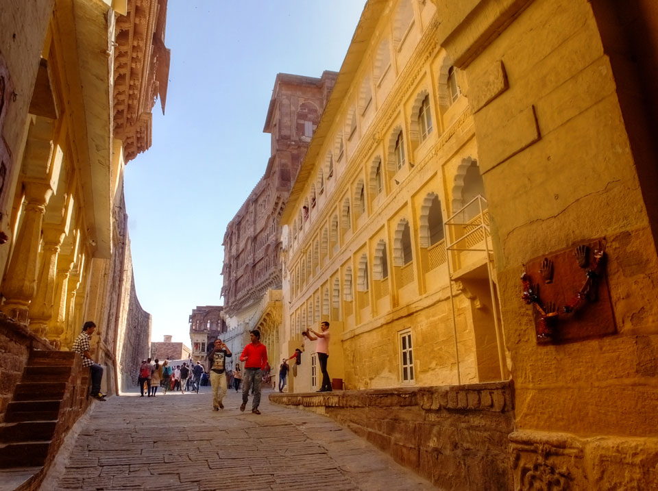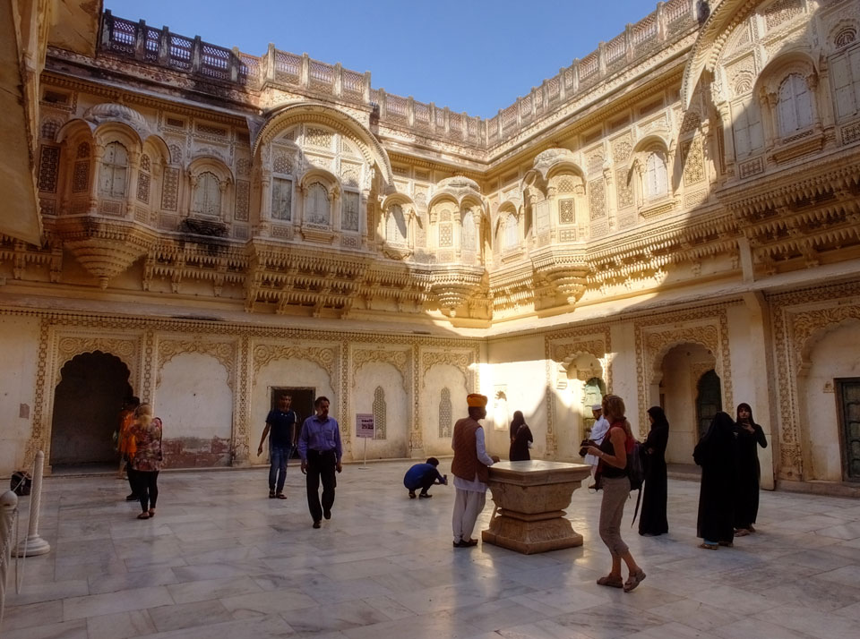 In der 1½h knipste ich unzählige Bilder. Zwei Mal verpasste ich, wie ein Turban vor einer Touristengruppe gewickelt wurde. Auch sonst war meine Stimmung nicht so gut, was am Essen oder Eintritt lag. So verweigerte ich heute mal einige Selfie-Gesuche. Auf besonders hartnäckigen Leuten lachte ich nur halb in die Camera. Mit strengem Blick trauten sich am Ende weniger Leute, mich zu fragen. Ich hatte halt auch zu wenig Zeit, sah dennoch das meiste.