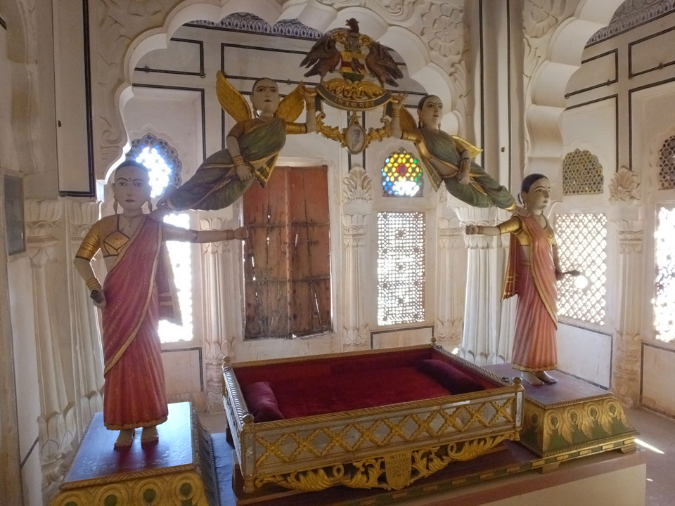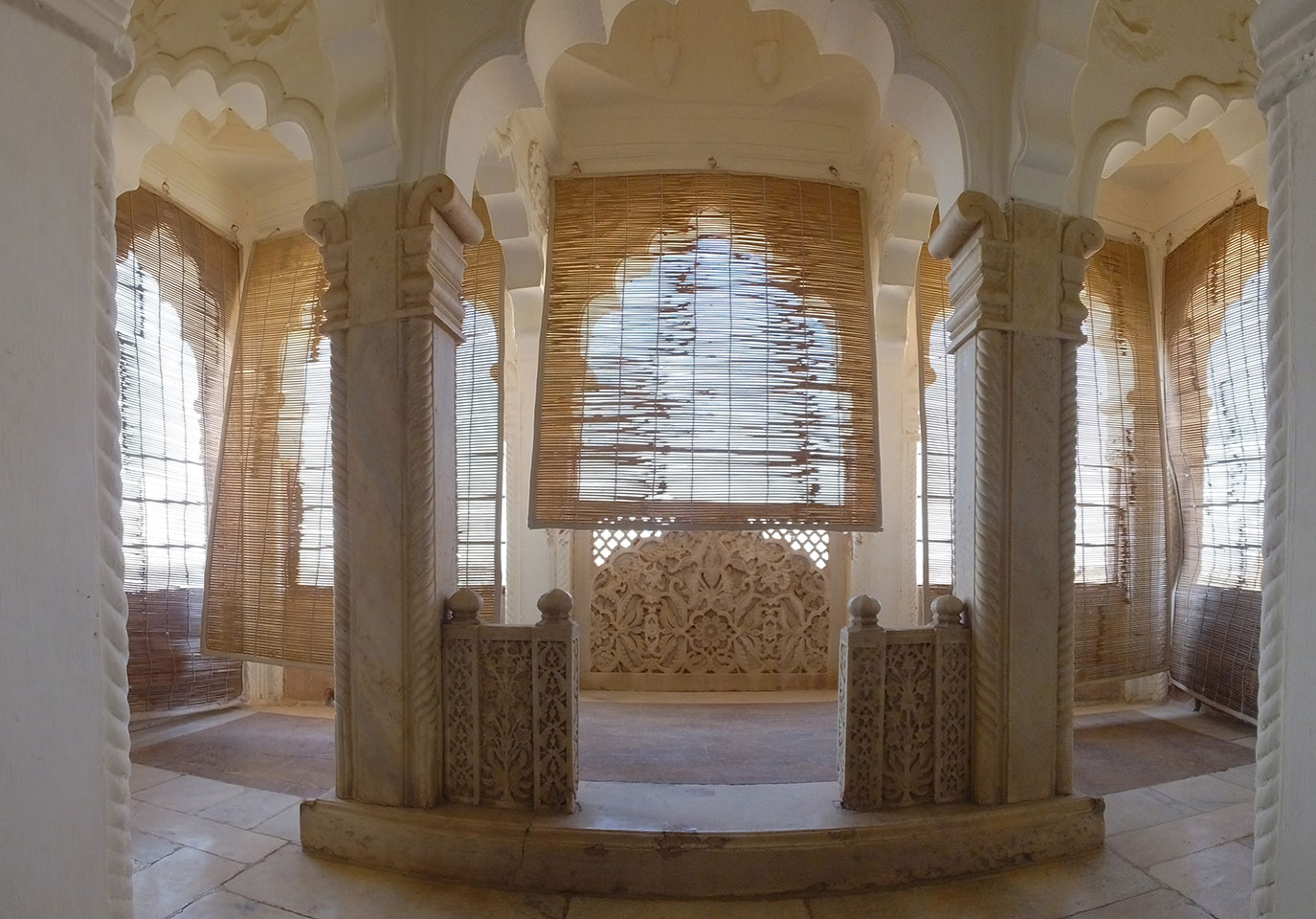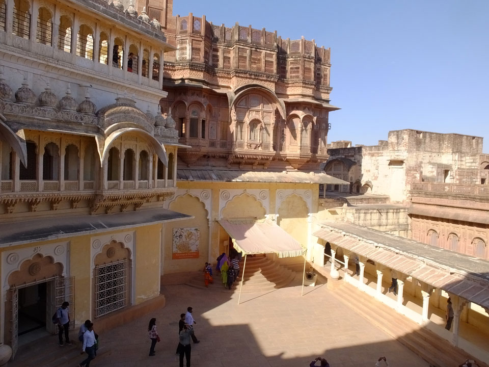 Im schnell Schritt schaute ich mir die ganzen Sachen an. Der Audioguide war etwas defekt, brauchte eine bestimmte Position des Klinkensteckers für Audio. Die Festung mit den vielen Sälen und detailliert geschliffenen Fassaden war schön anzuschauen. Die Herrscher wussten, gut zu leben. Luxus, wie man ihn heute kennt, war ohne Elektrizität noch nicht verfügbar. Da musste ein Diener halt die ganze Nacht fächeln, während man heute den Ventilator anschaltet, wenn man sich keine Klimaanlage leisten kann.