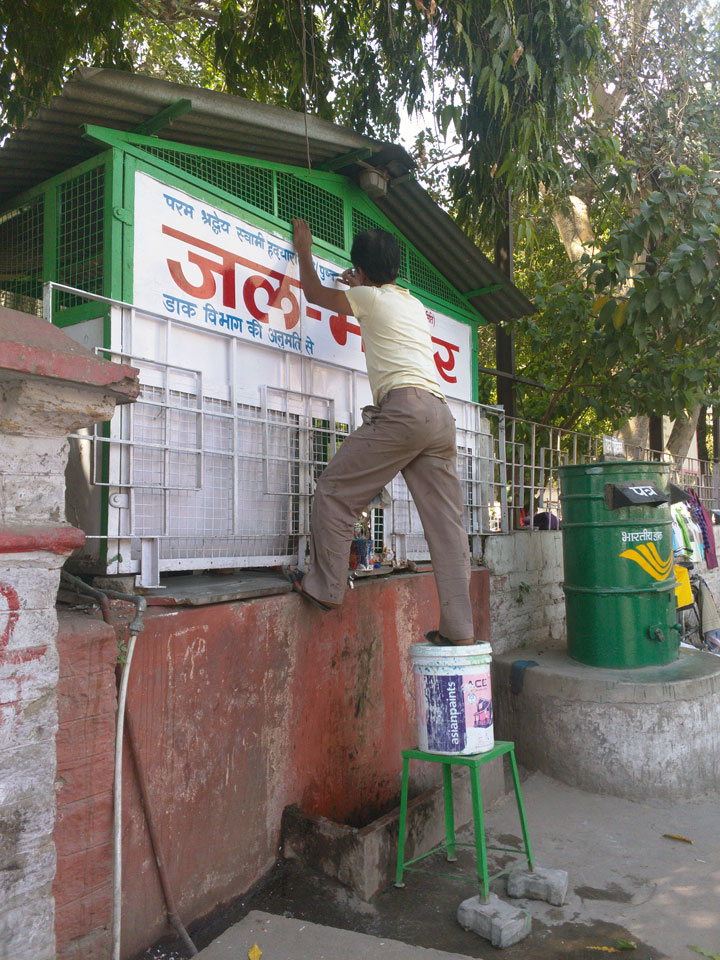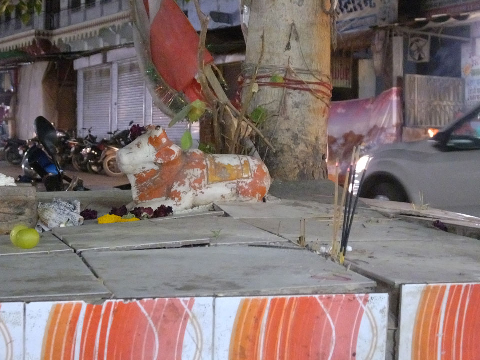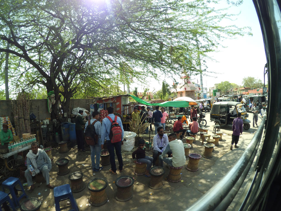 Ich kam durch’s Gewusel, ging über die Brücke und nach rechts zum „Gandhi Bhawan“. Die Beschreibung zum Bus hatte ich einer Tripadvisor Post entnommen. Da war nur keine Haltestelle, nur ein Tee-Stand. Ich fragte, ob der Bus hier vorbei käme – jam nach ’ner Stunde.