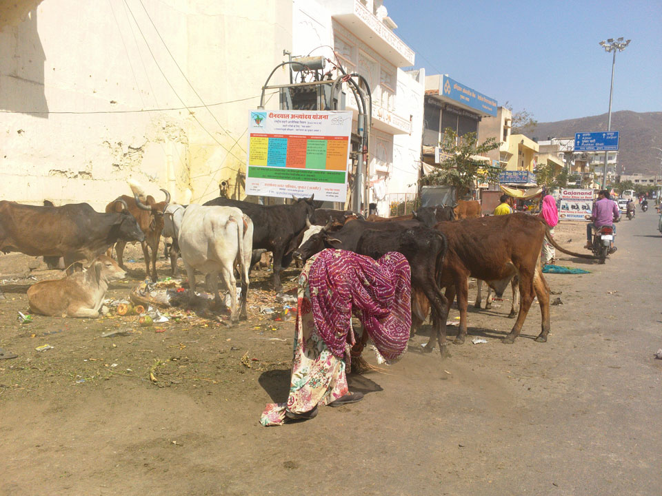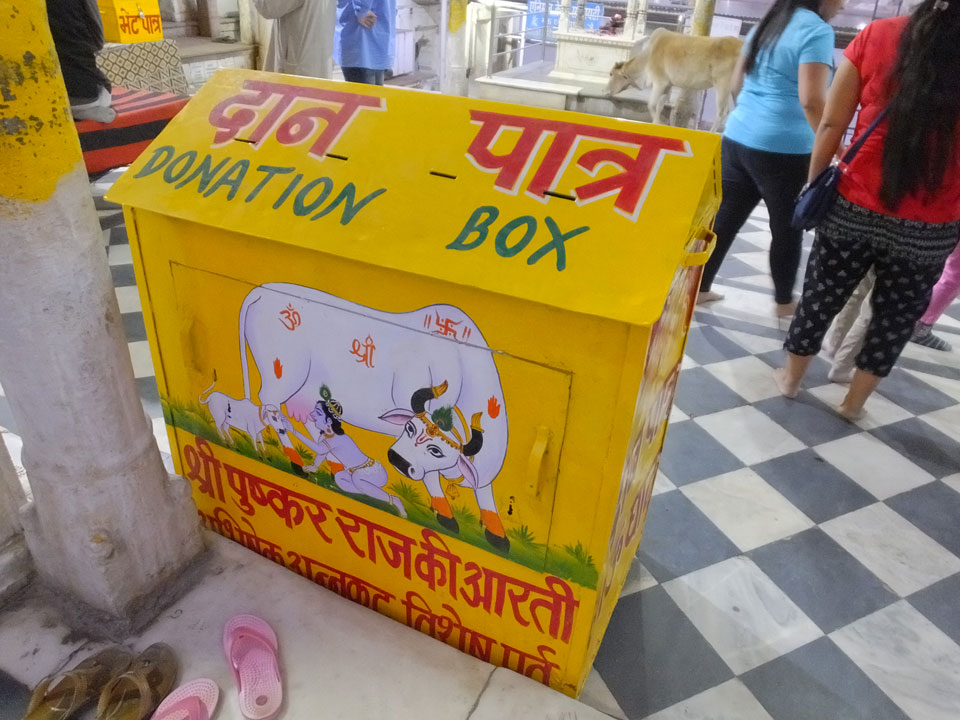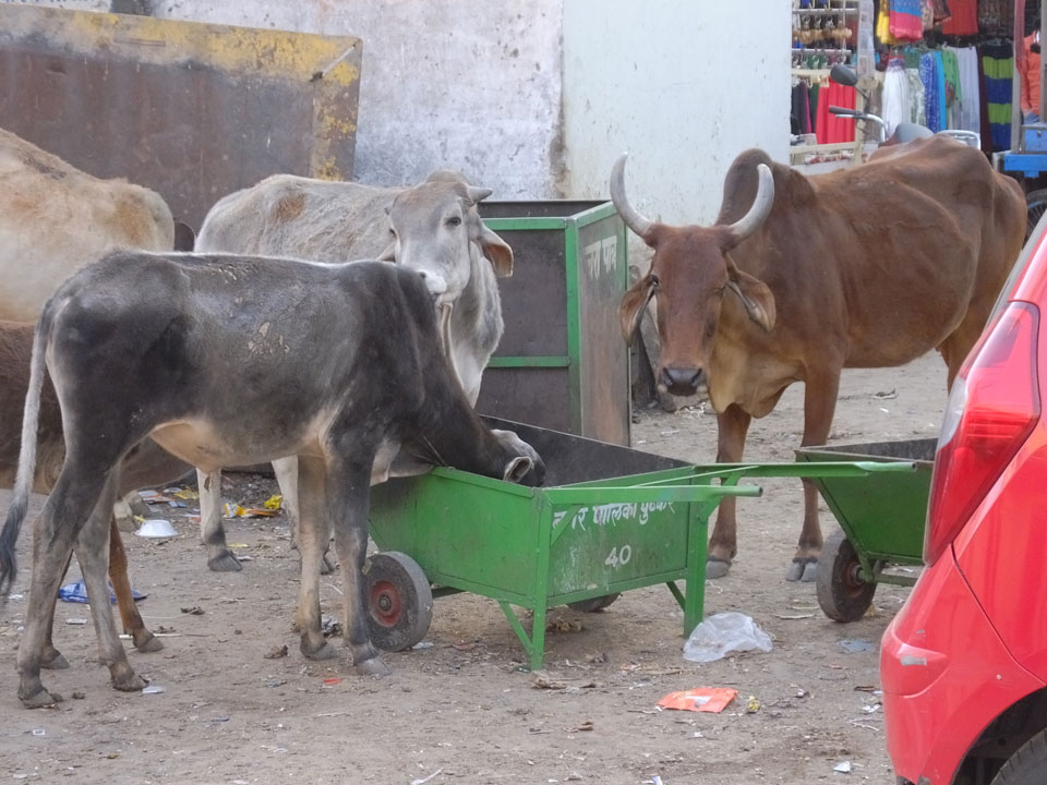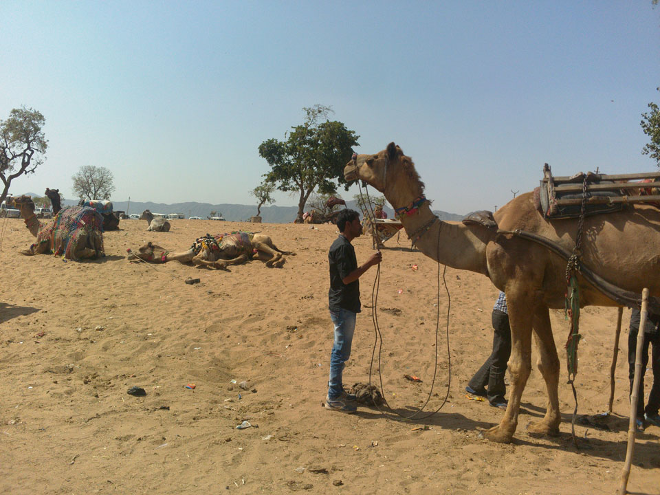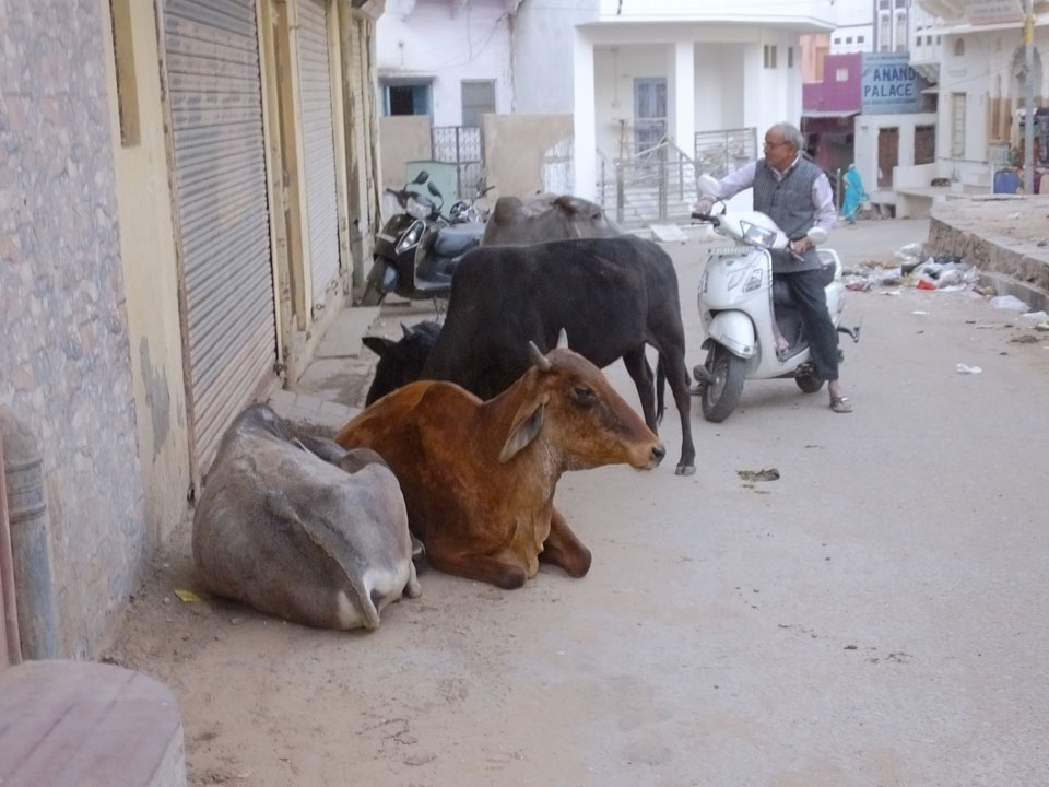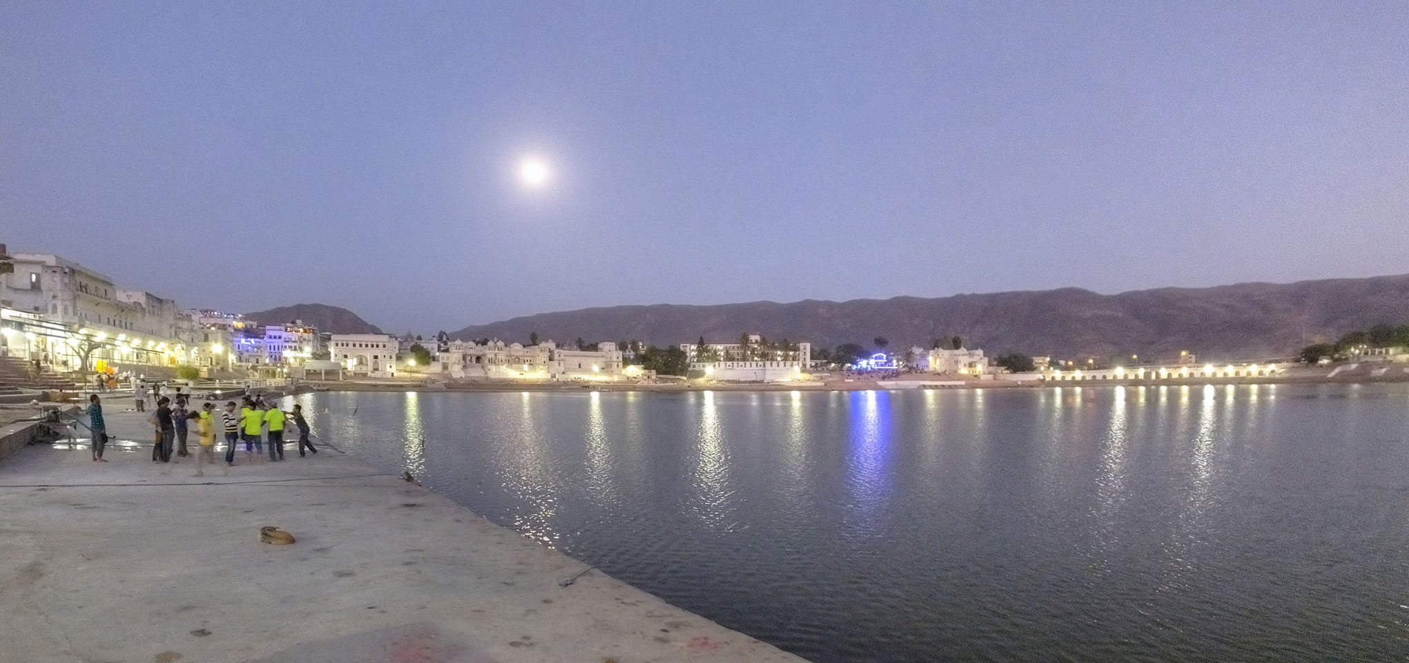 OK, spät mal eine Runde durch Pushkar. Eine heilige Stadt für Hindus mit einem Brahma Tempel. Hier sind die meisten Kühe, die ich bisher frei herumlaufen sah. Kamel-Touren gibt’s auch um die Ecke.
