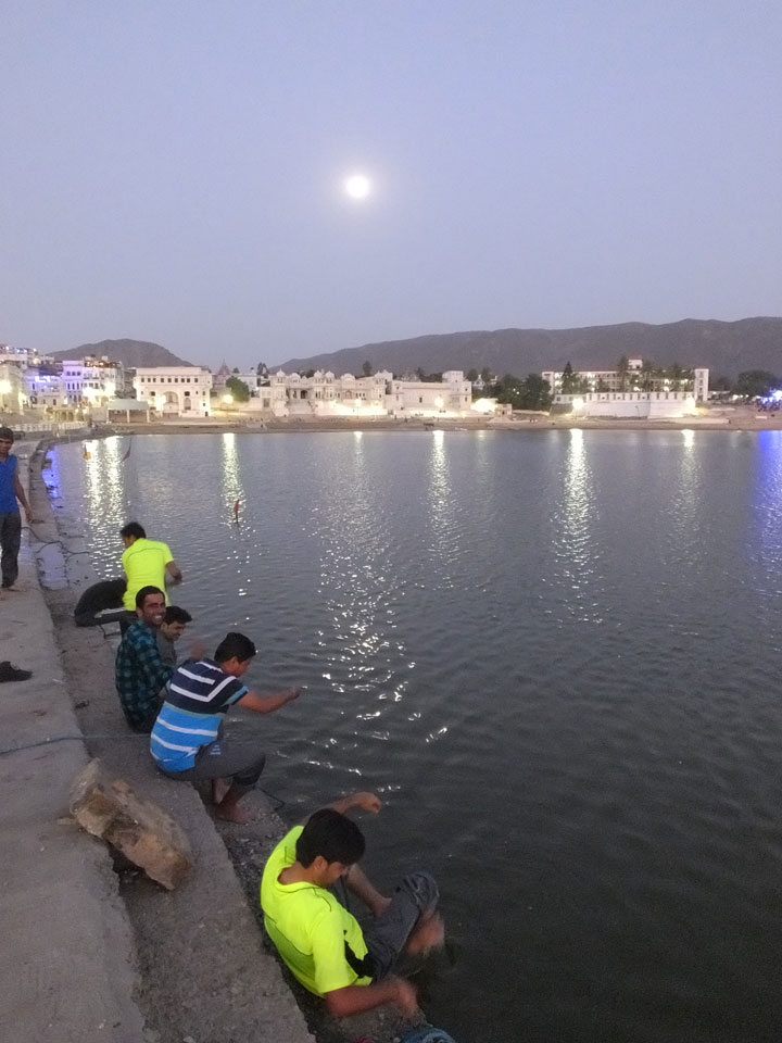 Insgesamt fehlt etwas das Flair hier durch die Ansammlung an Touristen-Läden. Am See war’s ganz OK, wenn man mal den aufdringlichen Führer abgewimmelt hatte. Hier soll also dann auch das Holi stattfinden. Na mal sehen.