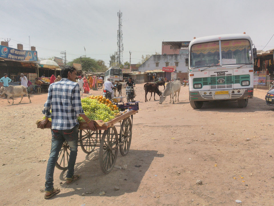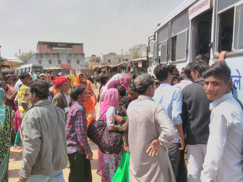 Ein Tuktuk brachte mich dieses Mal für 70 zum Bsustopp. Dort wartete ich eine Weile, bis dann endlich um 13:15 der Bus voll war und die Fahrt los ging. Ca. 45′ Fahrt bis nach Ajamer. Ein geteiltes Tuktuk für 10 INR pro Nase dann zum Bahnhof.