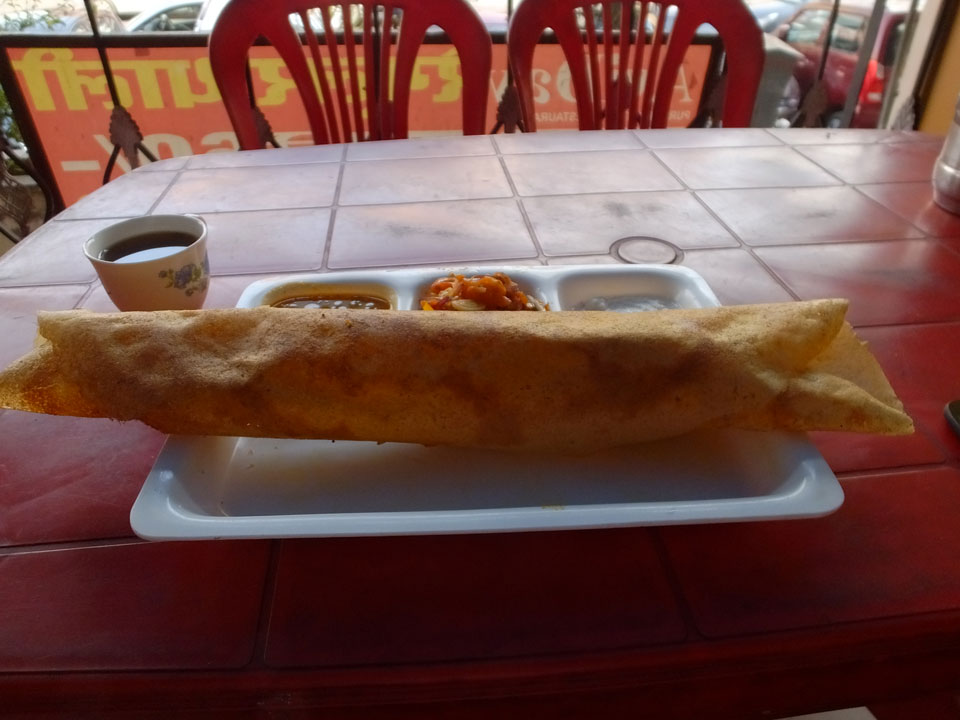 Die Mysore Masala Dosa im Restaurant am Plaza war etwas ungefüllt, kostete aber trotzdem 120. Es gab dann ein Donnerwetter vom Chef zum Kellner doch der Preis wurde beibehalten. Verstehe halt kein Hindi.