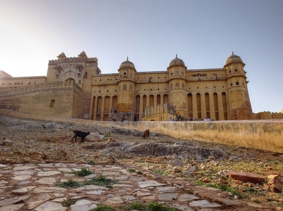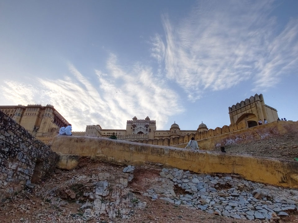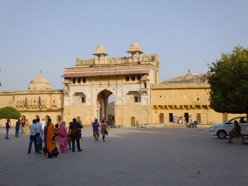 Inzwischen war es 16:30 und ich wollte doch zum Amber Fort. Die 10km und Bus Nr.5 waren weit weg. Ich bestellte ’nen Uber für „heftige“ 370 INR, der mich dann gut hin brachte. Am Ajmer Gate gibt es wohl Bus #5 für 10 dahin.