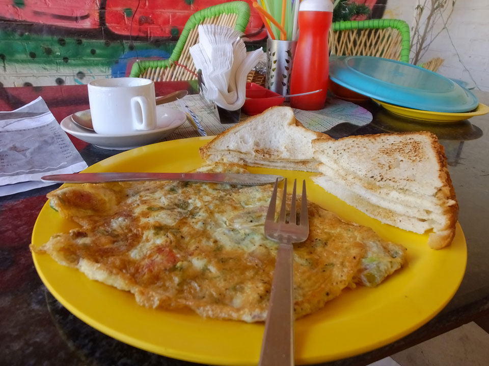 Morgens war Geduld angesagt. Eine große Gruppe Inder hatte Mittag bestellt, und bestellte immer weiter. Ich wartete eine Dreitviertelstunde auf einen Kaffee und dann noch weiter auf ein Omelette und Toast. Am Morgen und auf leeren Magen hat Geduld seine Grenzen.